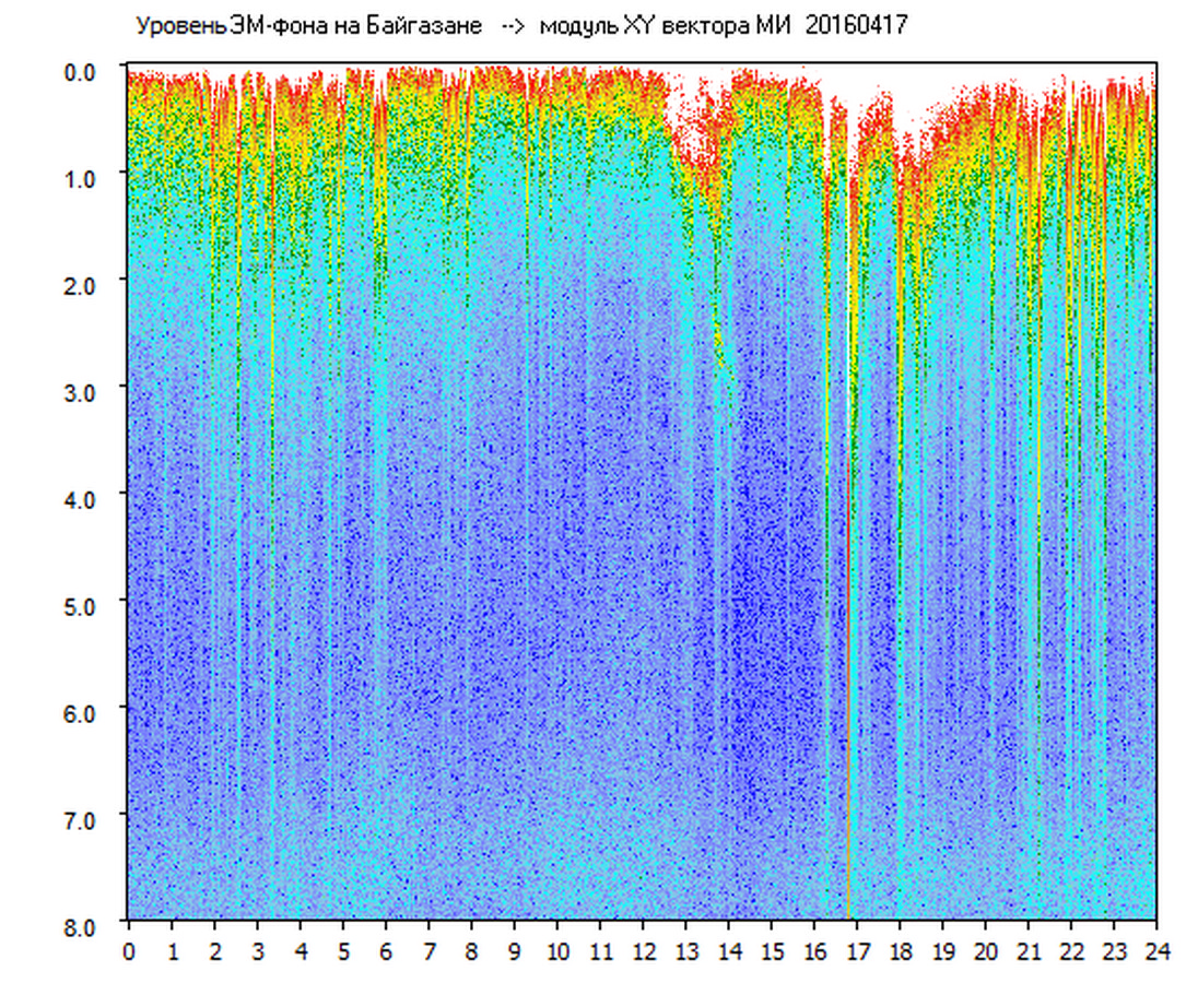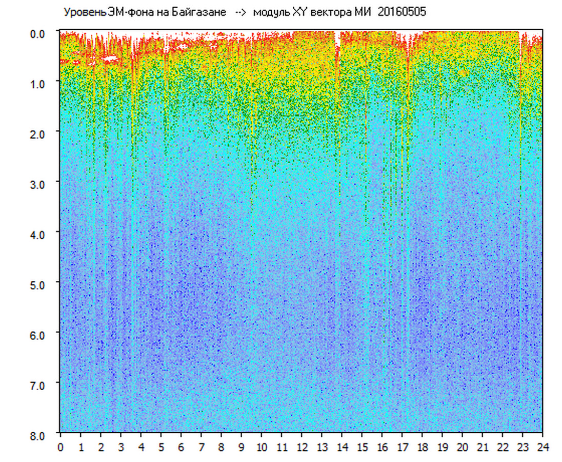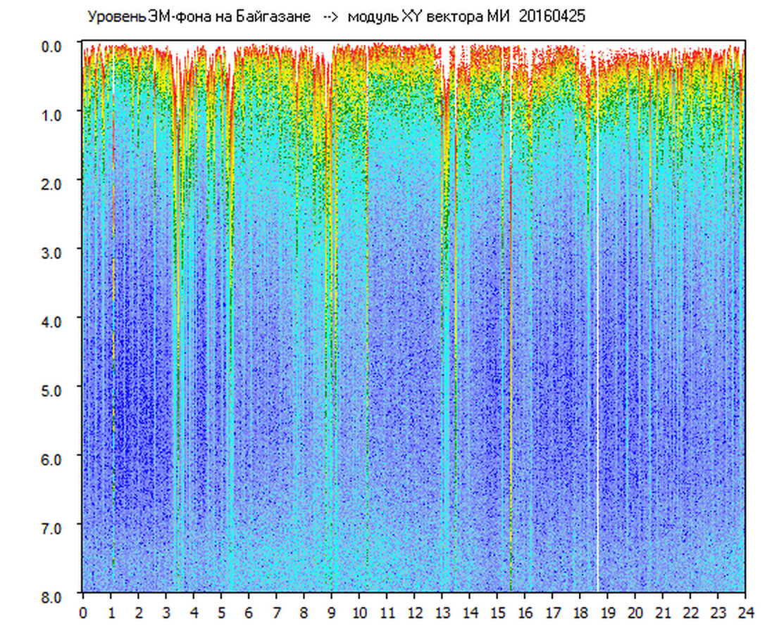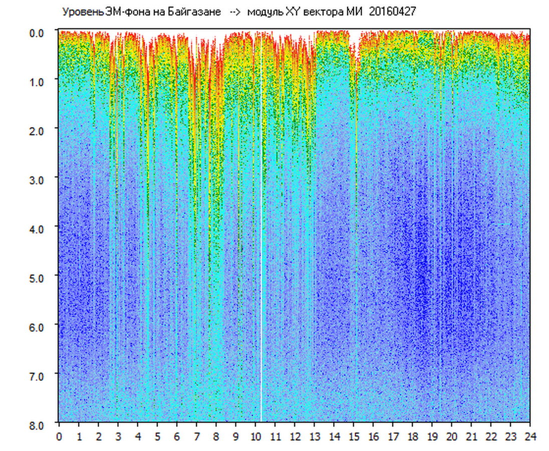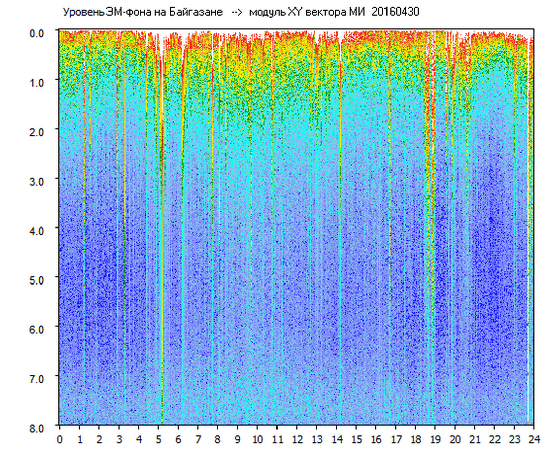 Динамические спектры электромагнитного фона в полосе частот 0 – 8 Гц (Альфвеновские резонансы)