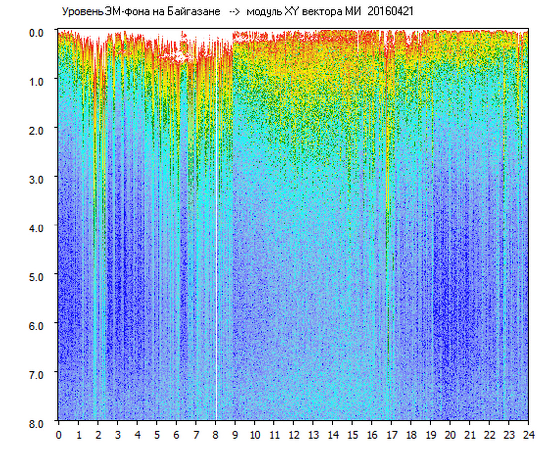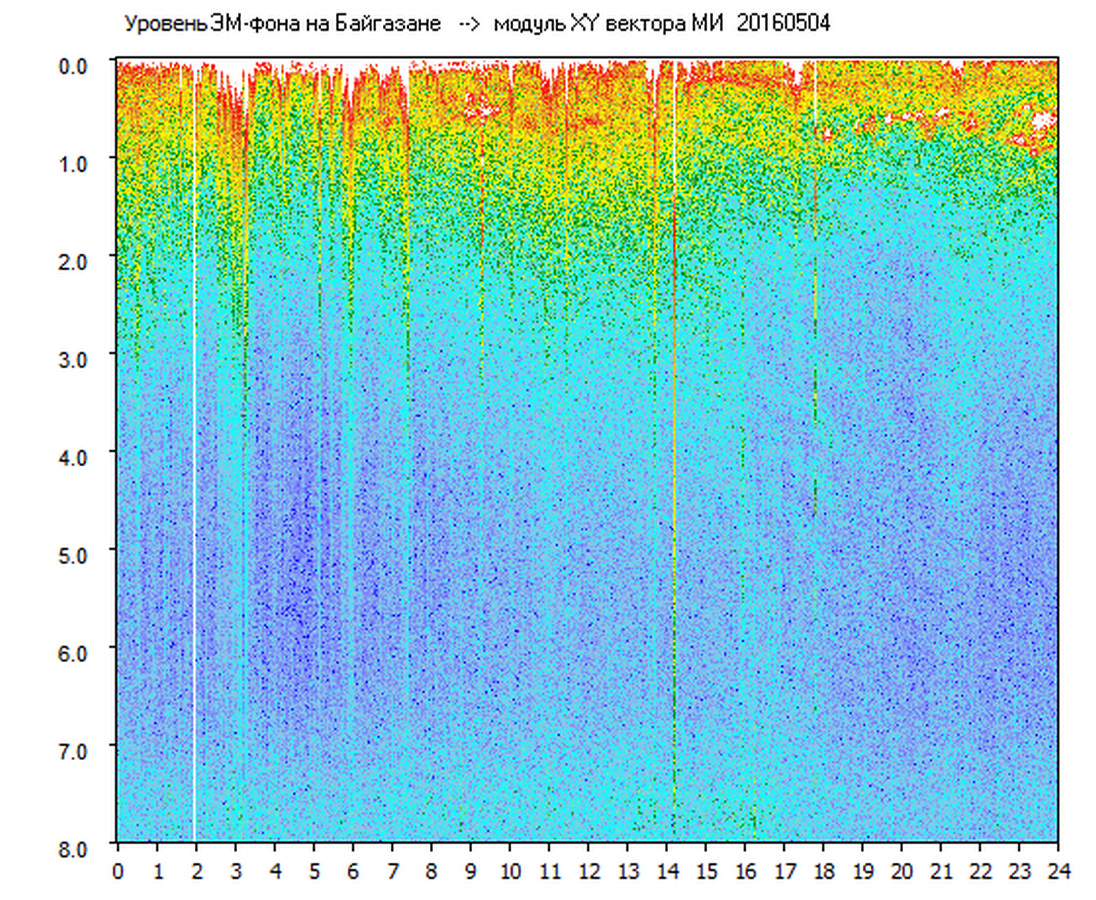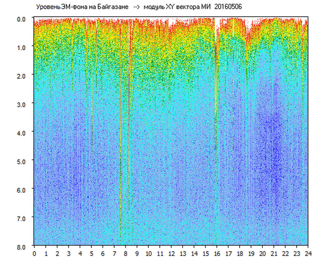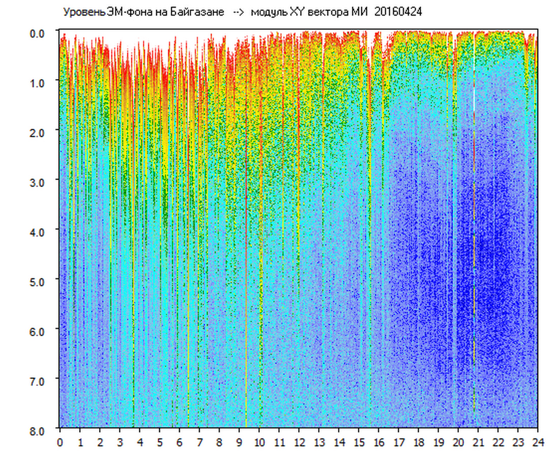 Динамические спектры электромагнитного фона в полосе частот 0 – 8 Гц (Альфвеновские резонансы)