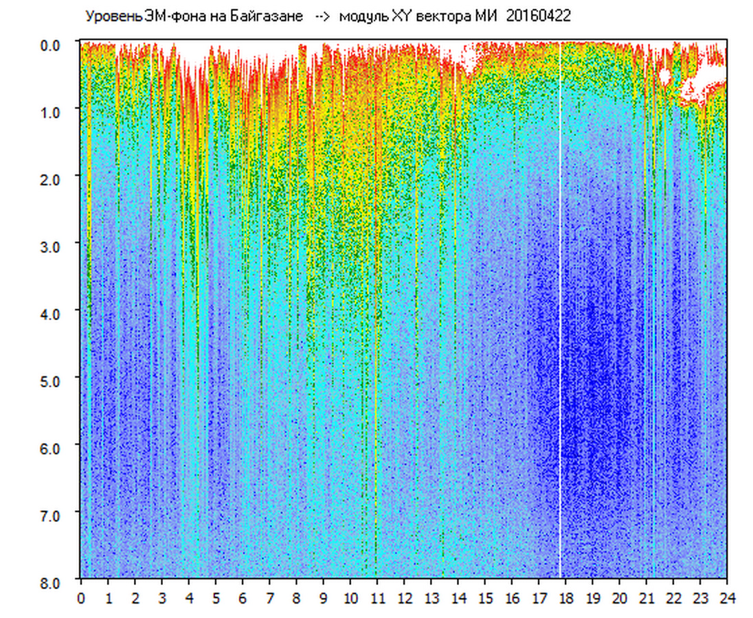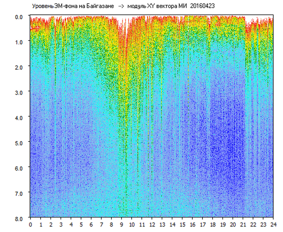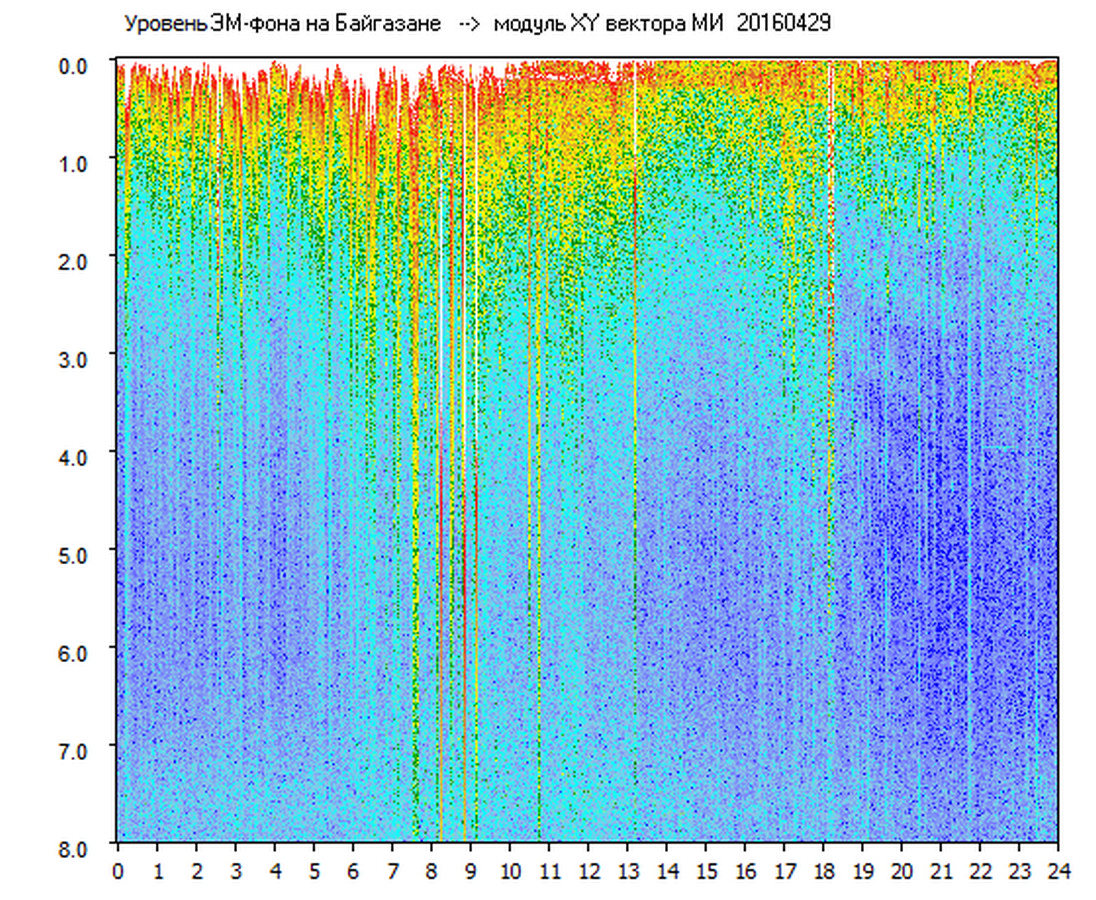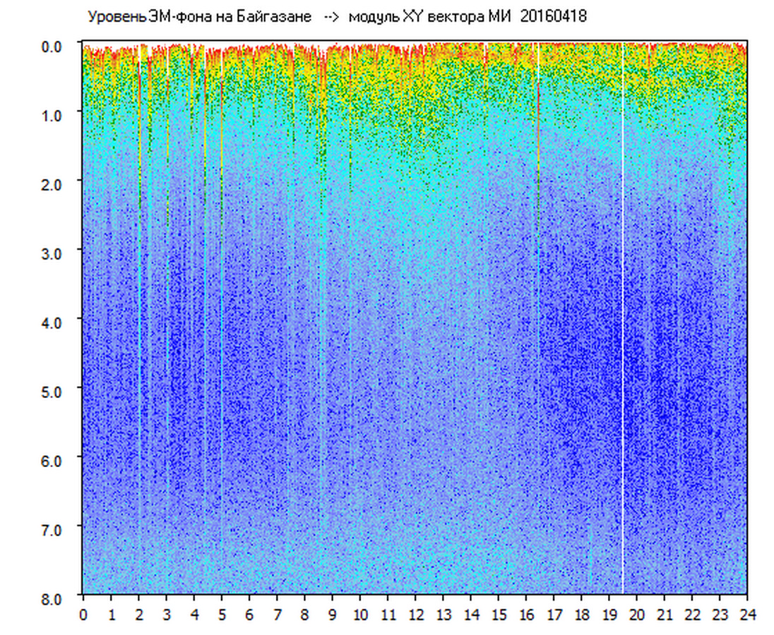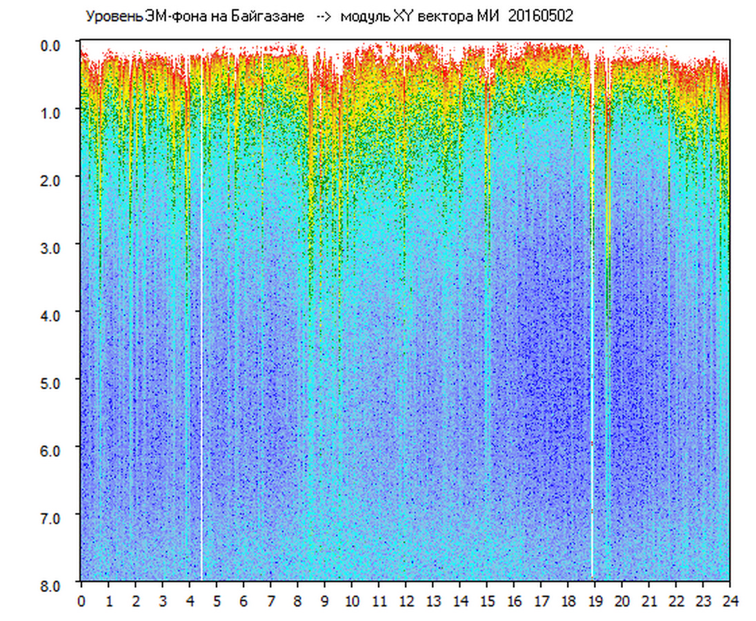 Динамические спектры электромагнитного фона в полосе частот 0 – 8 Гц (Альфвеновские резонансы)
