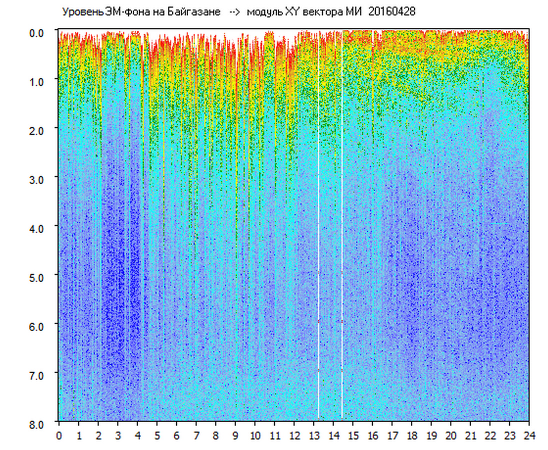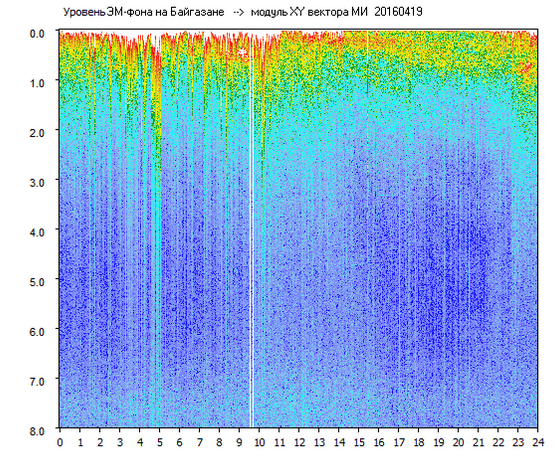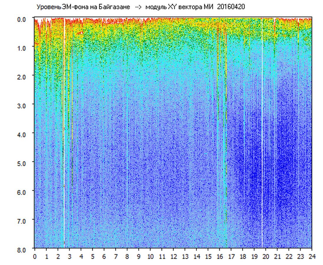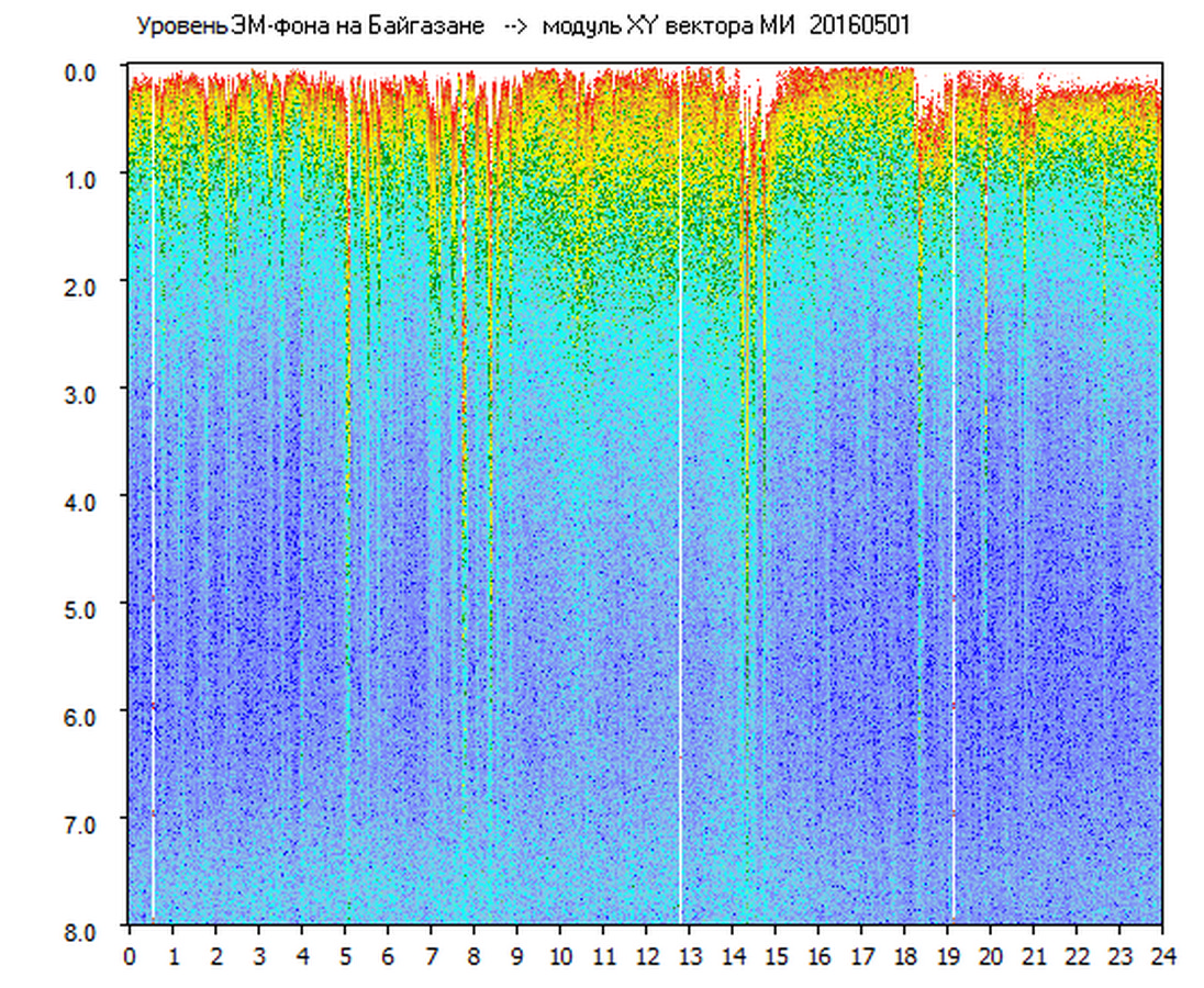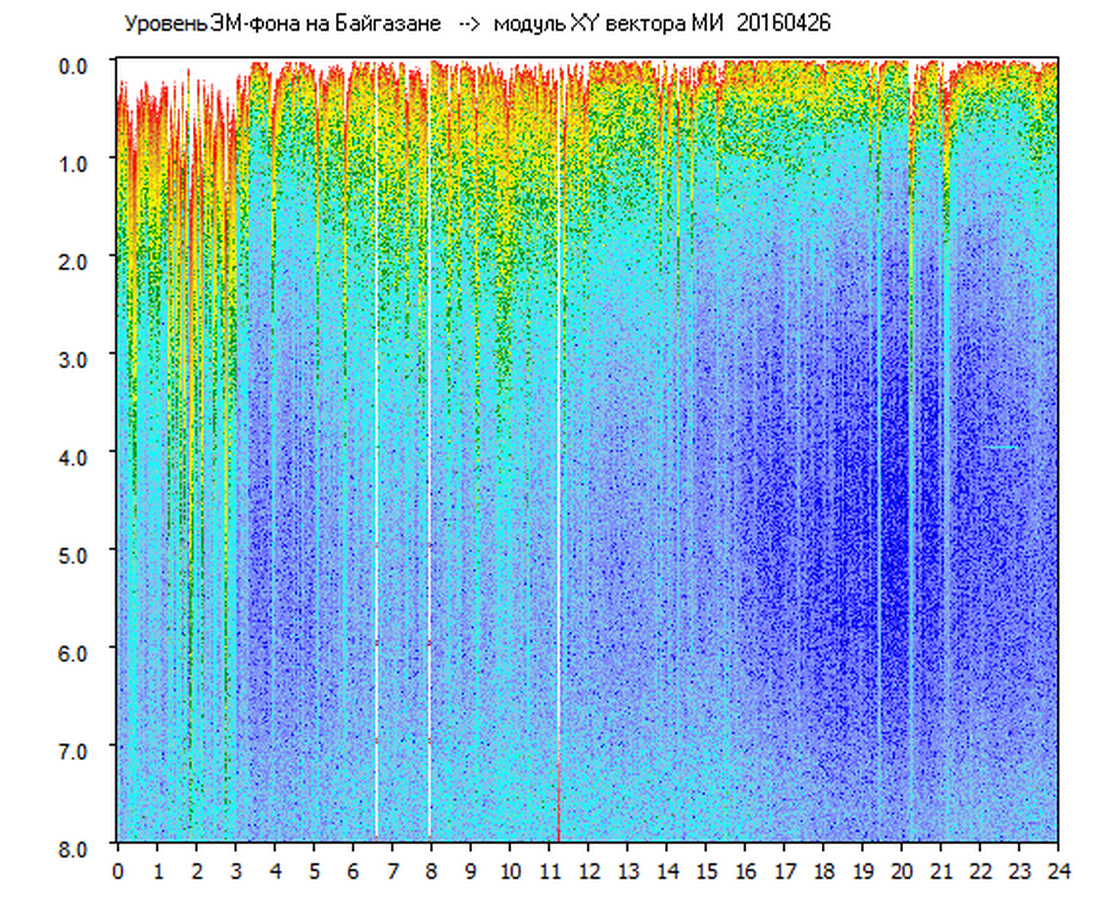 Динамические спектры электромагнитного фона в полосе частот 0 – 8 Гц (Альфвеновские резонансы)
