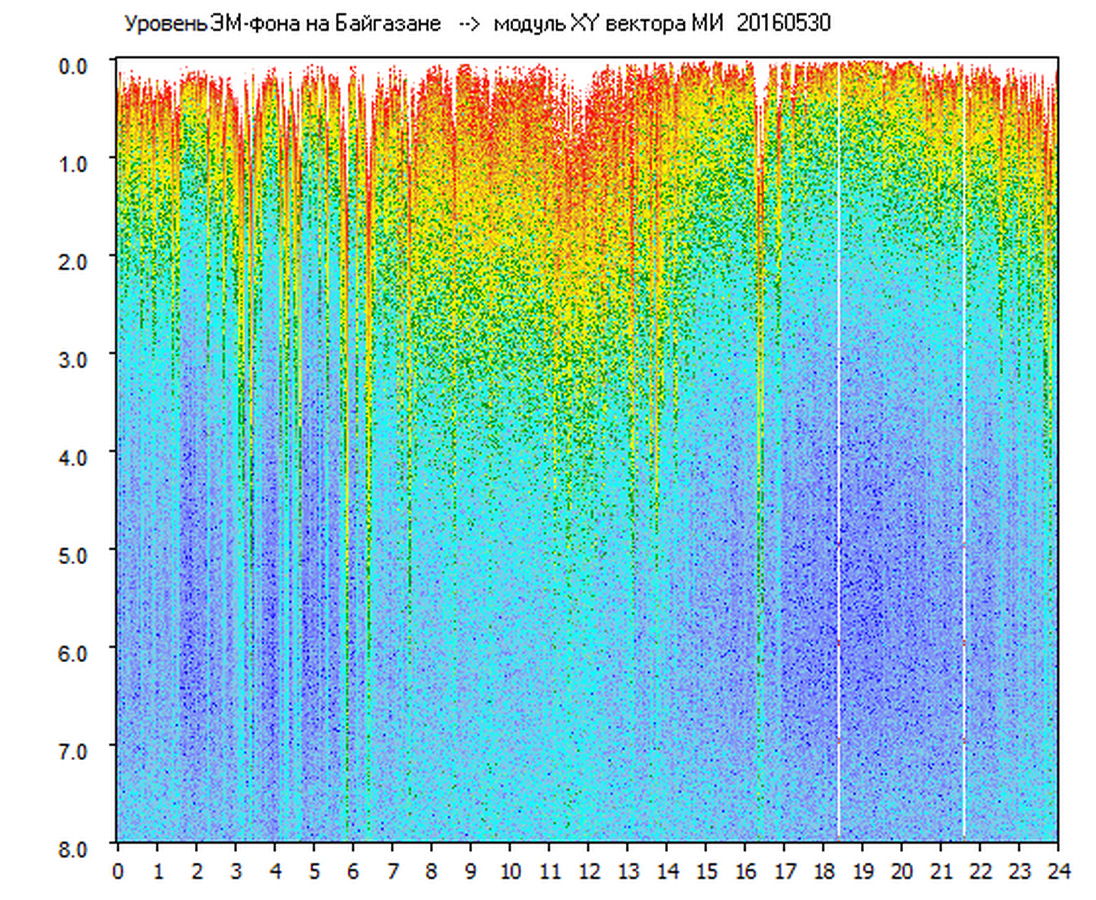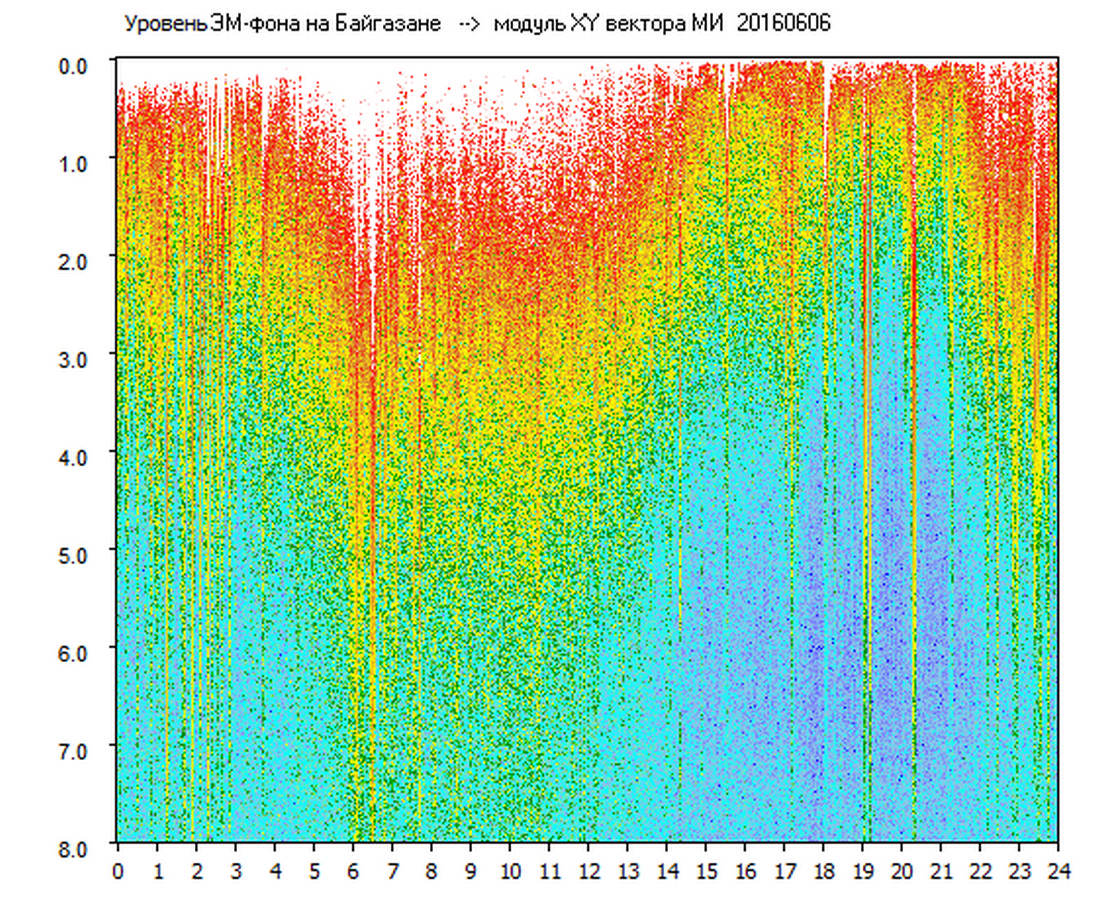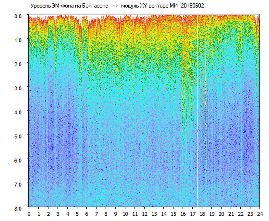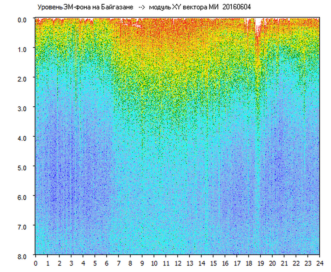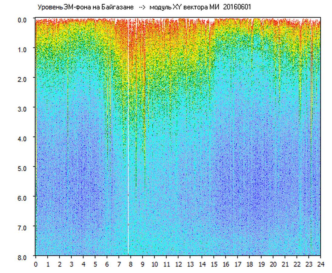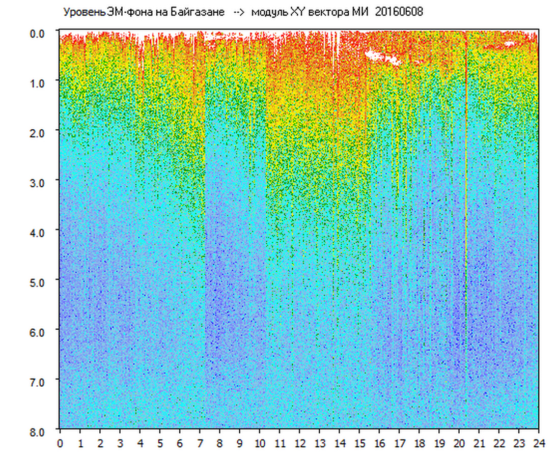 Динамические спектры электромагнитного фона в полосе частот 0 – 8 Гц (Альфвеновские резонансы)