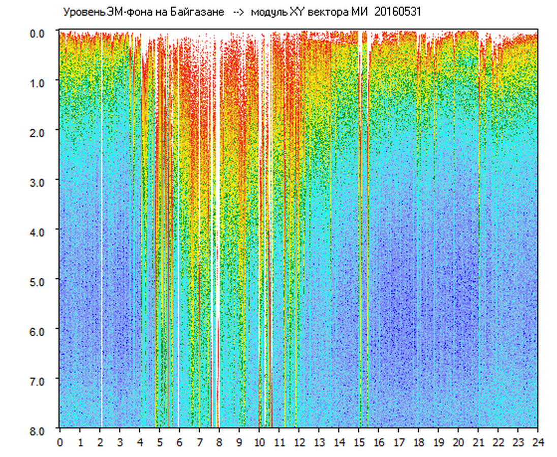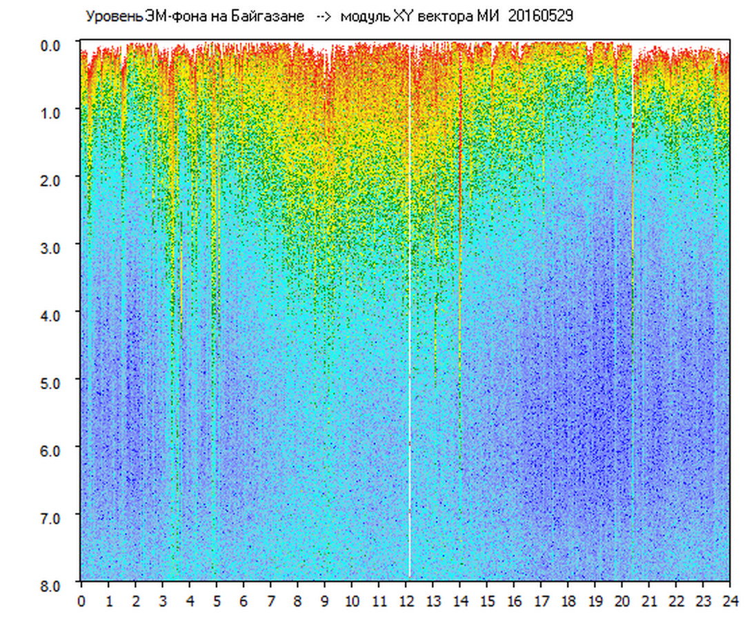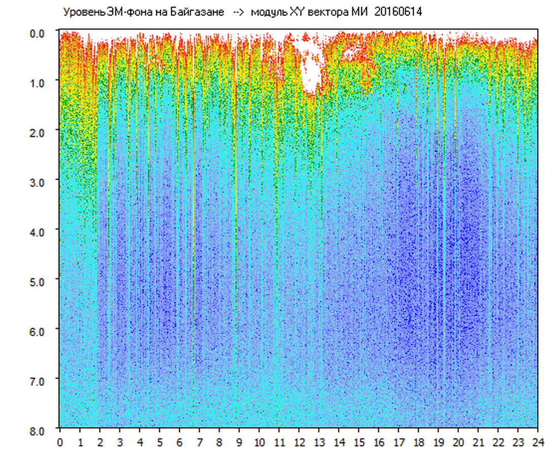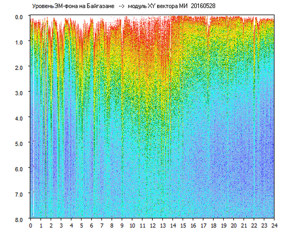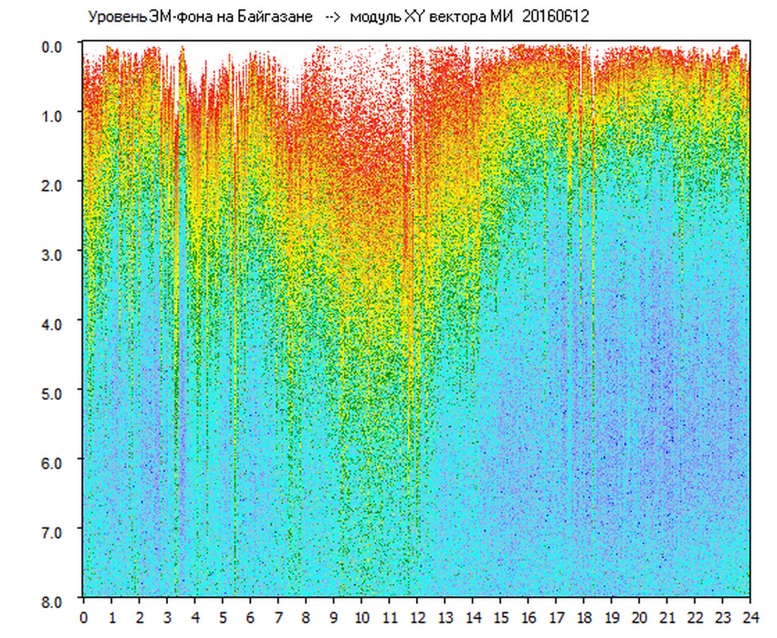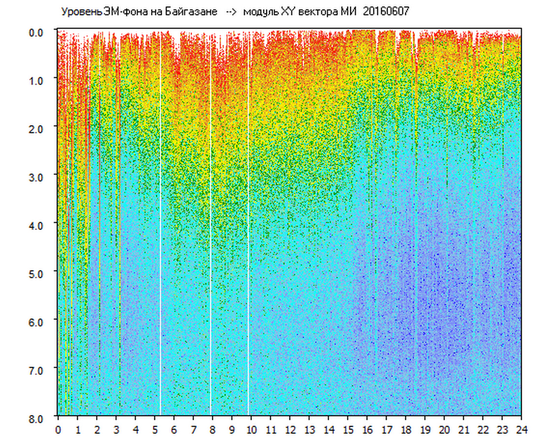 Динамические спектры электромагнитного фона в полосе частот 0 – 8 Гц (Альфвеновские резонансы)