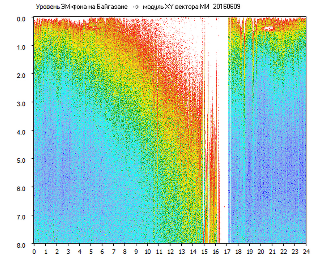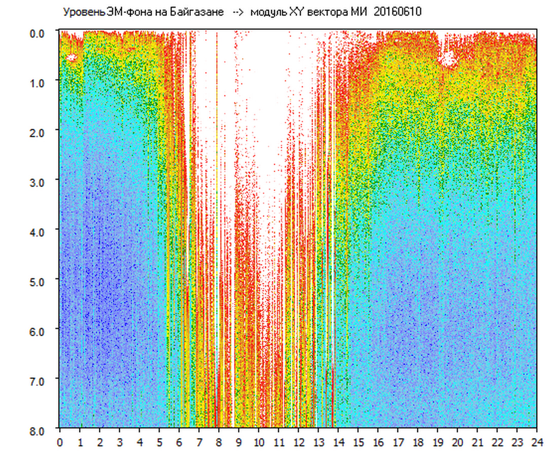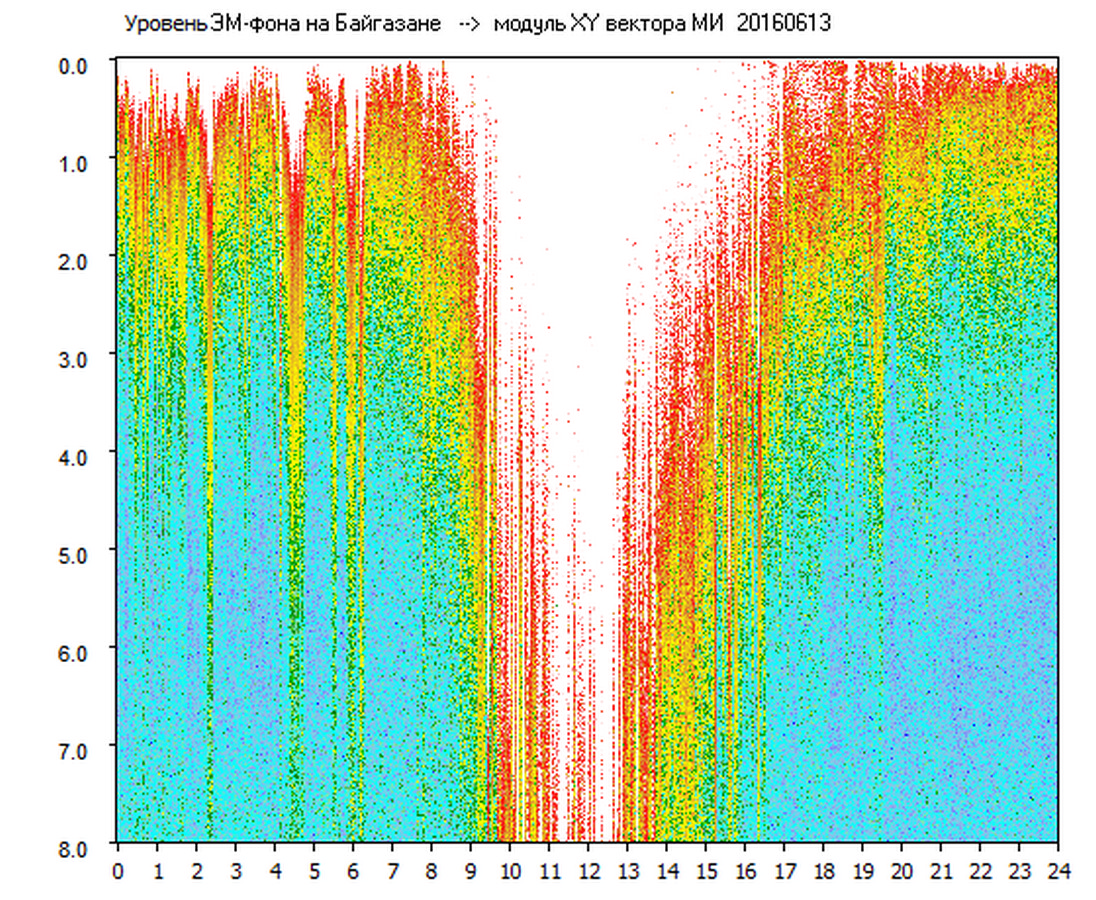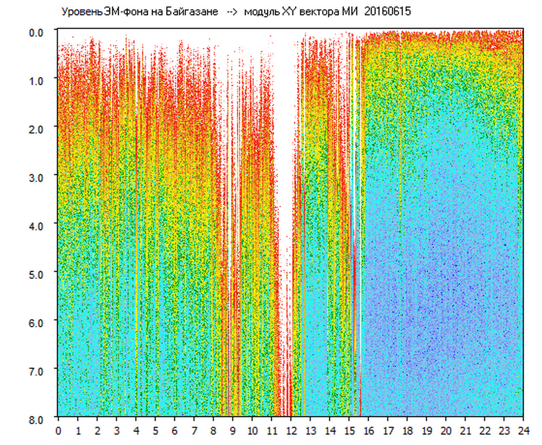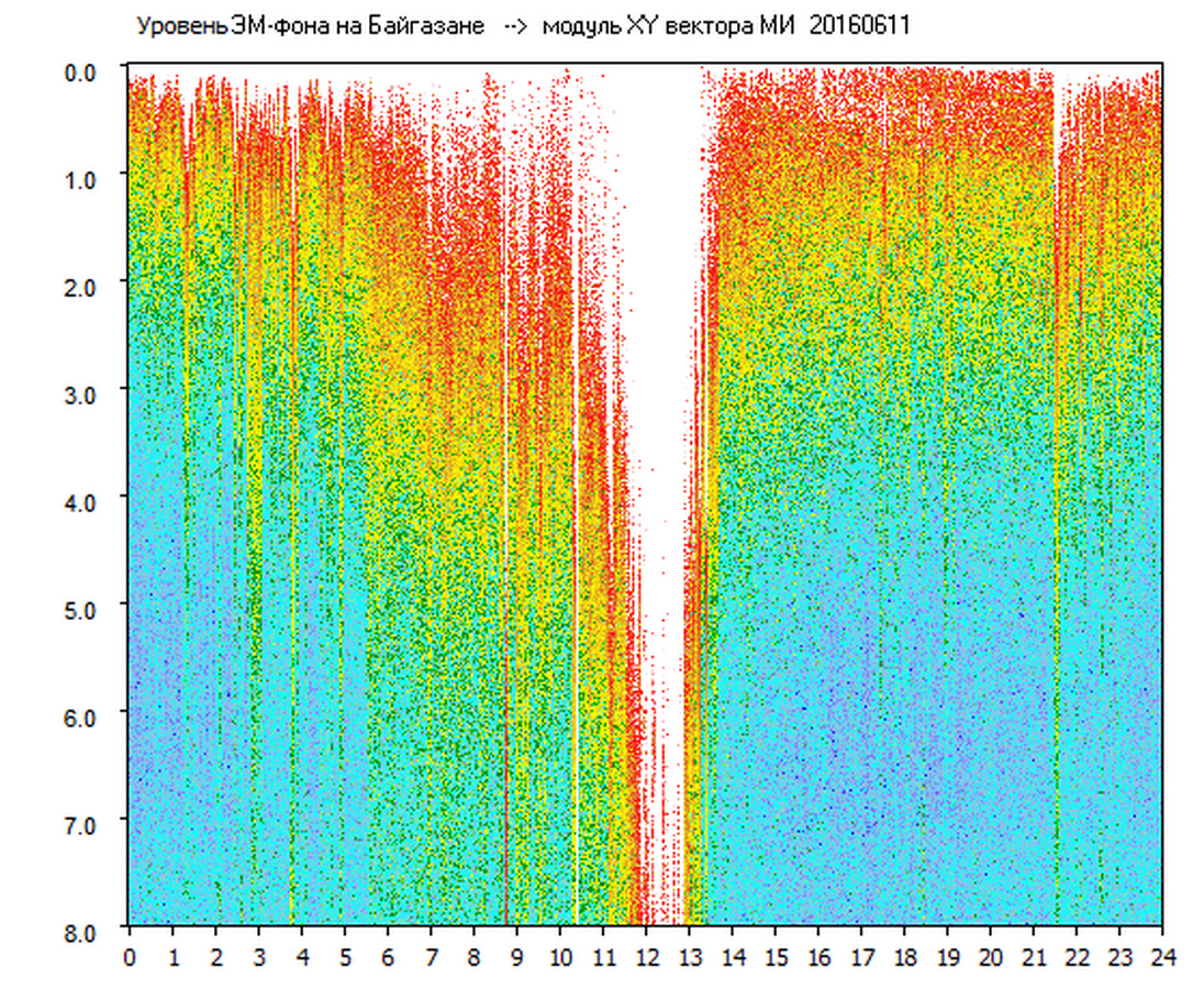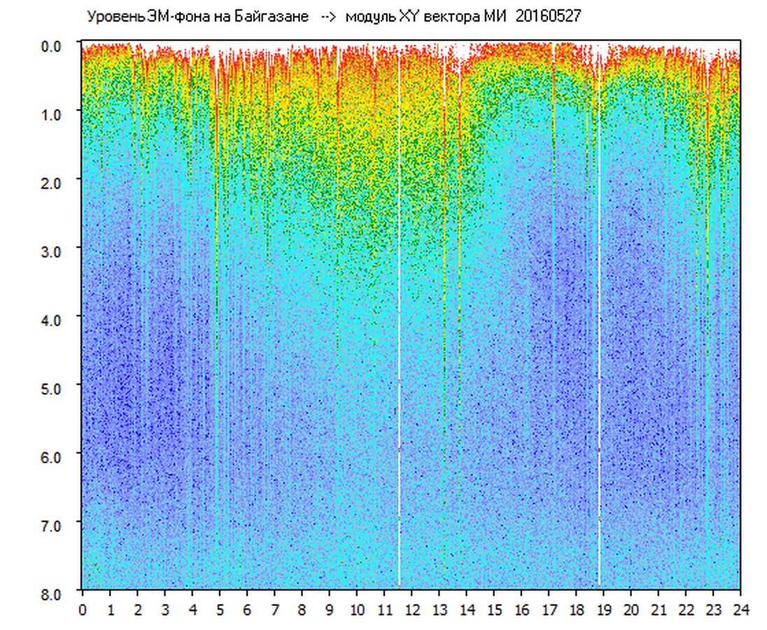 Динамические спектры электромагнитного фона в полосе частот 0 – 8 Гц (Альфвеновские резонансы)