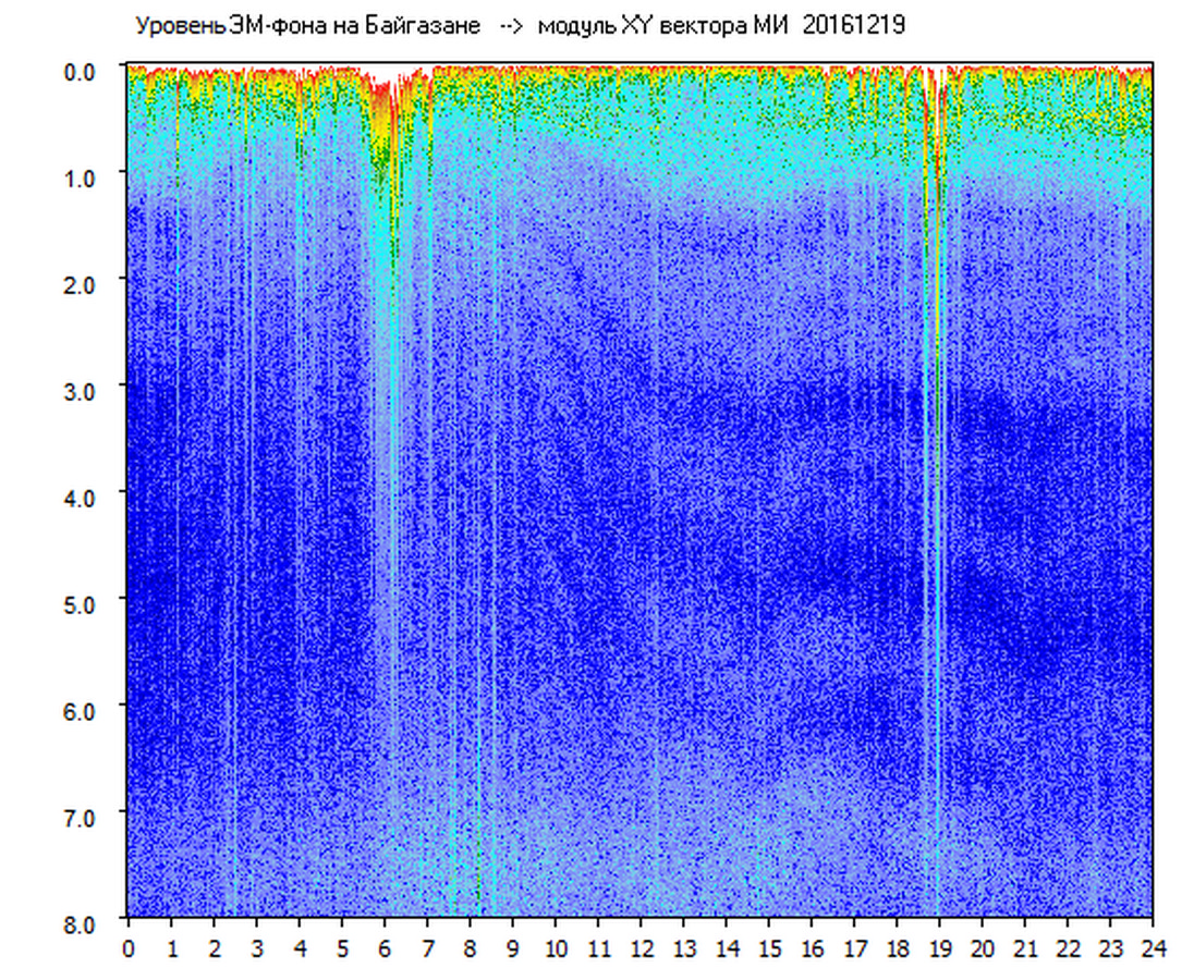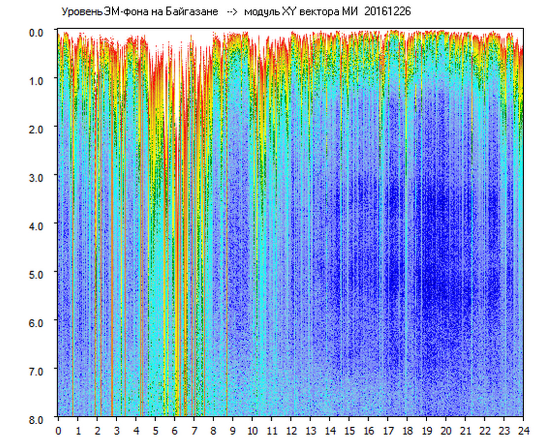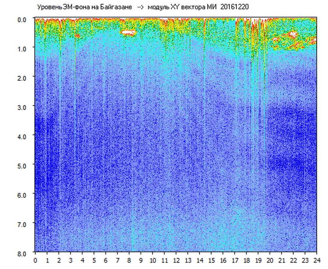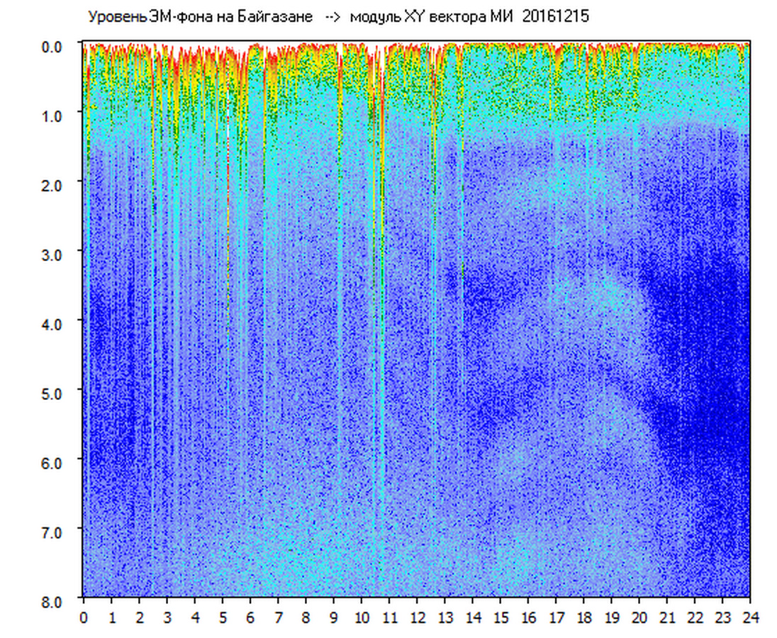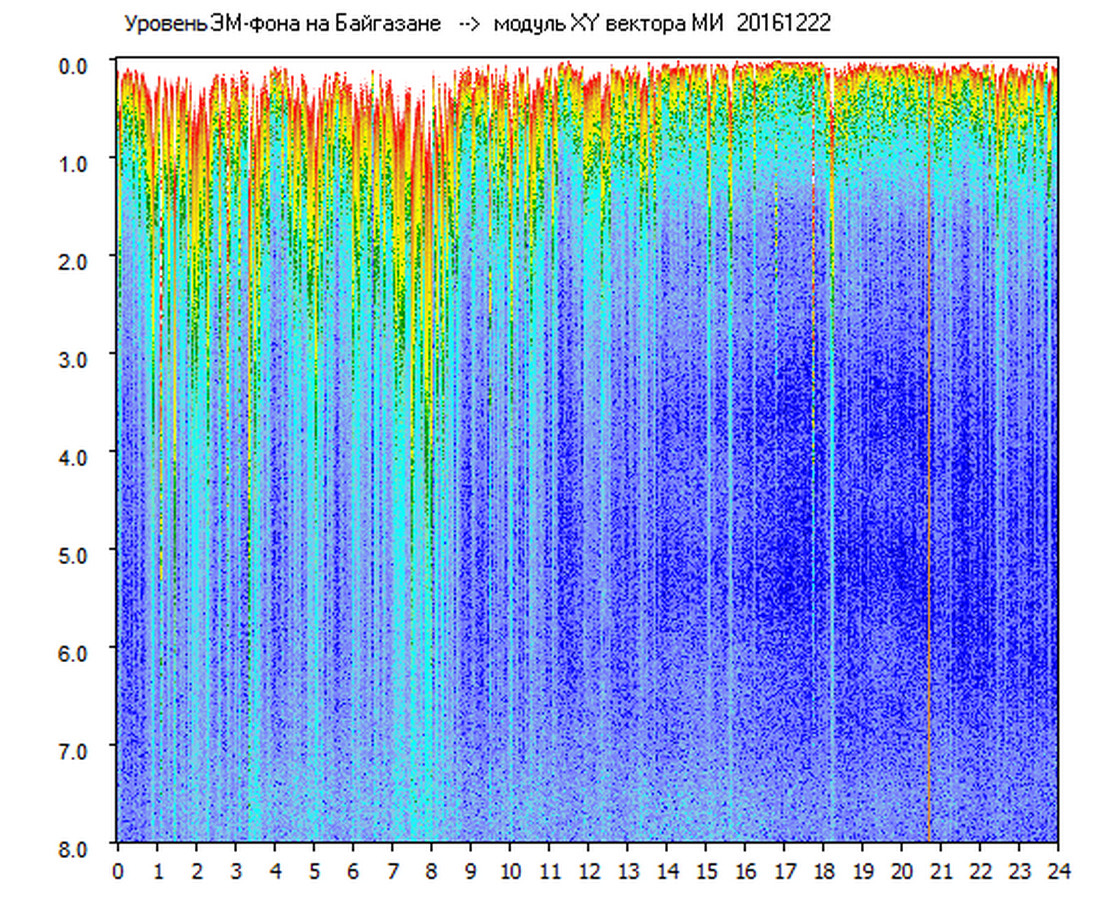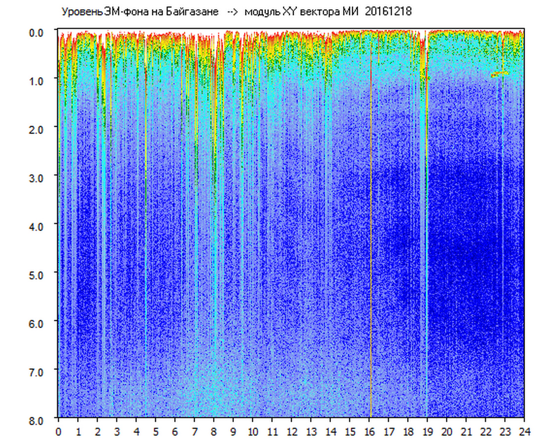 Динамические спектры электромагнитного фона в полосе частот 0 – 8 Гц (Альфвеновские резонансы)
