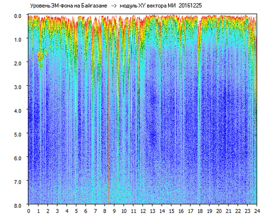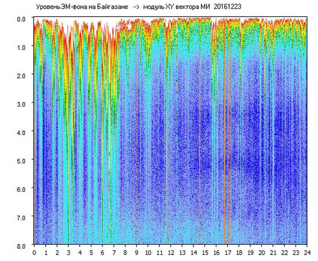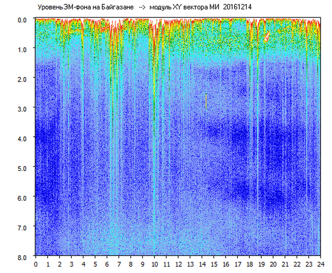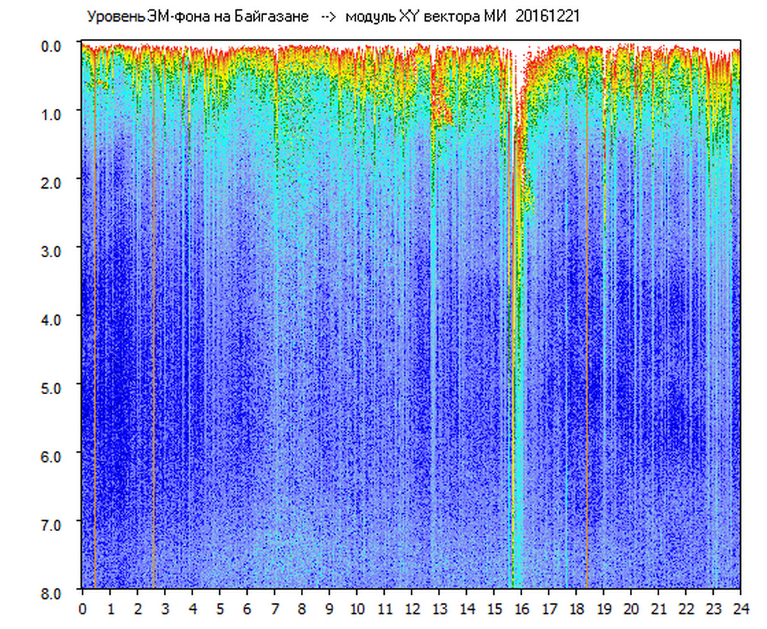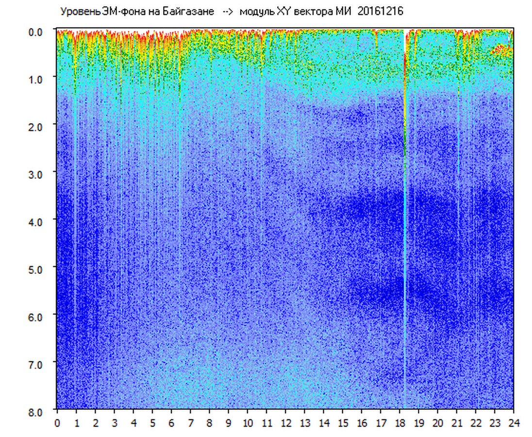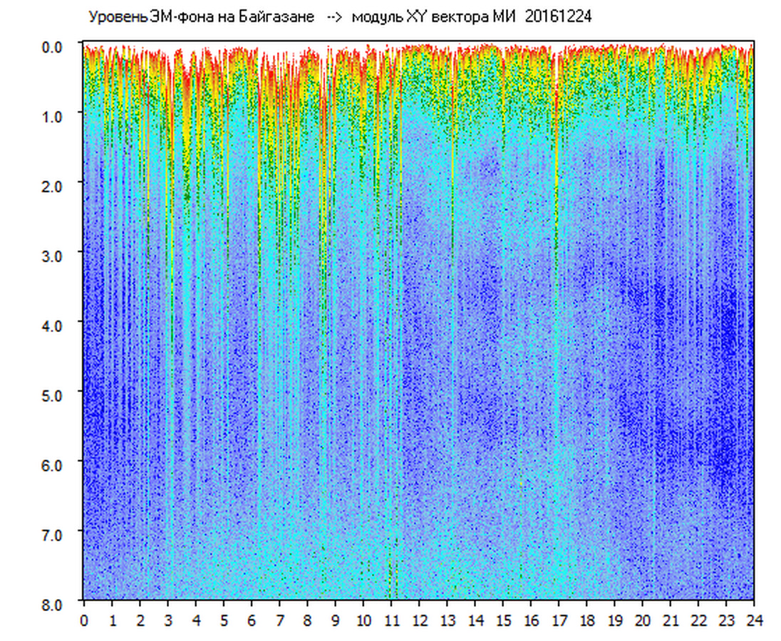 Динамические спектры электромагнитного фона в полосе частот 0 – 8 Гц (Альфвеновские резонансы)