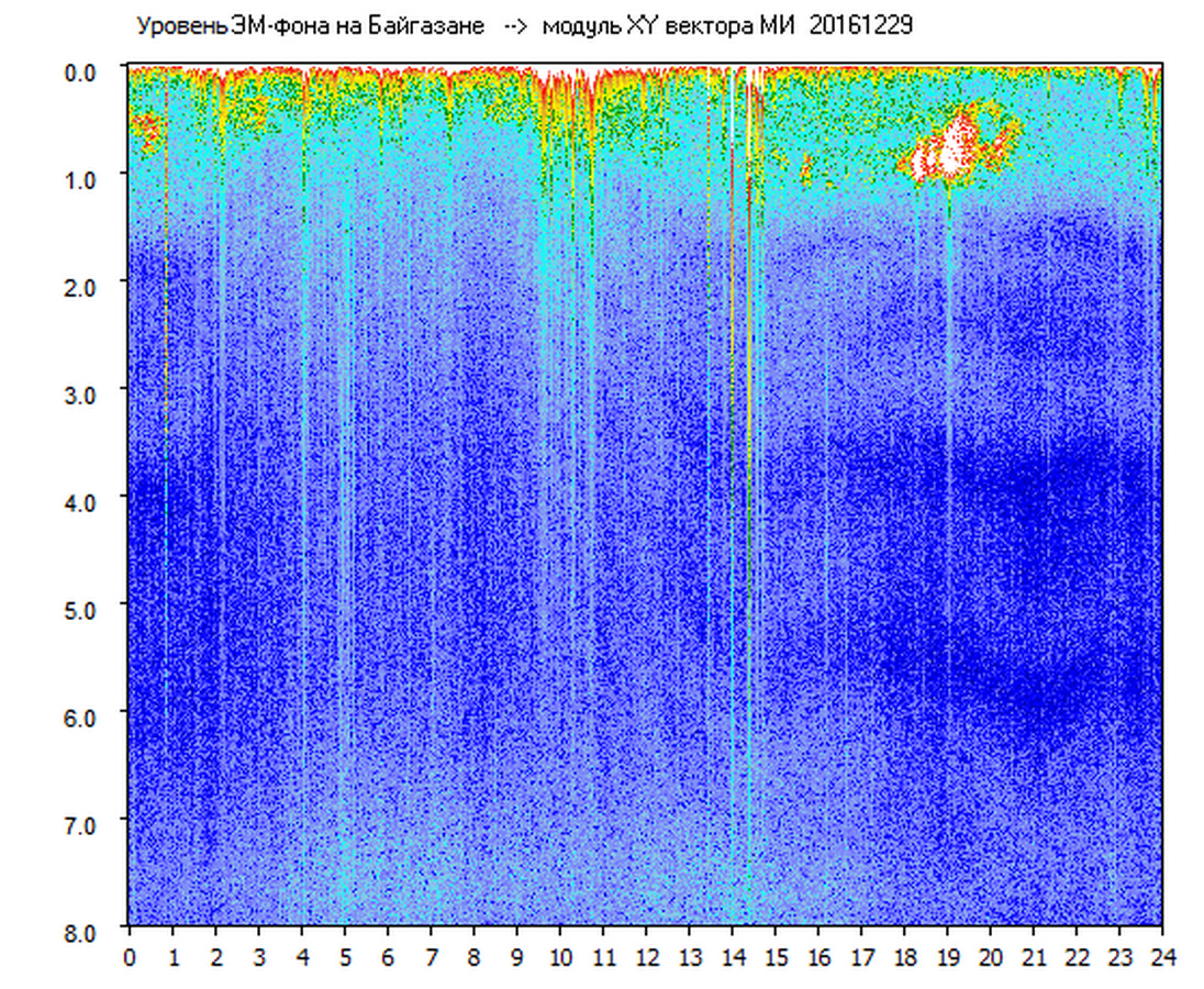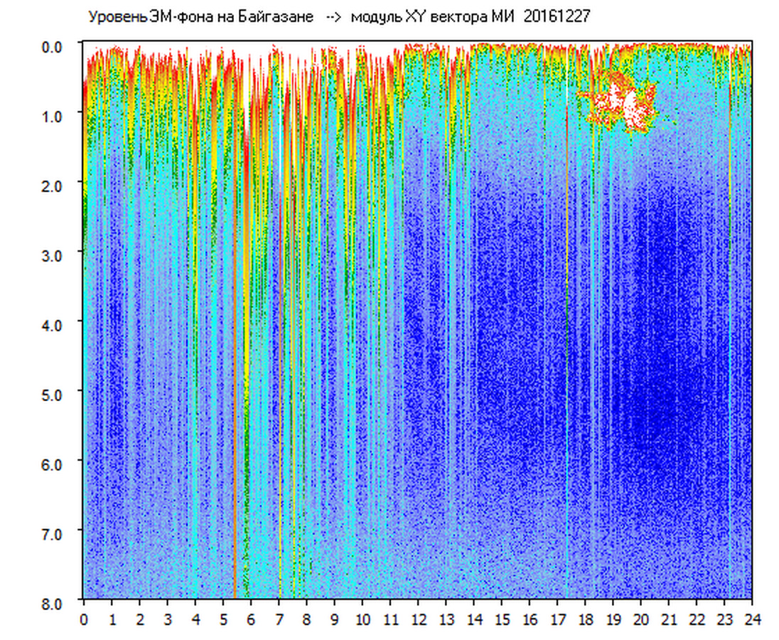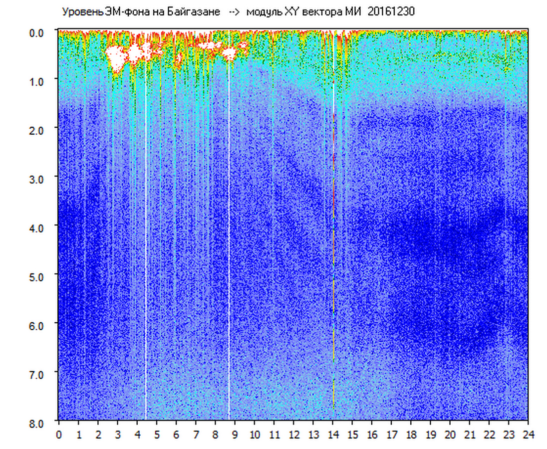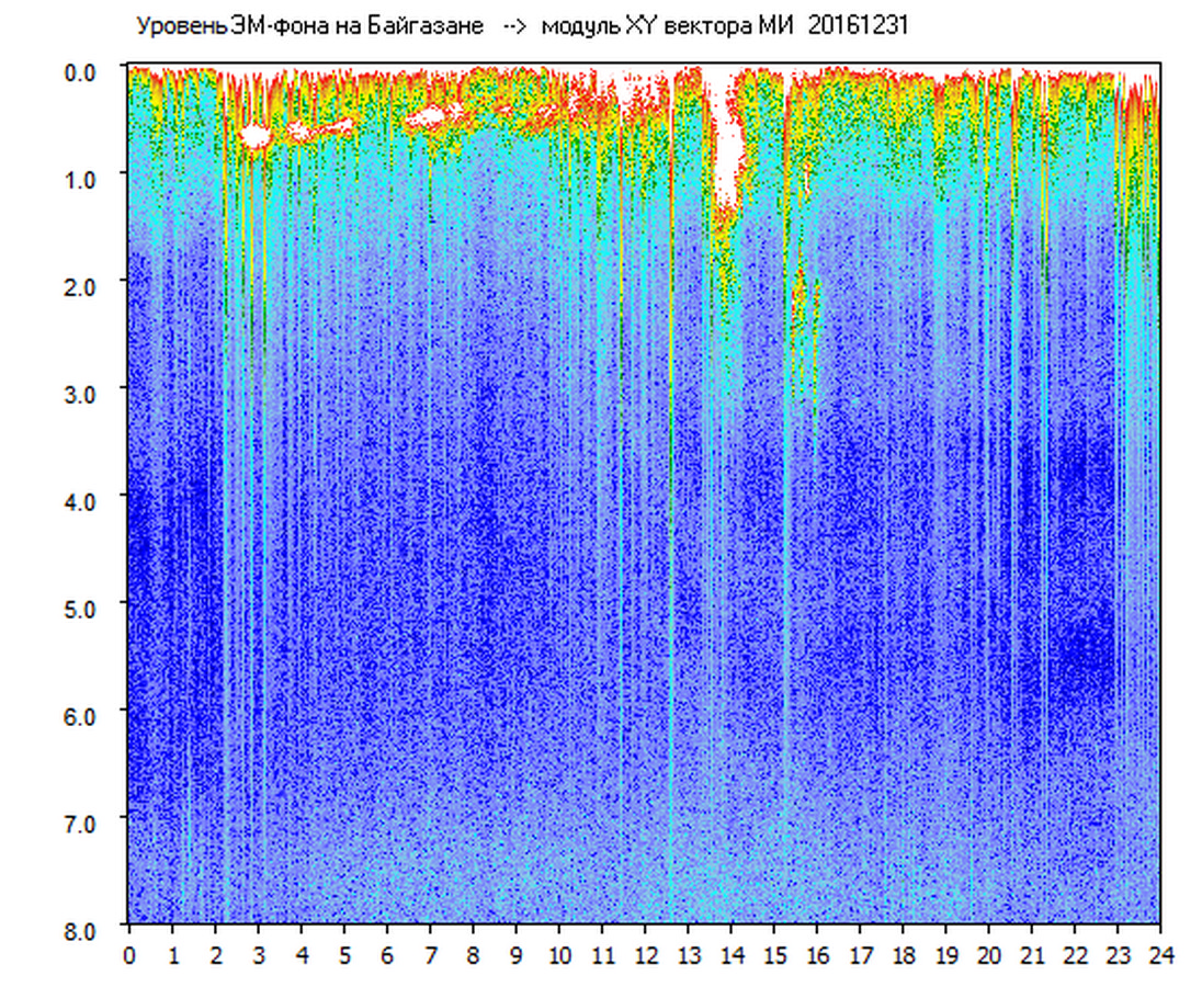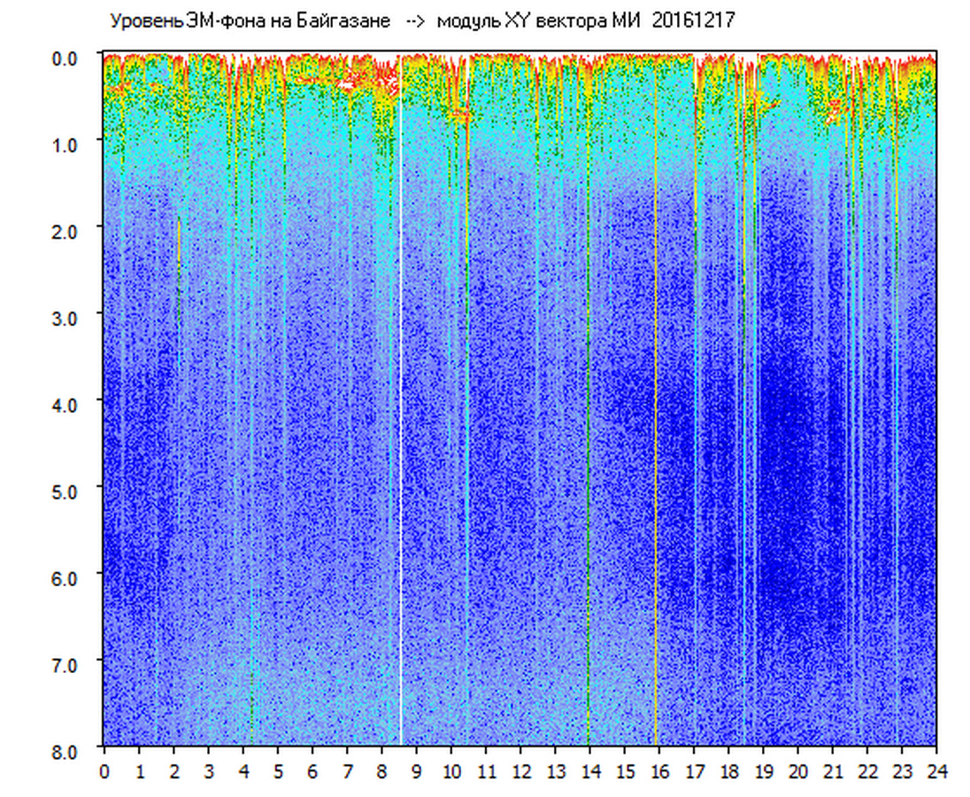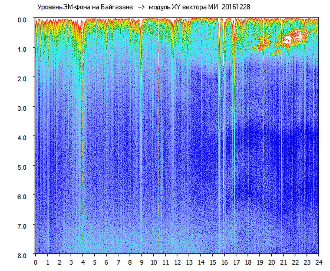 Динамические спектры электромагнитного фона в полосе частот 0 – 8 Гц (Альфвеновские резонансы)