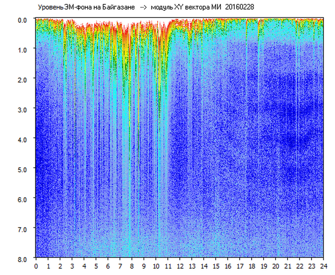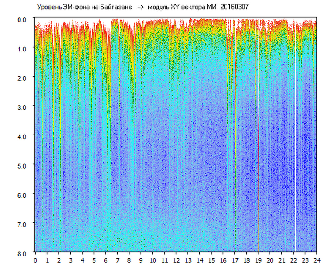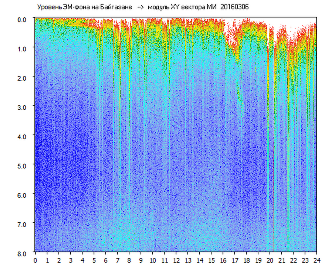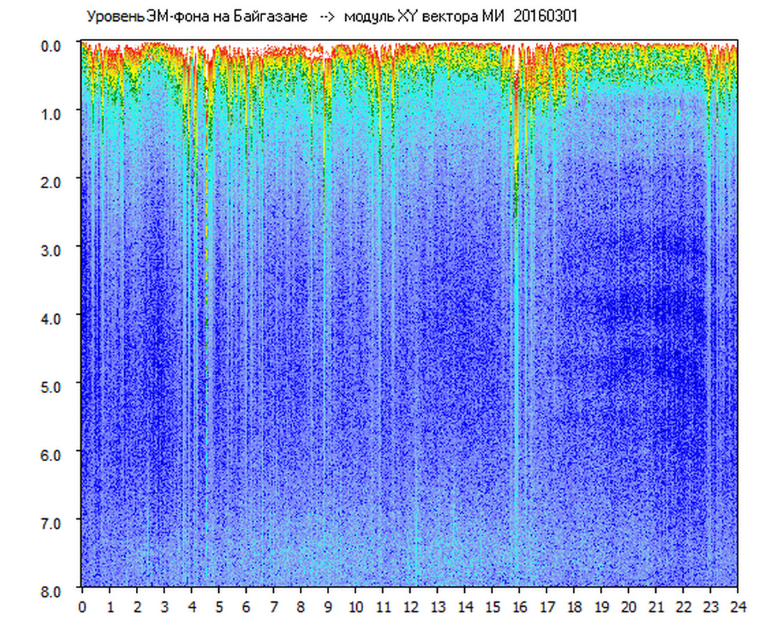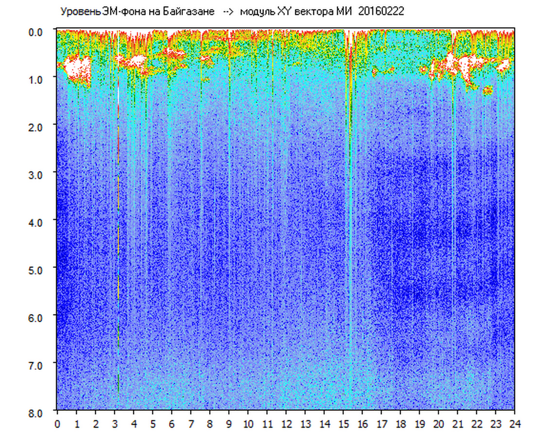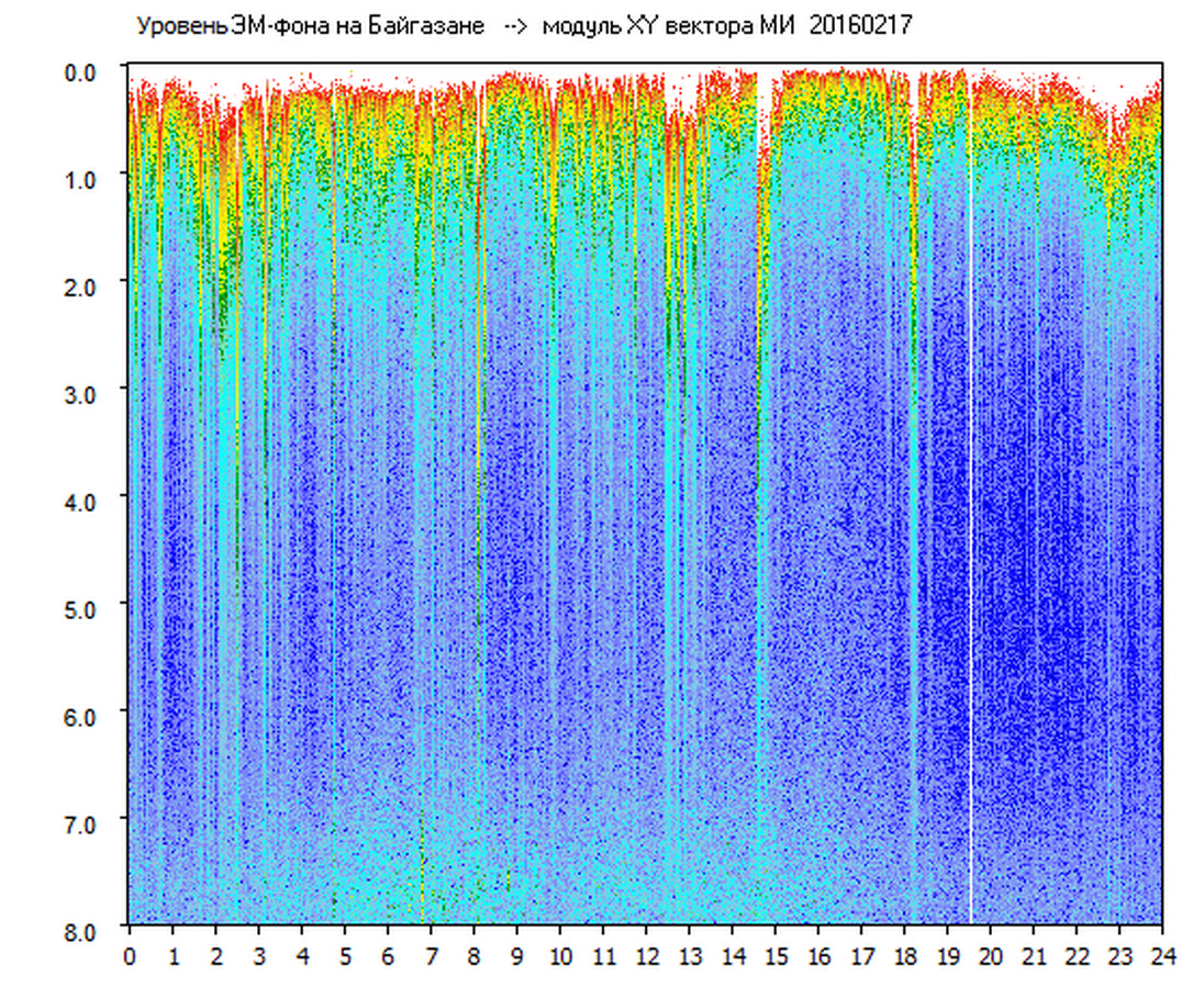 Динамические спектры электромагнитного фона в полосе частот 0 – 8 Гц (Альфвеновские резонансы)