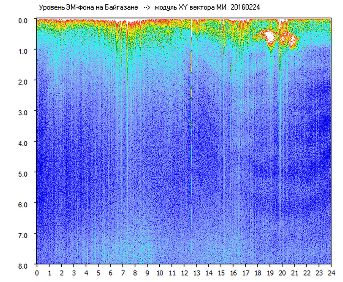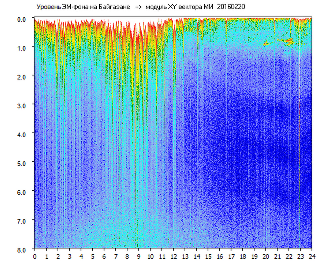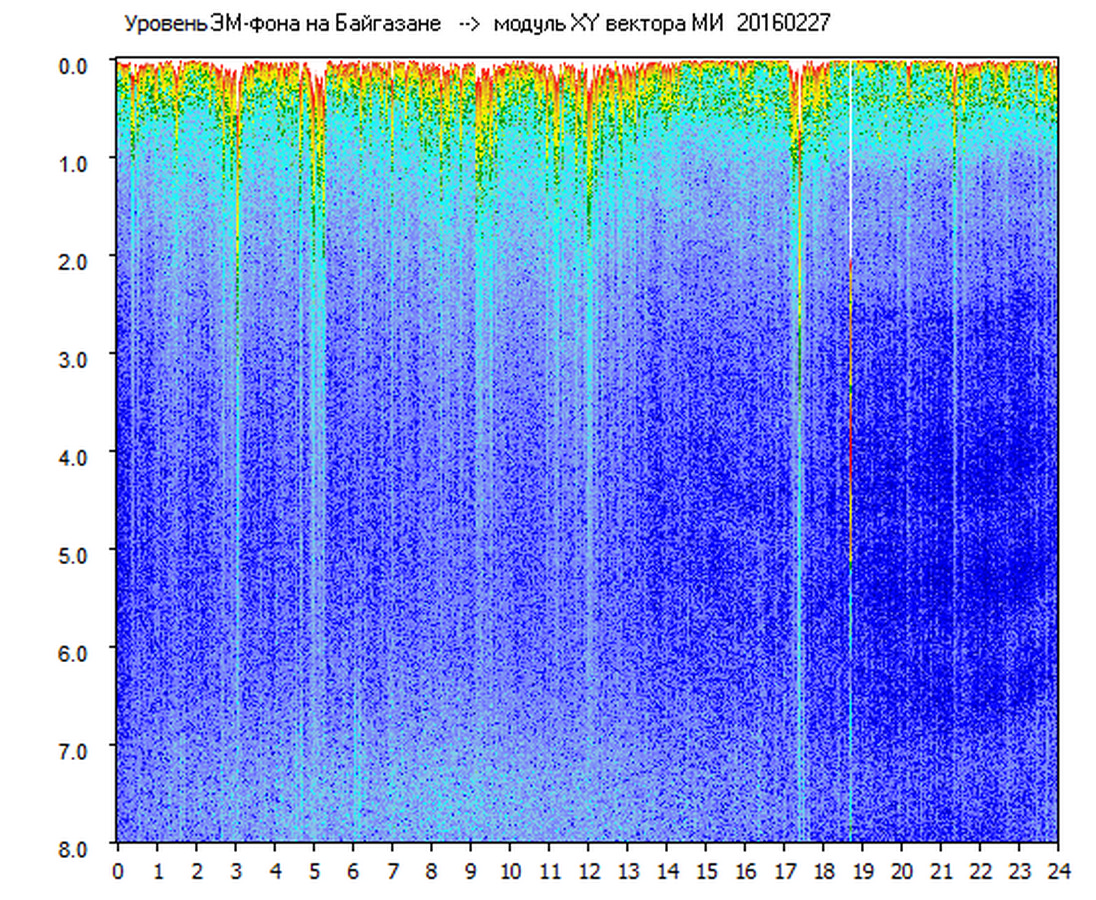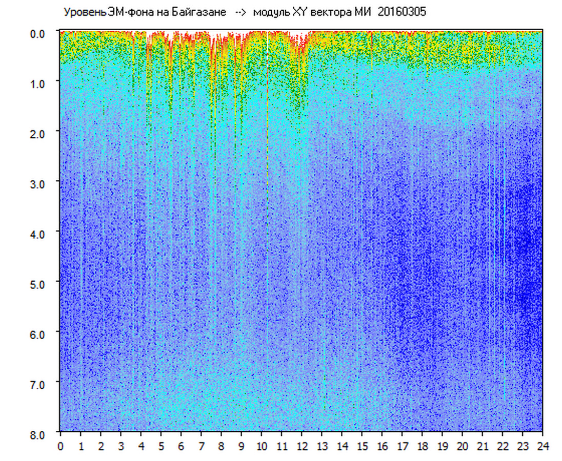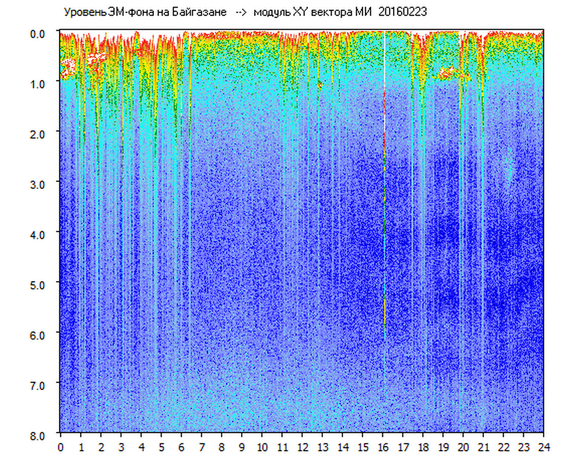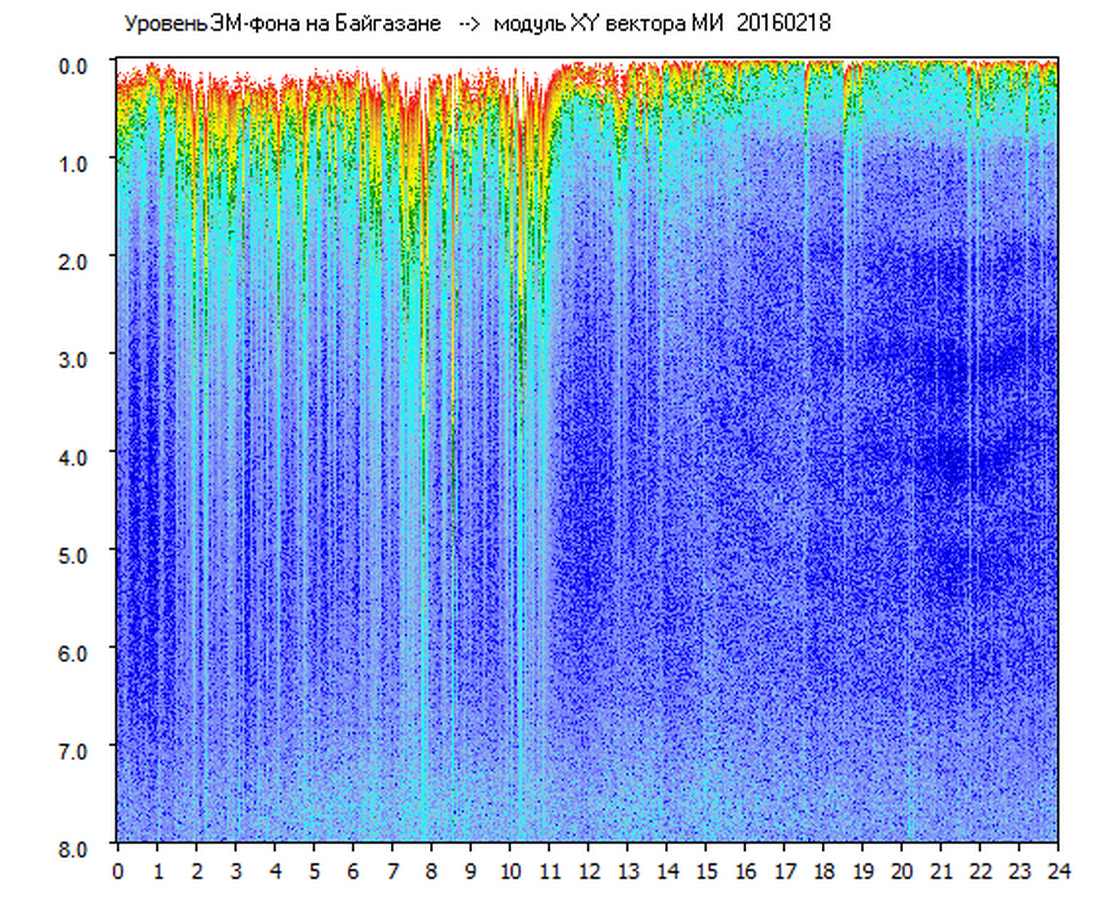 Динамические спектры электромагнитного фона в полосе частот 0 – 8 Гц (Альфвеновские резонансы)