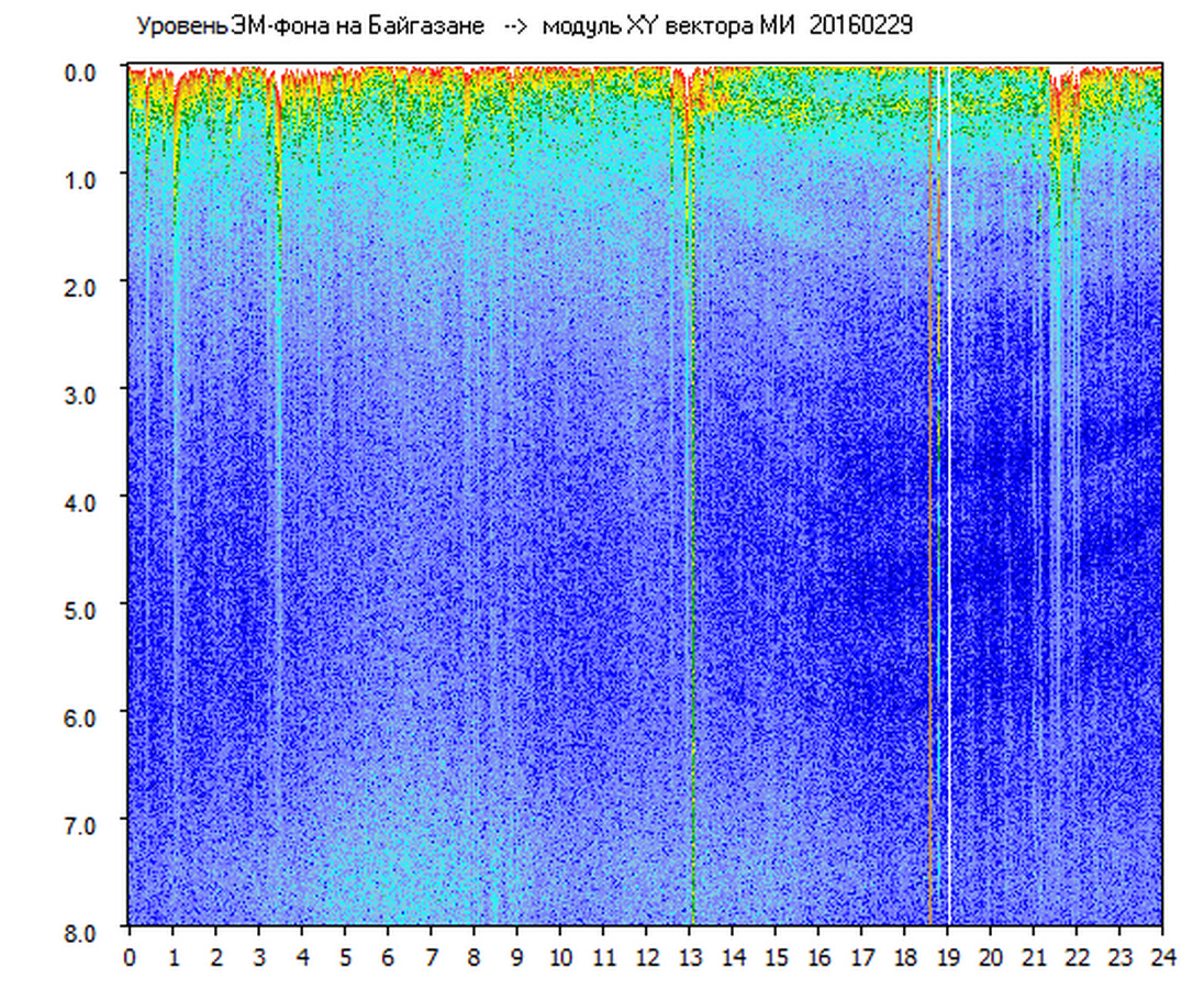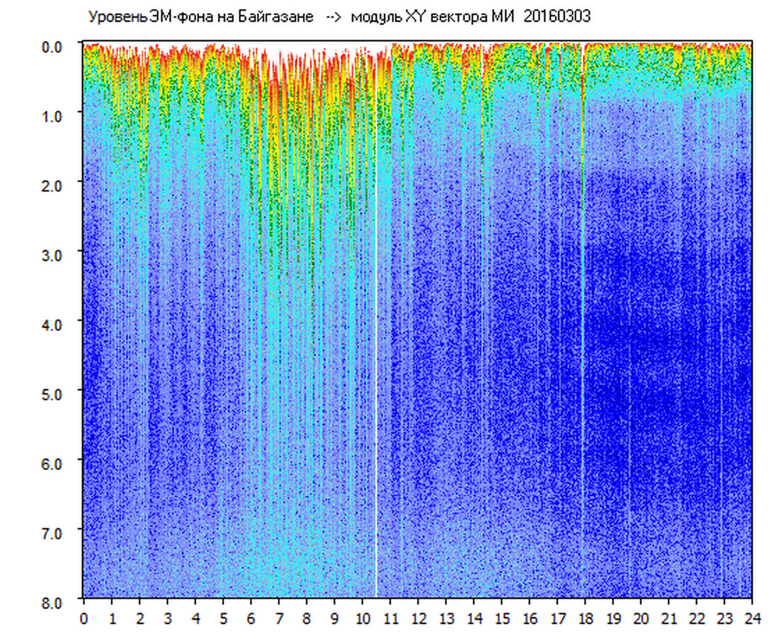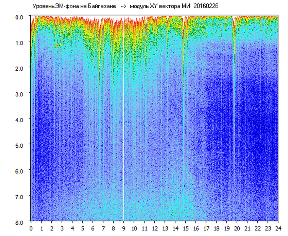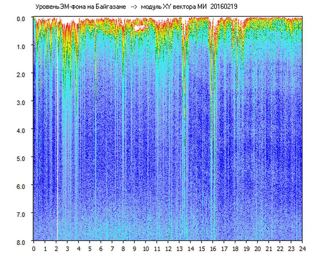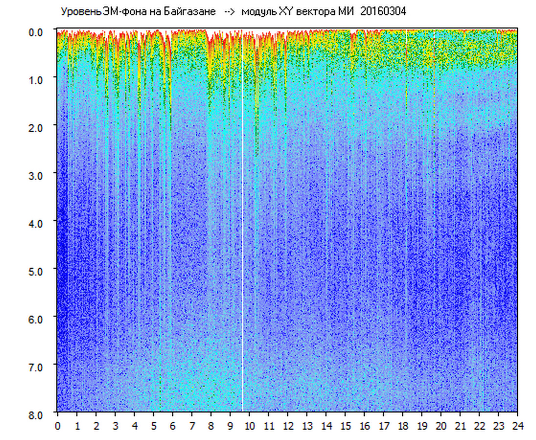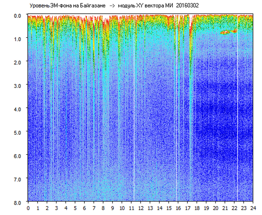 Динамические спектры электромагнитного фона в полосе частот 0 – 8 Гц (Альфвеновские резонансы)
