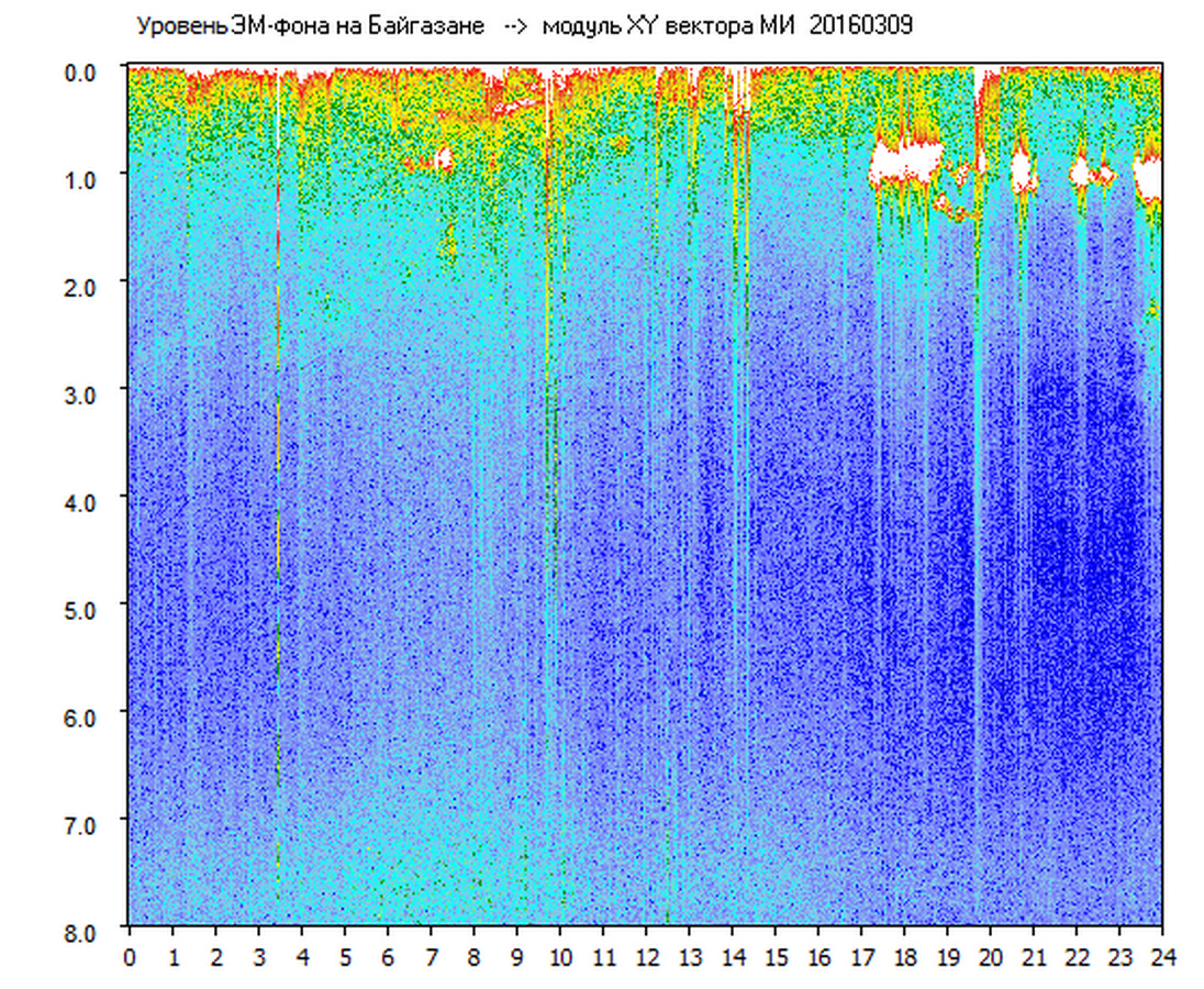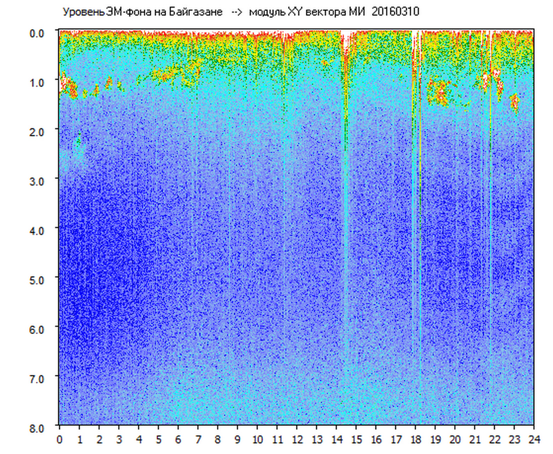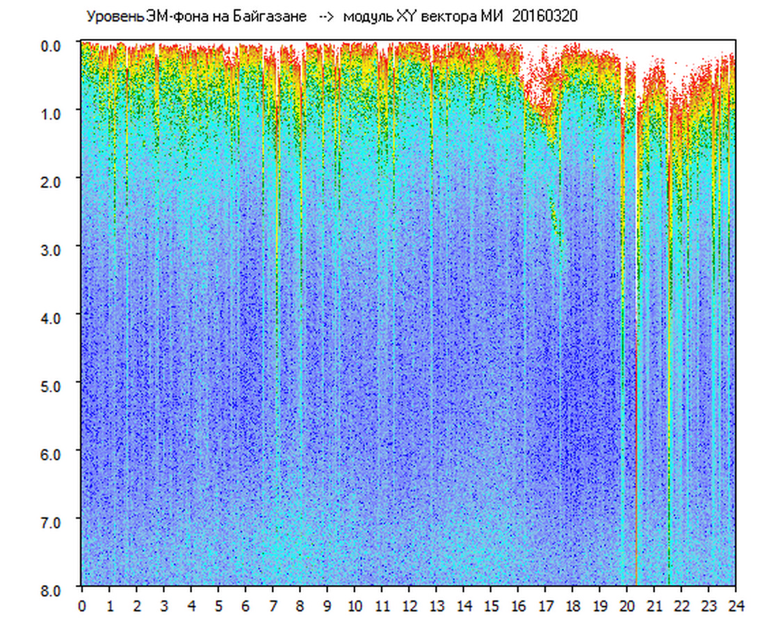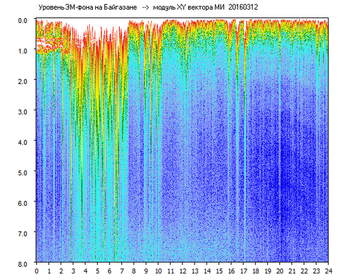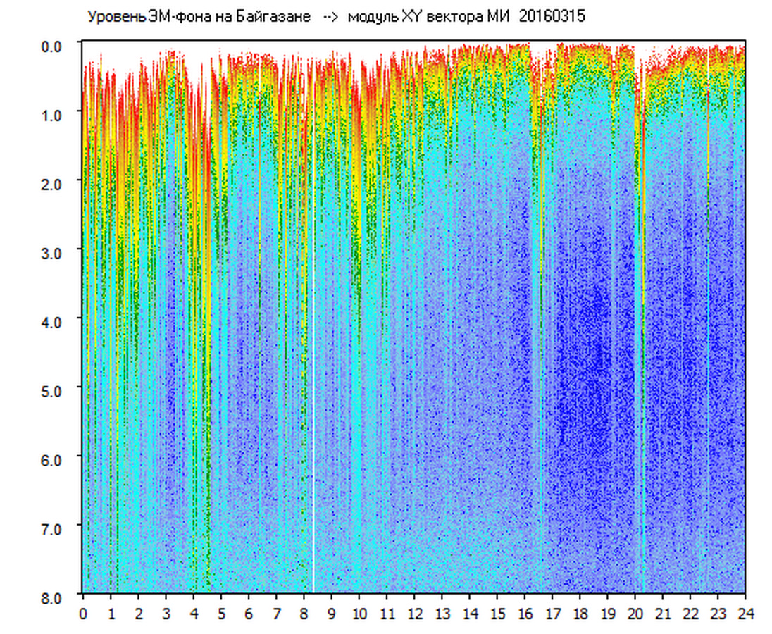 Динамические спектры электромагнитного фона в полосе частот 0 – 8 Гц (Альфвеновские резонансы)