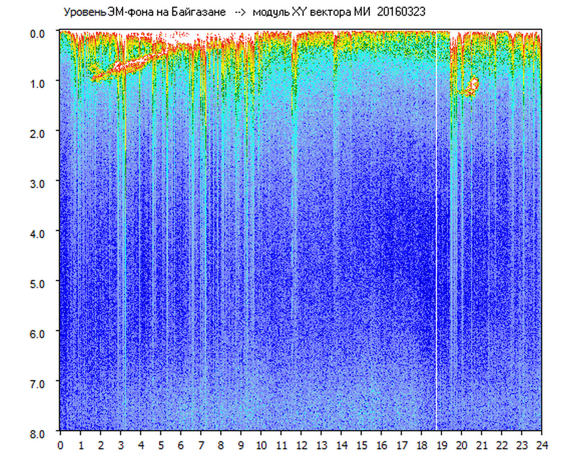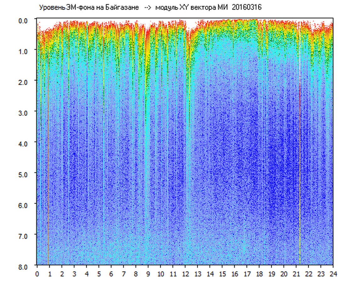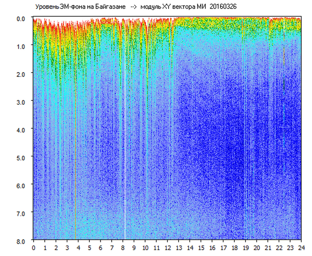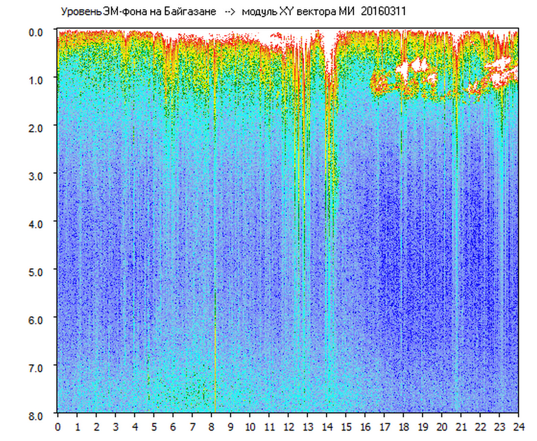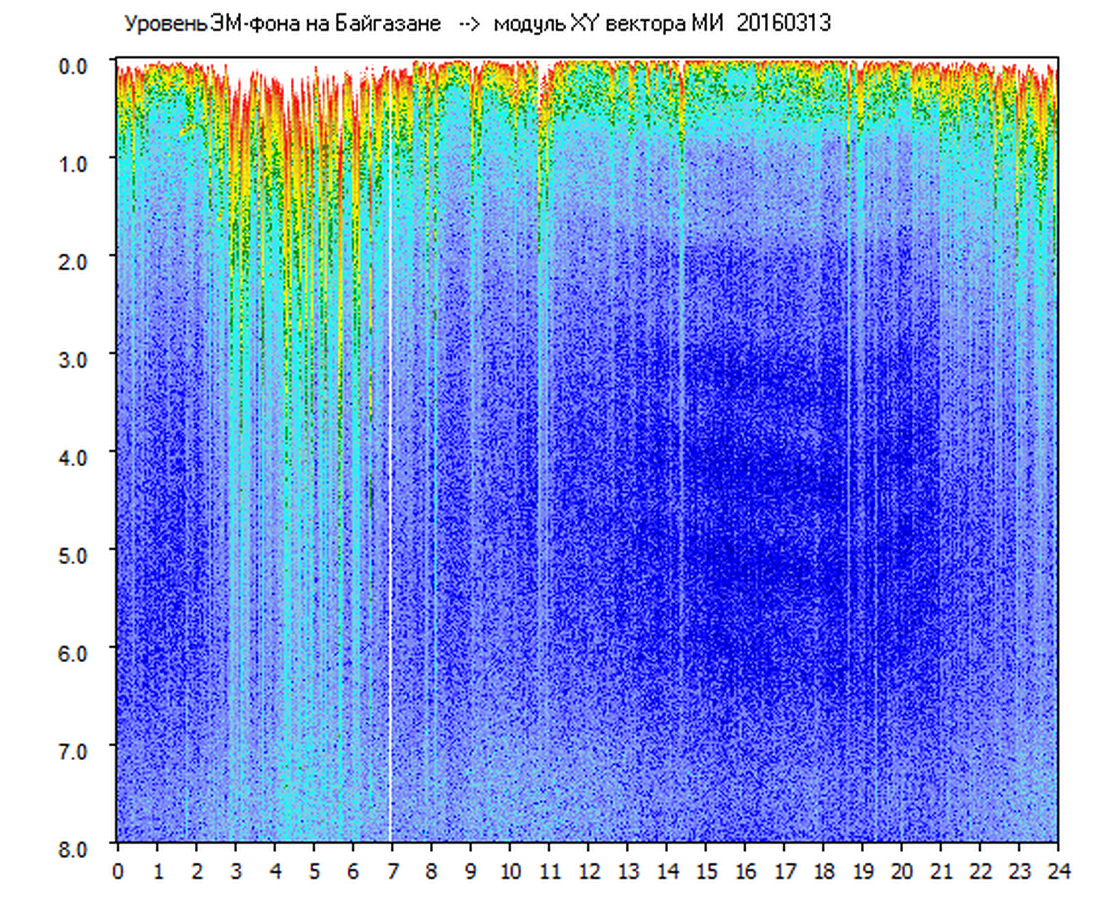 Динамические спектры электромагнитного фона в полосе частот 0 – 8 Гц (Альфвеновские резонансы)