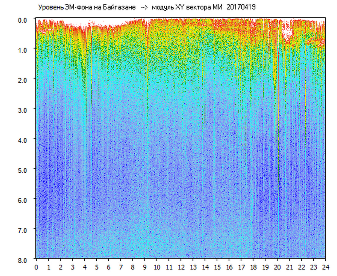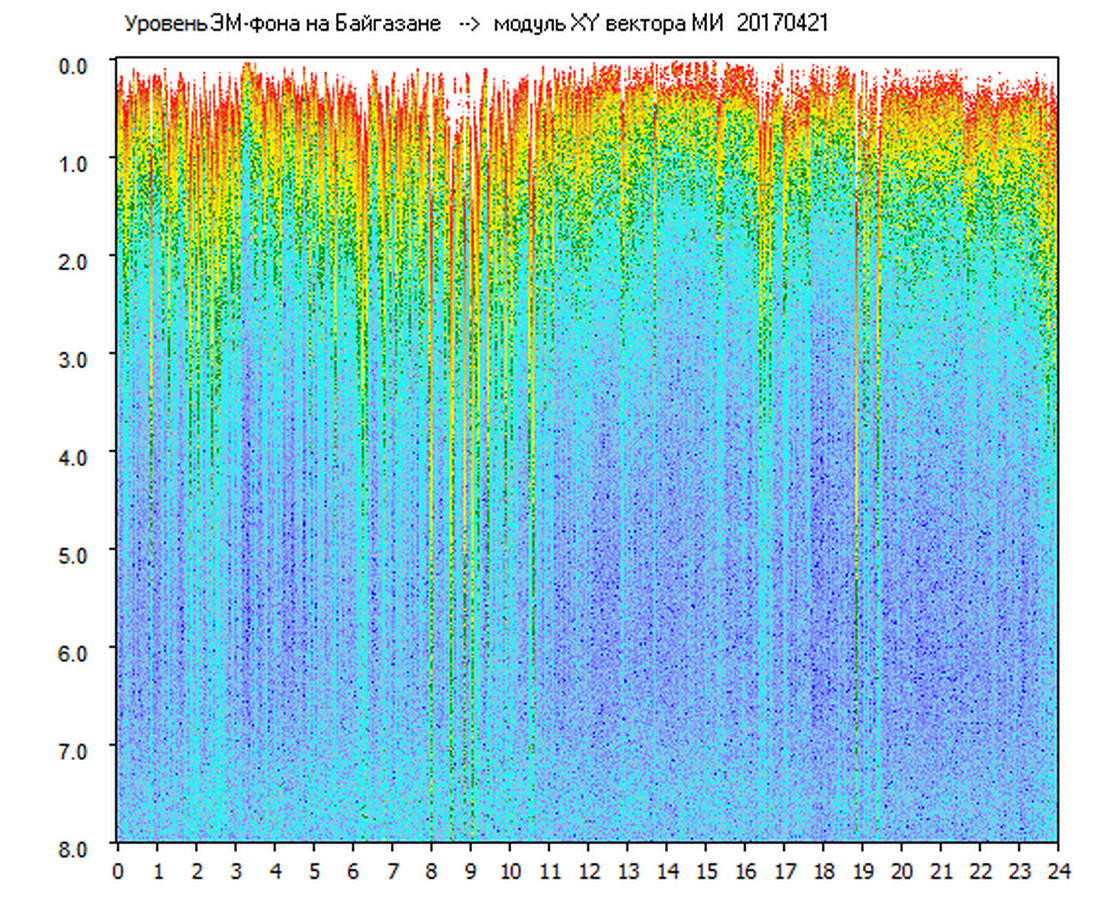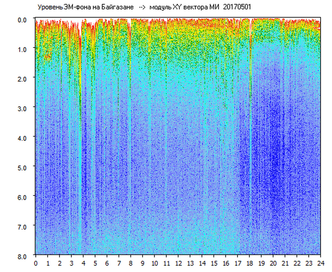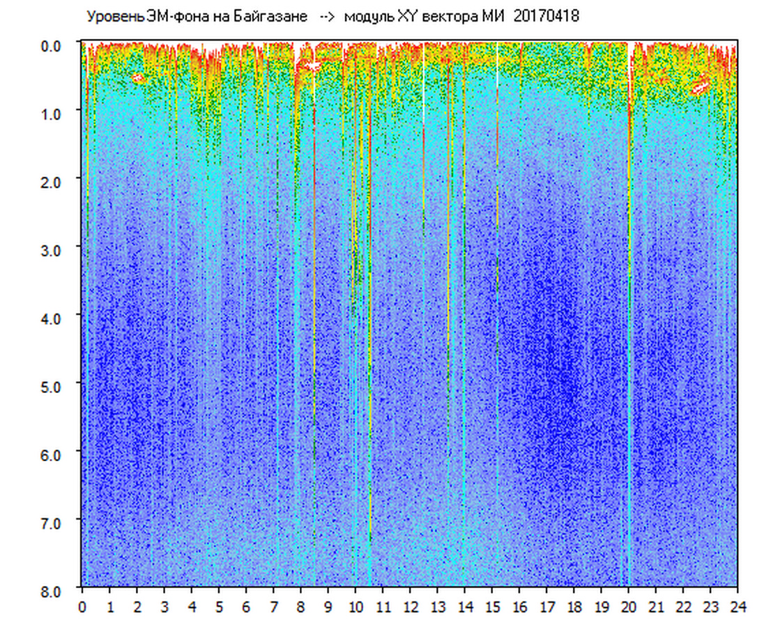 Динамические спектры электромагнитного фона в полосе частот 0 – 8 Гц (Альфвеновские резонансы)