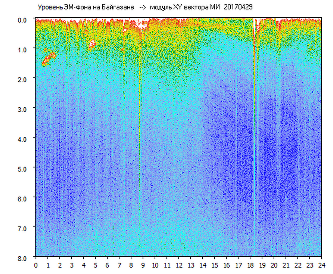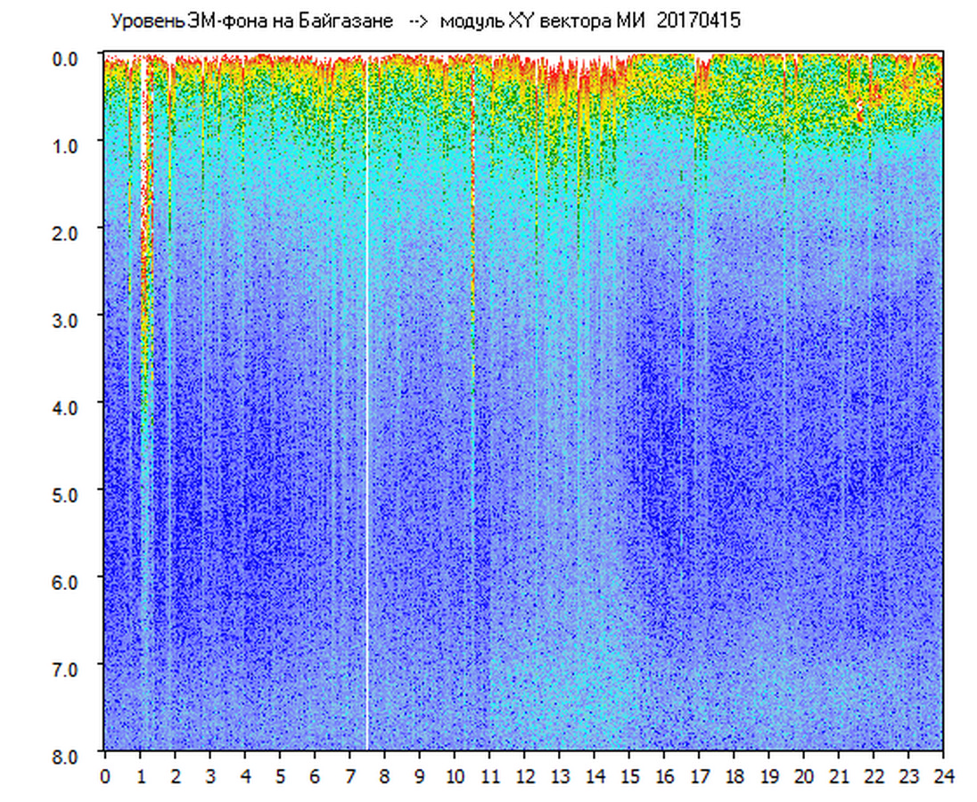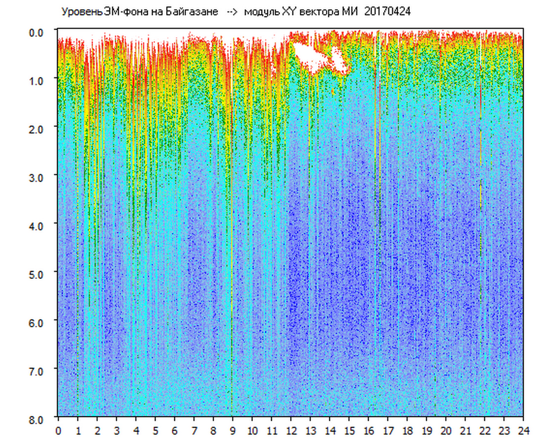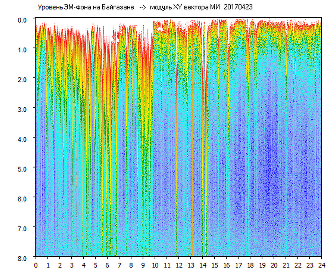 Динамические спектры электромагнитного фона в полосе частот 0 – 8 Гц (Альфвеновские резонансы)