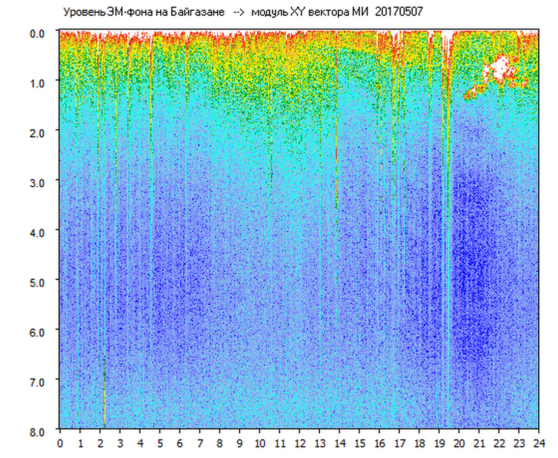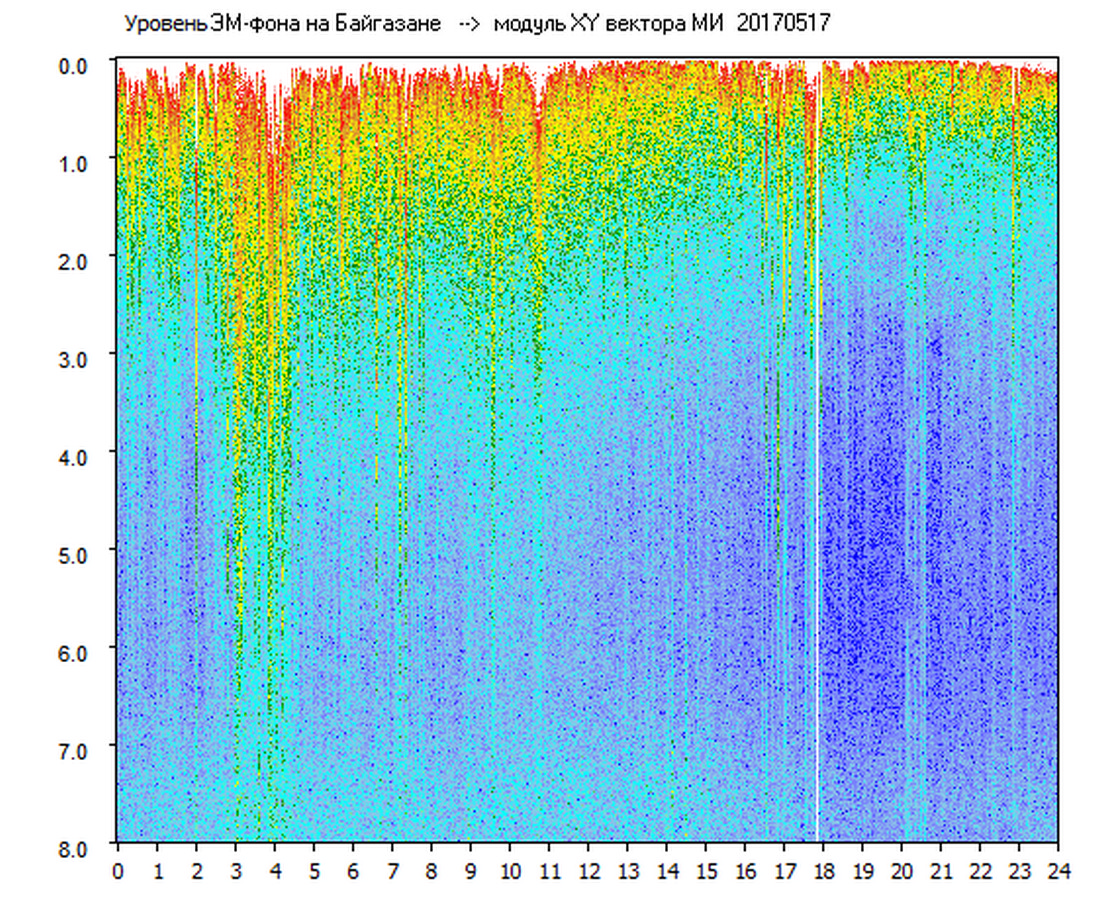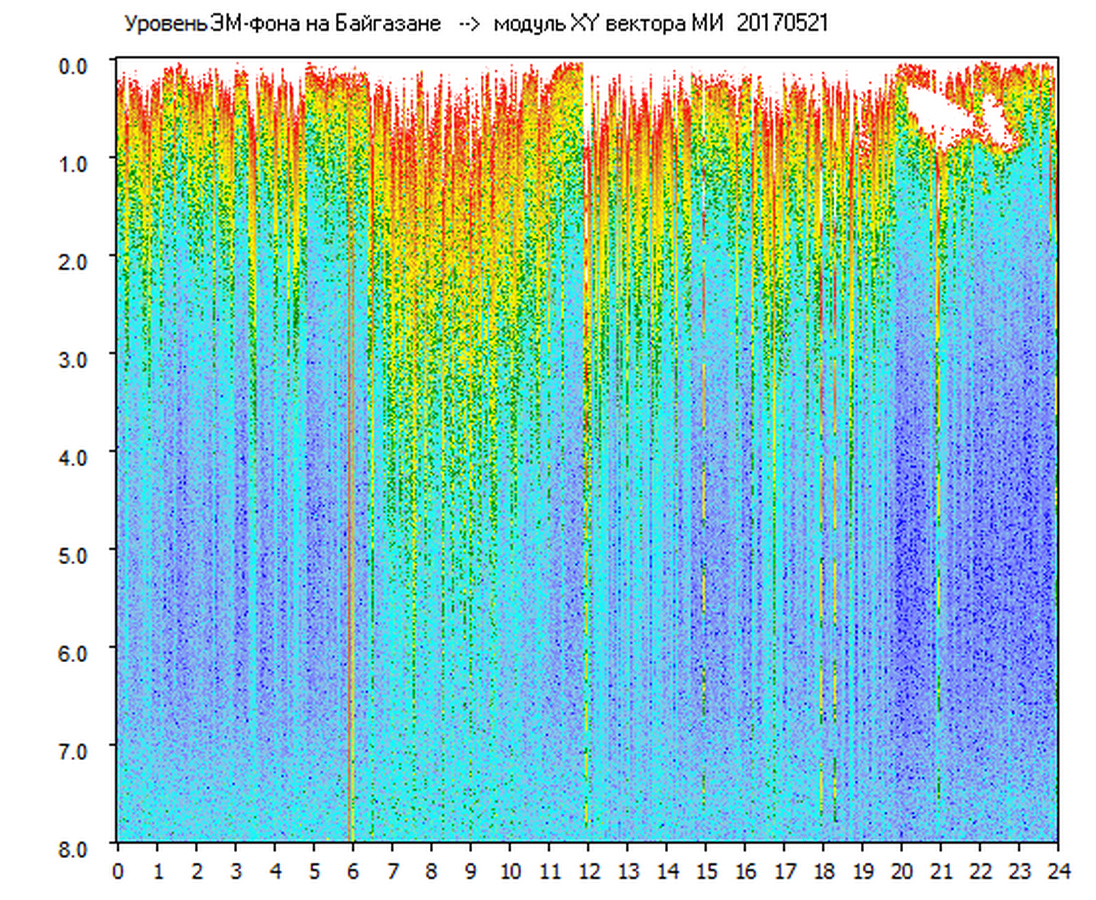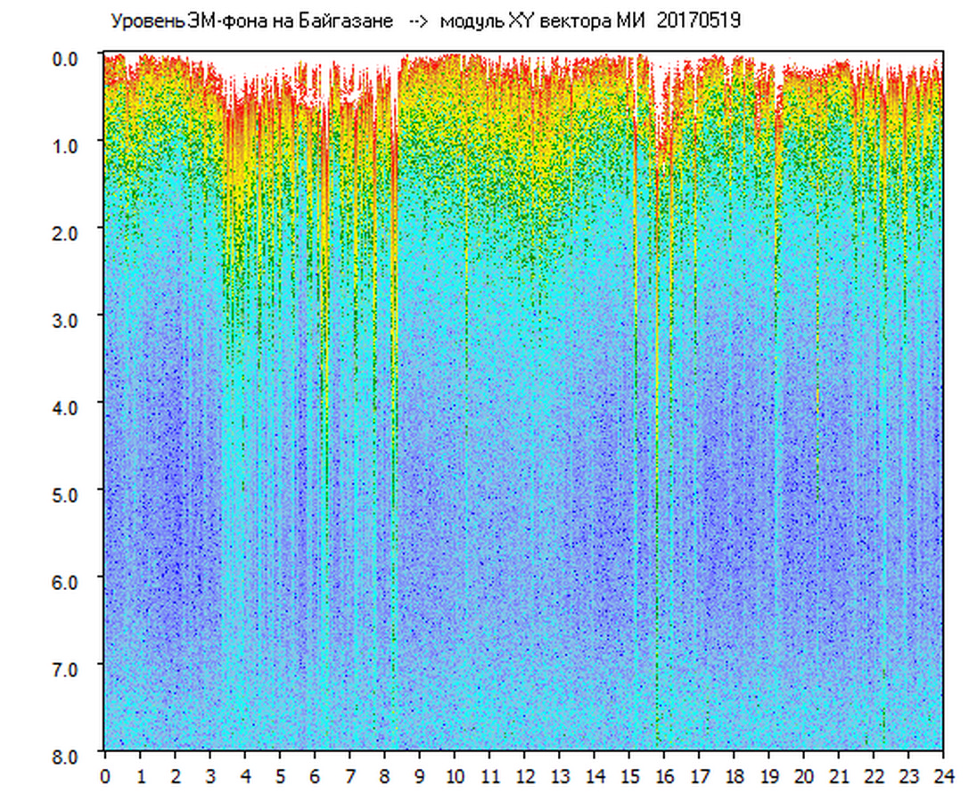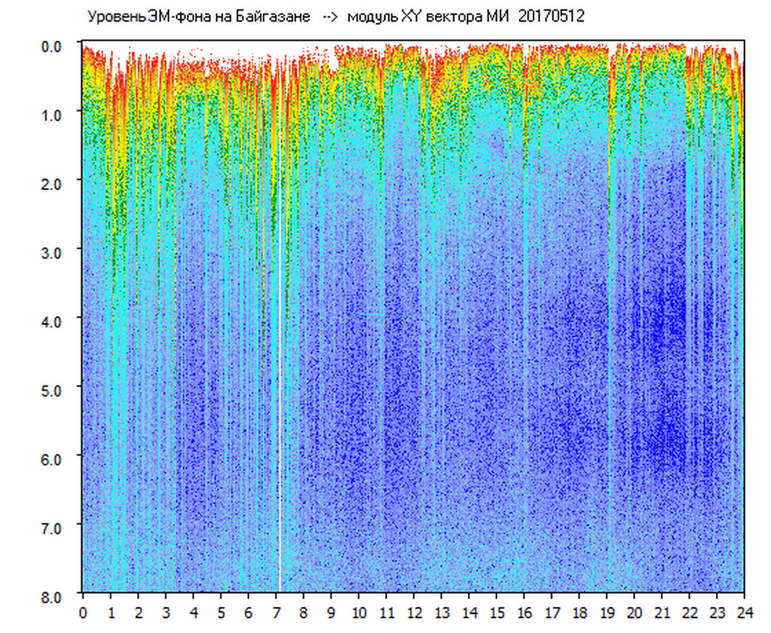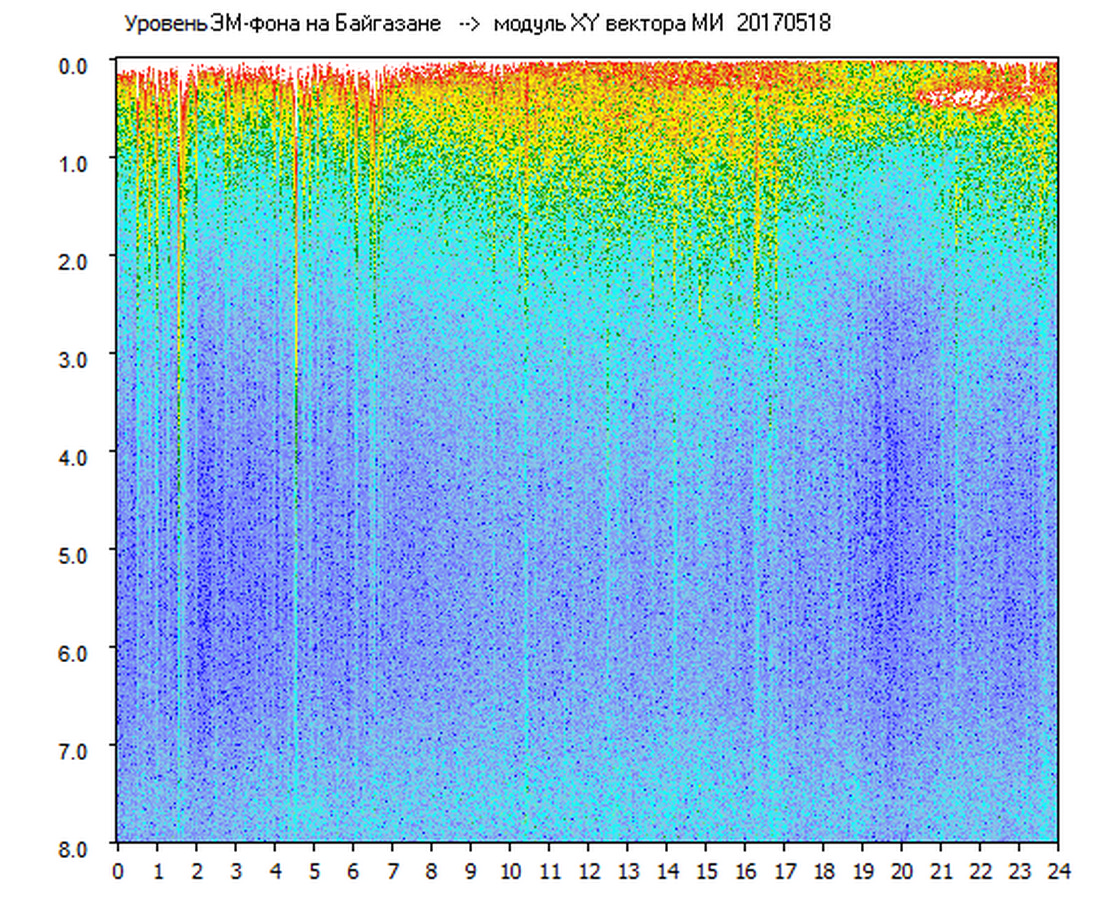 Динамические спектры электромагнитного фона в полосе частот 0 – 8 Гц (Альфвеновские резонансы)