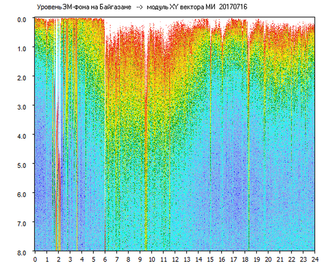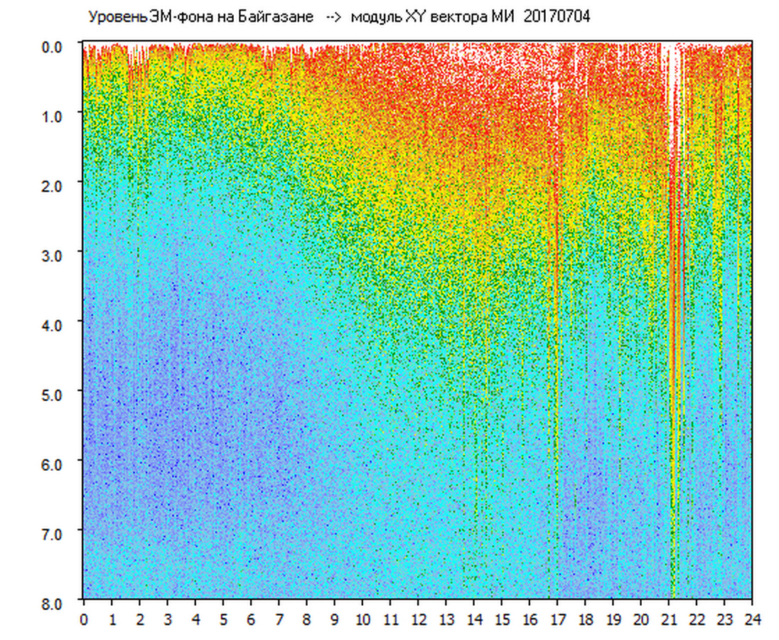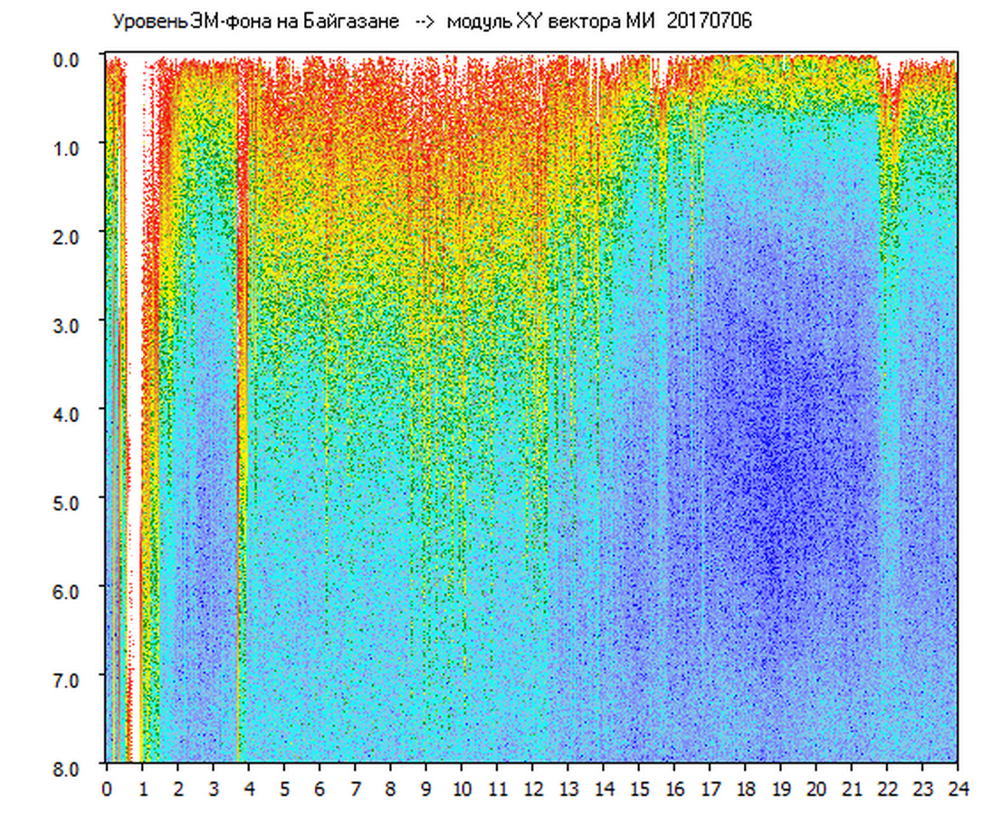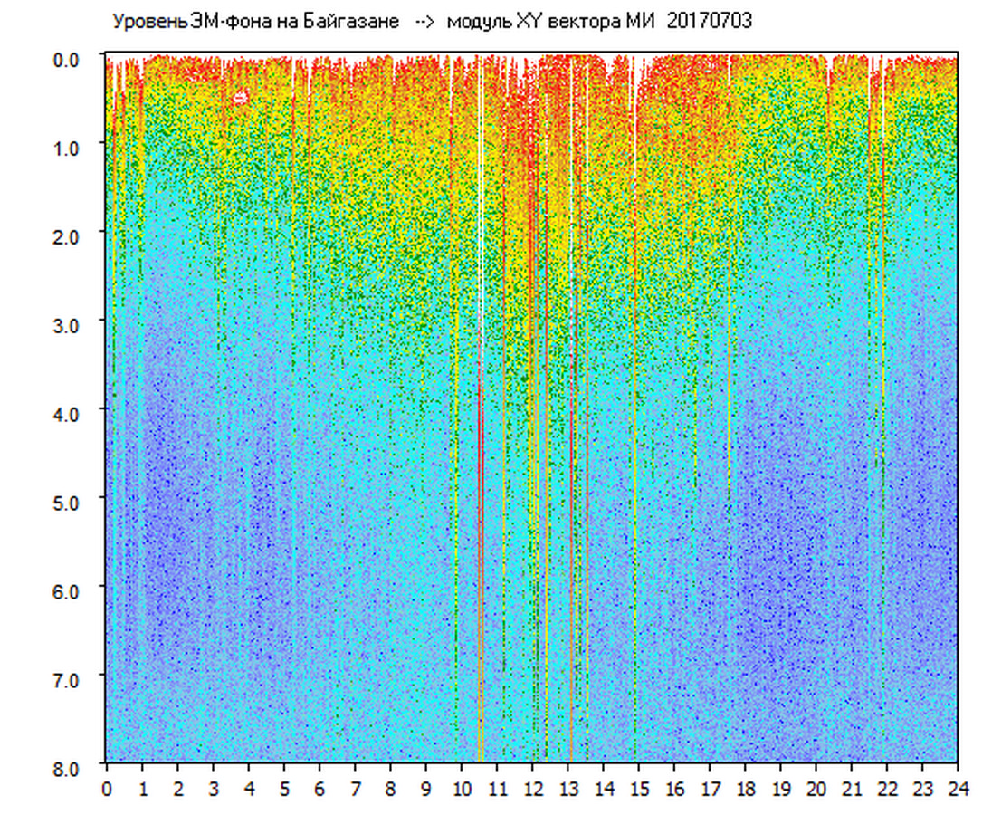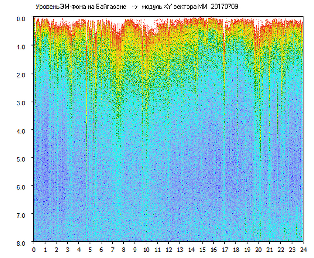 Динамические спектры электромагнитного фона в полосе частот 0 – 8 Гц (Альфвеновские резонансы)