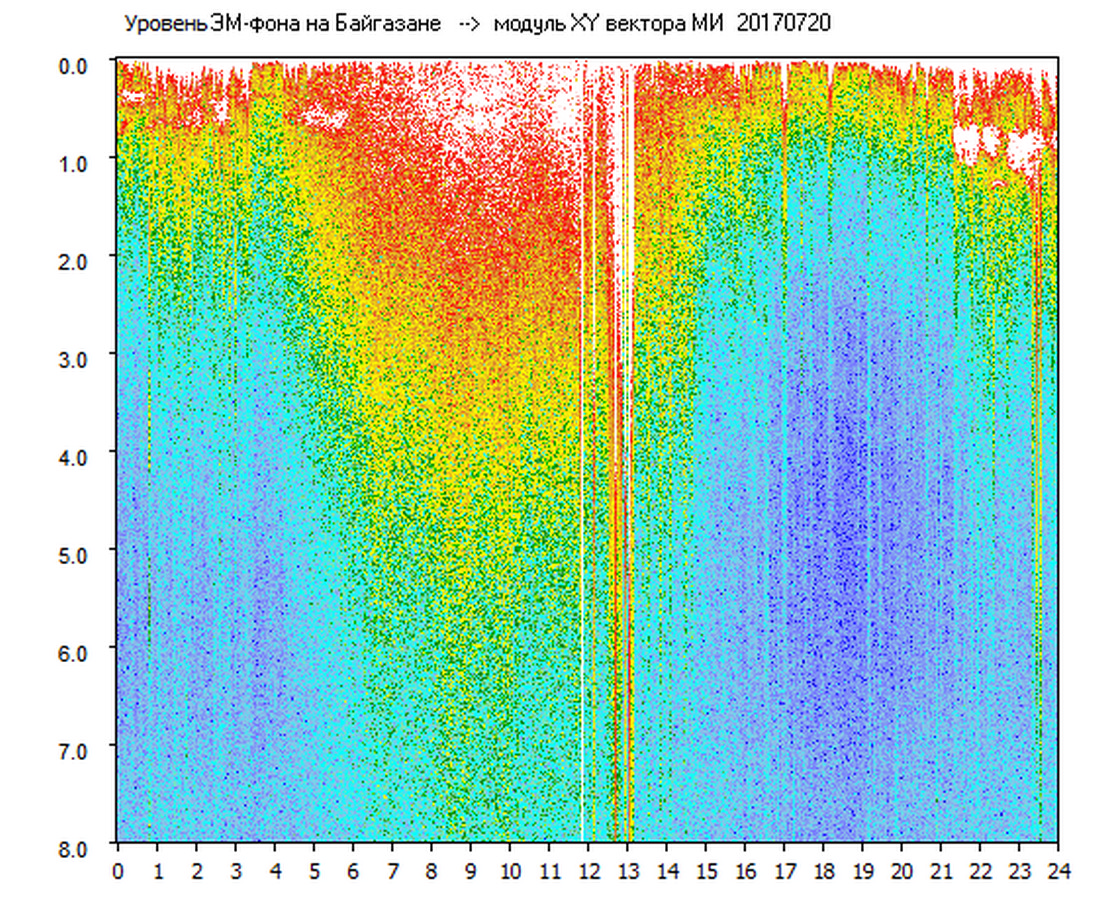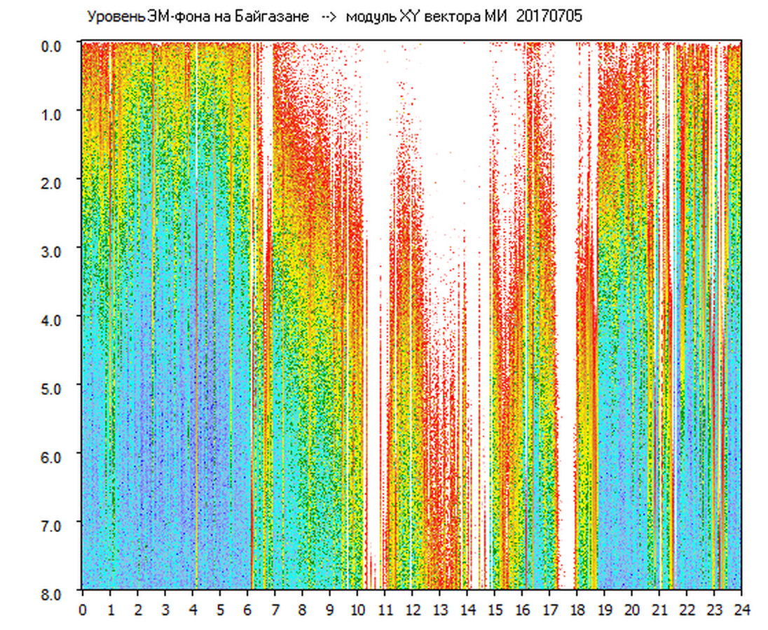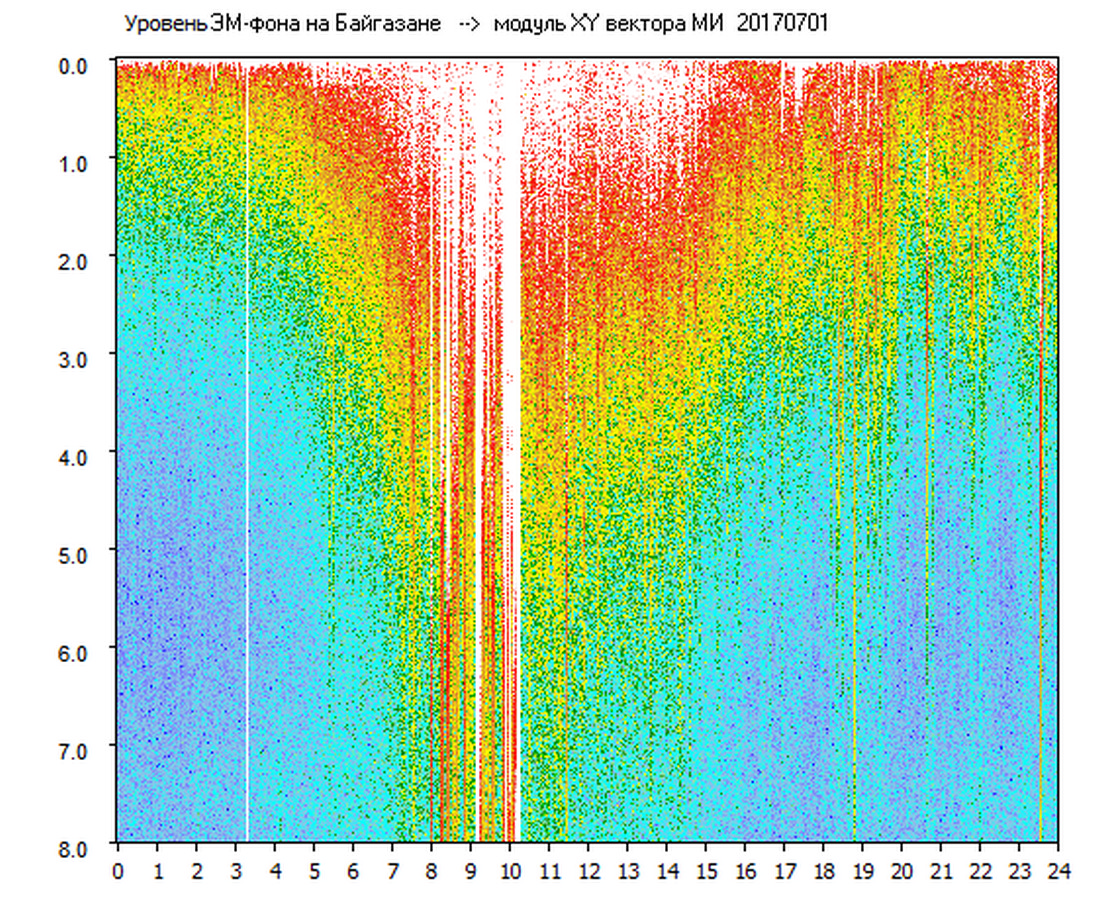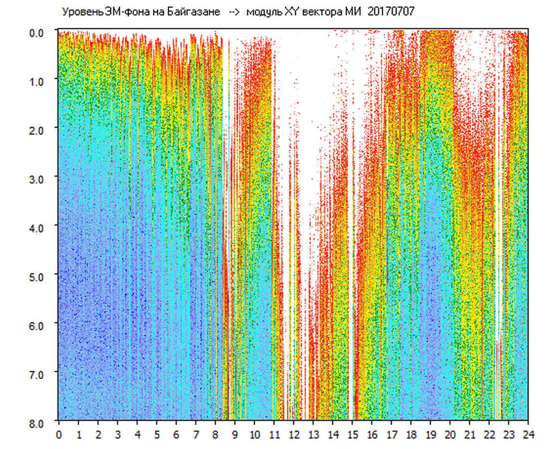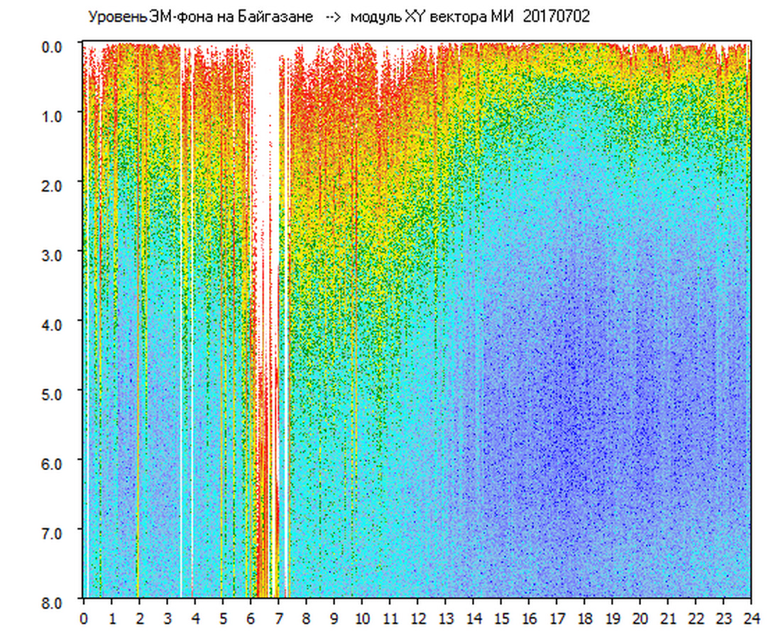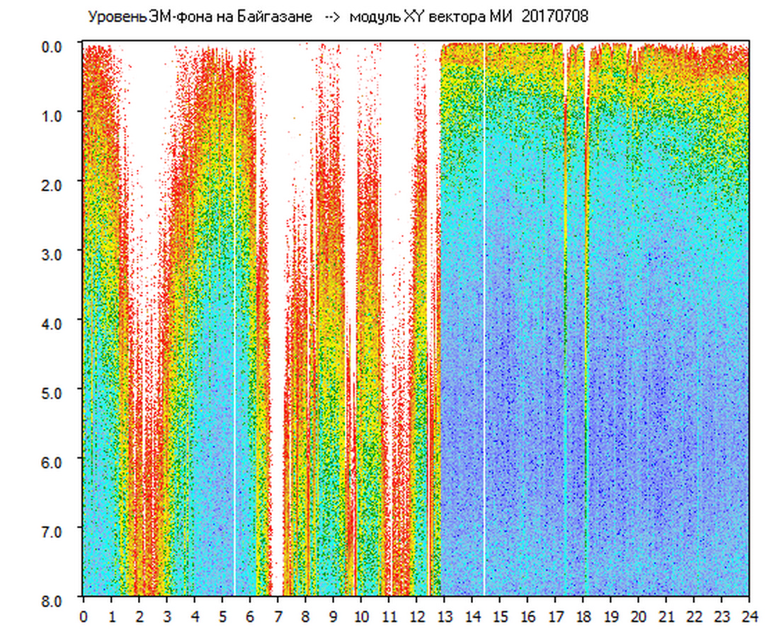 Динамические спектры электромагнитного фона в полосе частот 0 – 8 Гц (Альфвеновские резонансы)