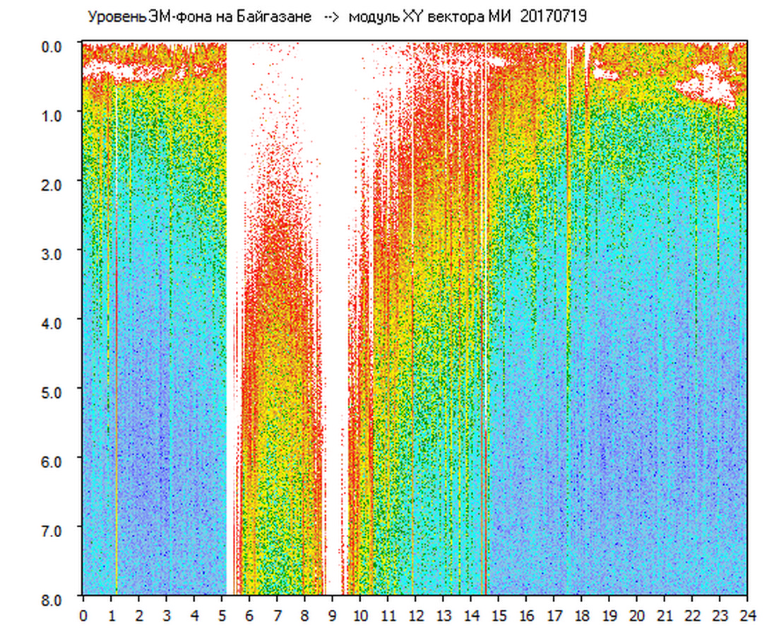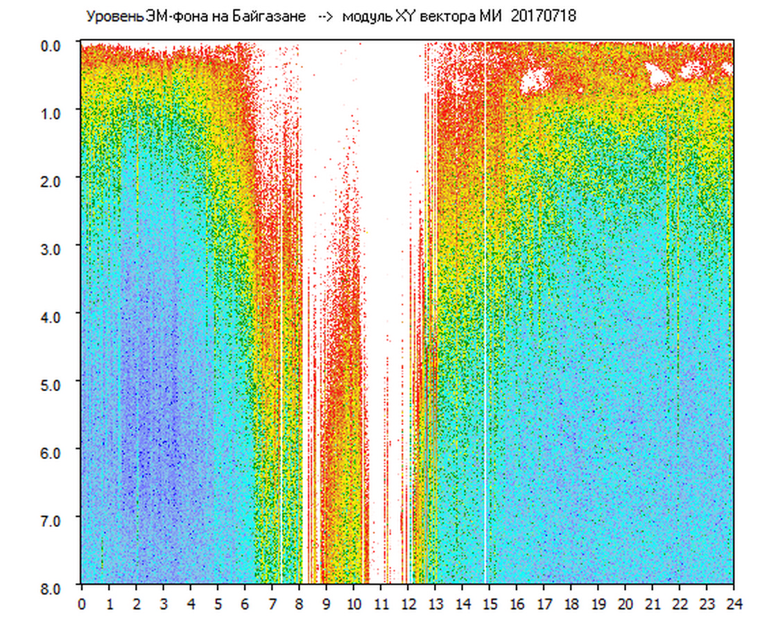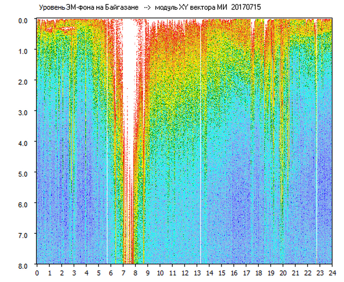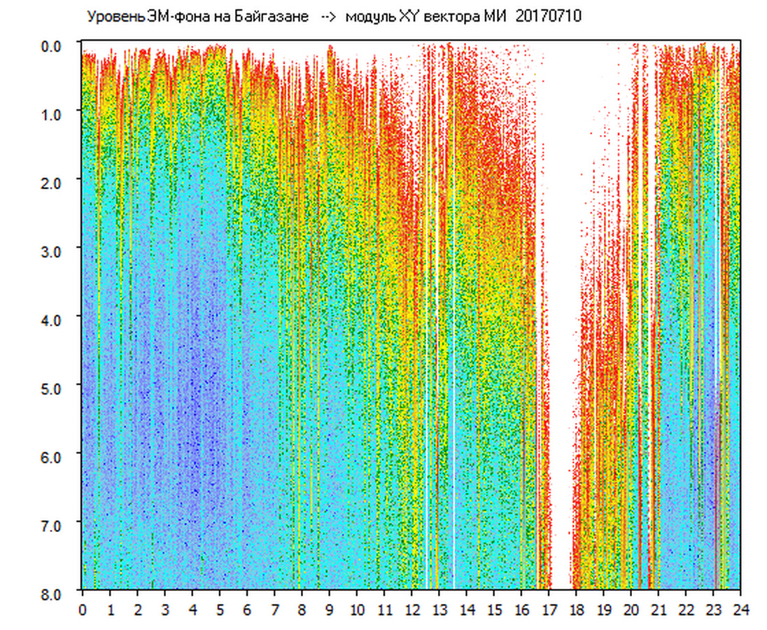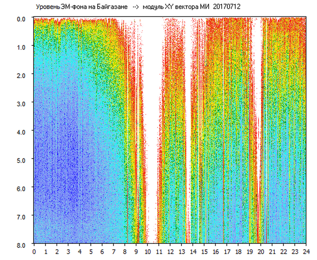 Динамические спектры электромагнитного фона в полосе частот 0 – 8 Гц (Альфвеновские резонансы)