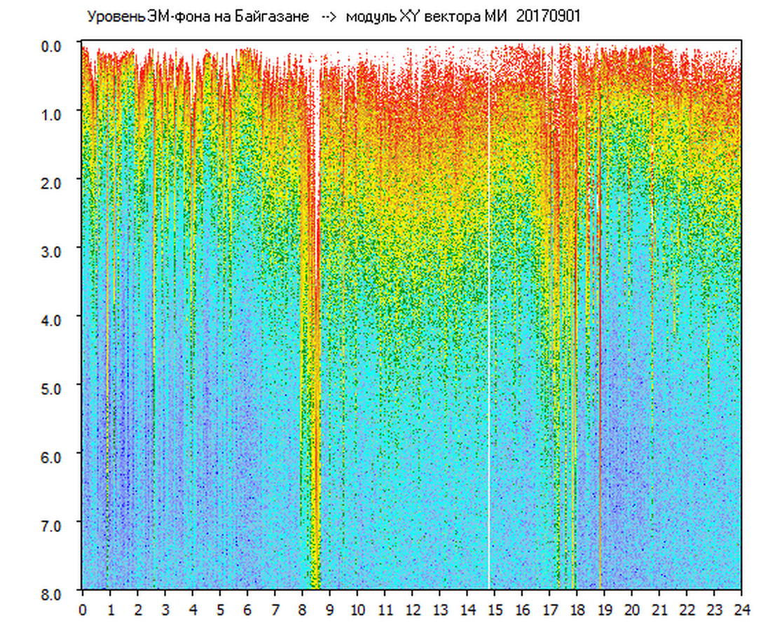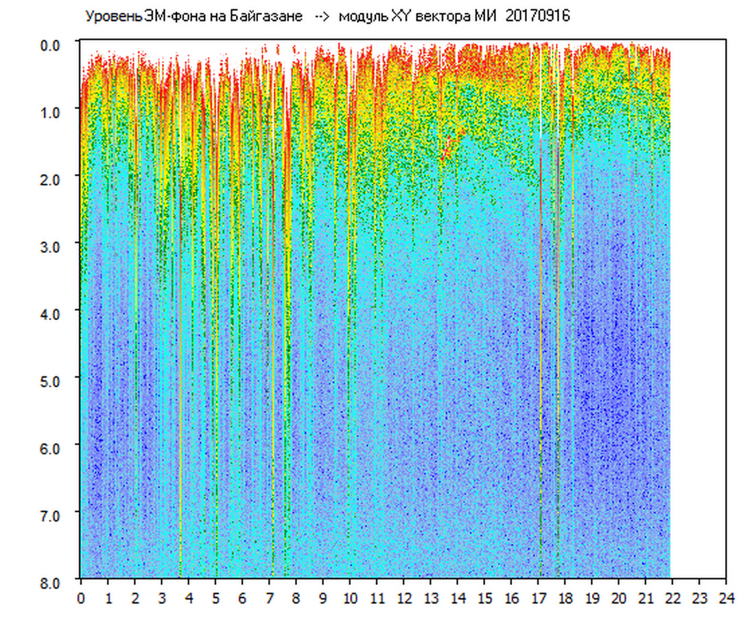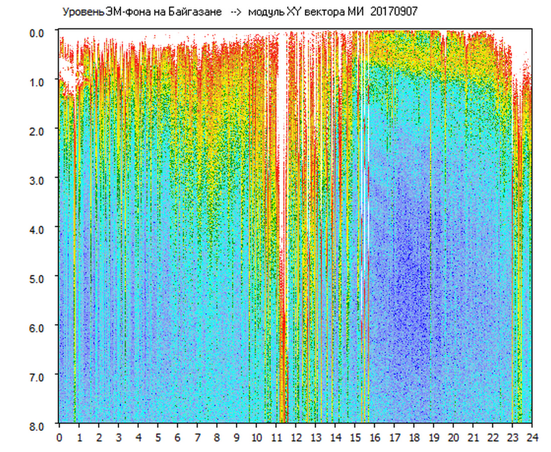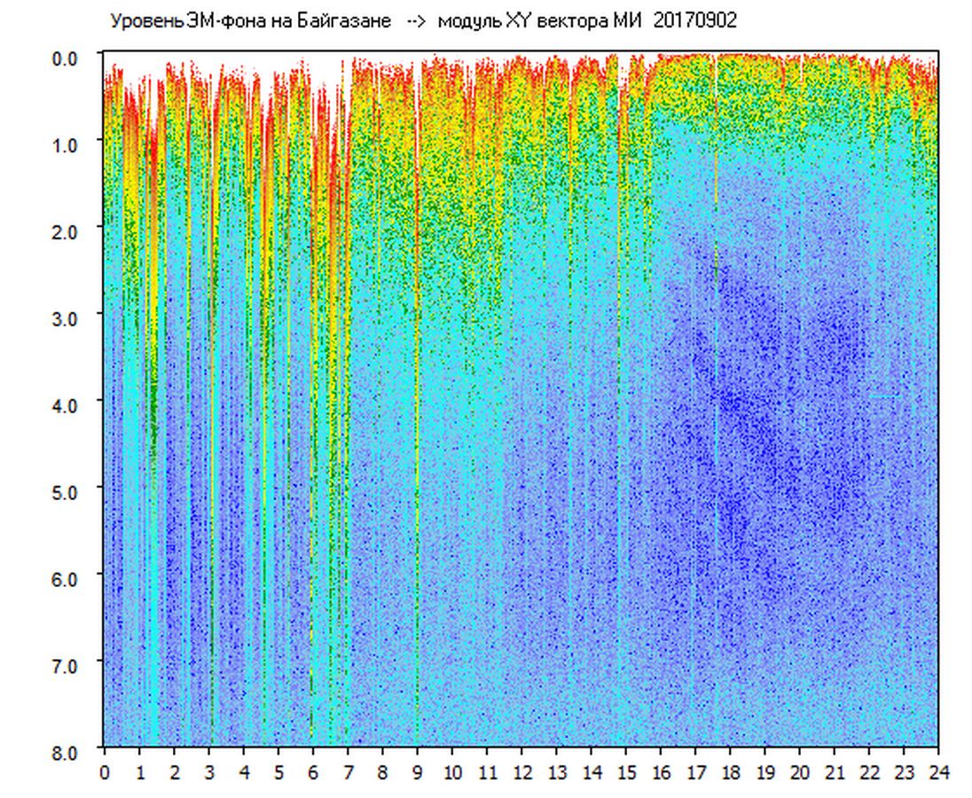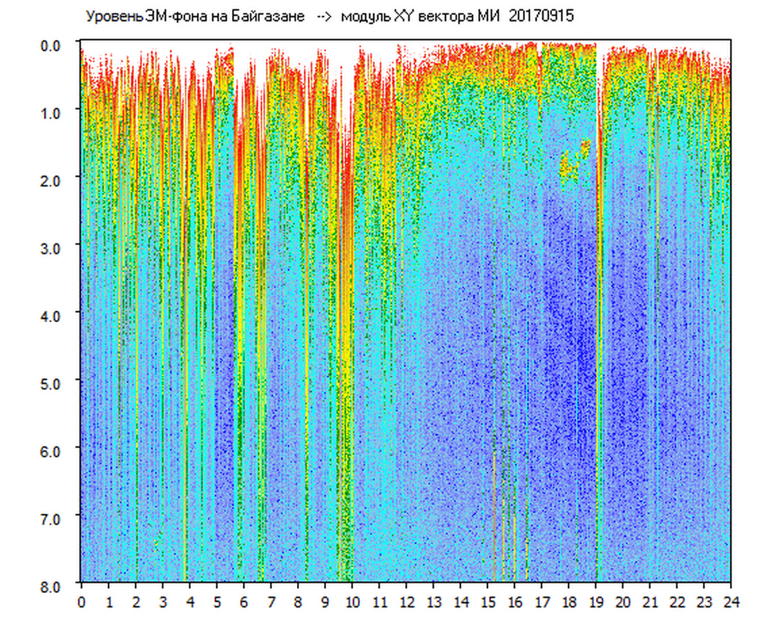 Динамические спектры электромагнитного фона в полосе частот 0 – 8 Гц (Альфвеновские резонансы)