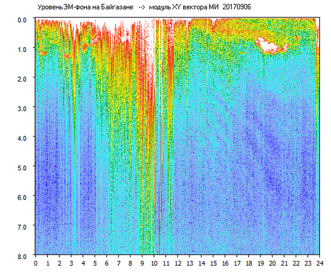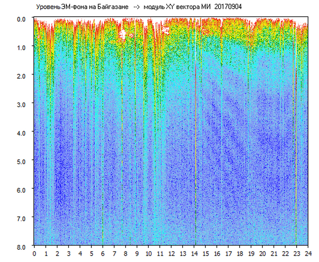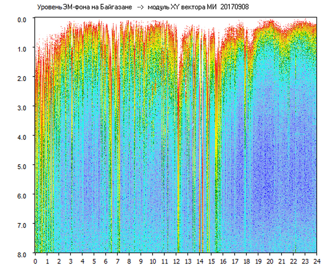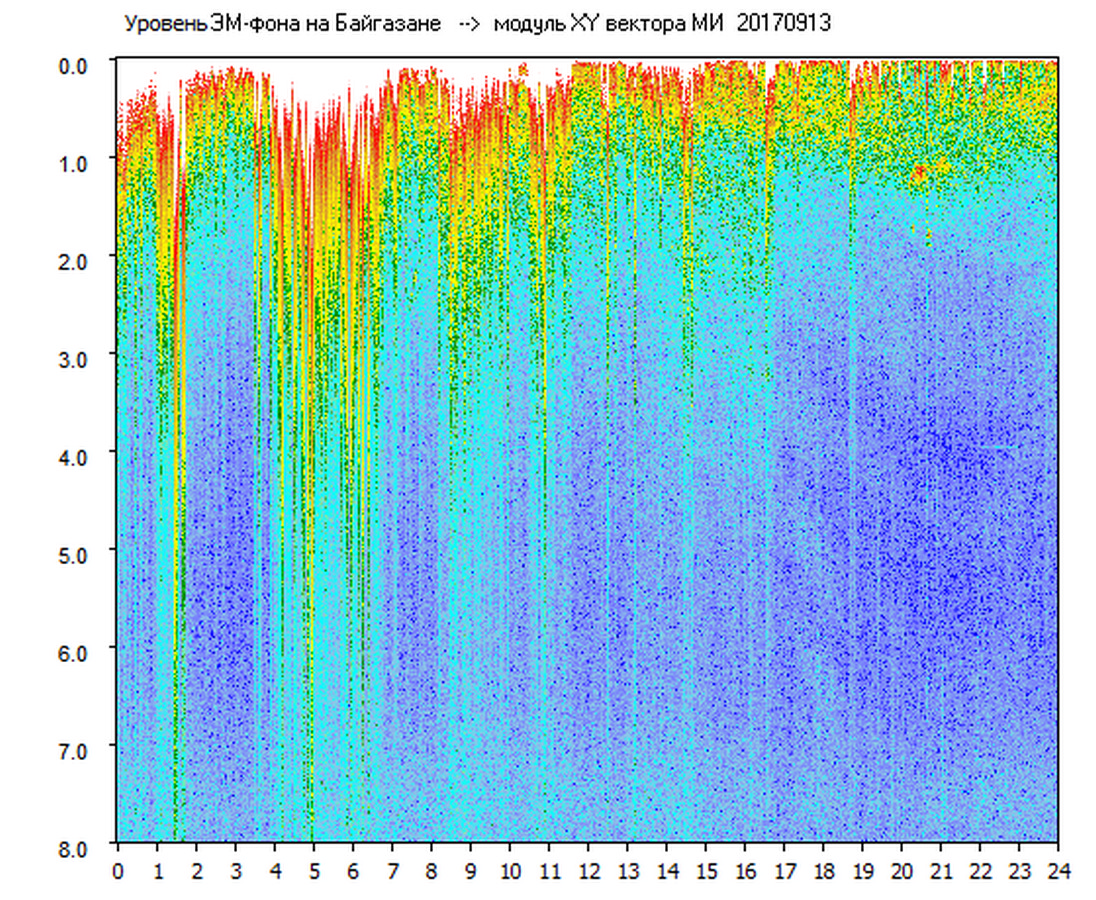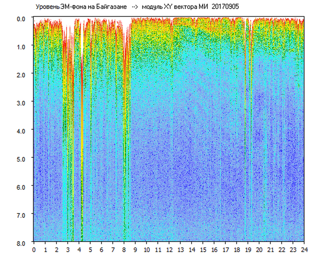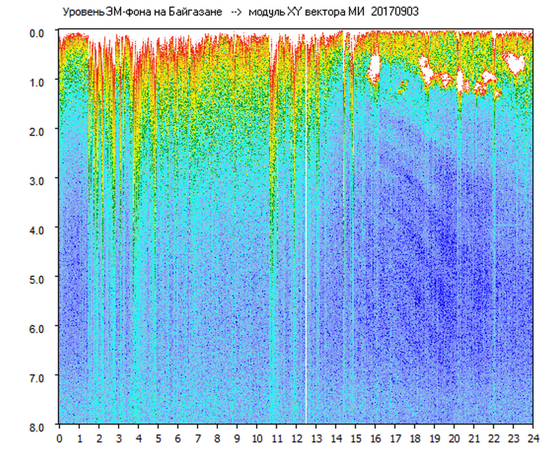 Динамические спектры электромагнитного фона в полосе частот 0 – 8 Гц (Альфвеновские резонансы)