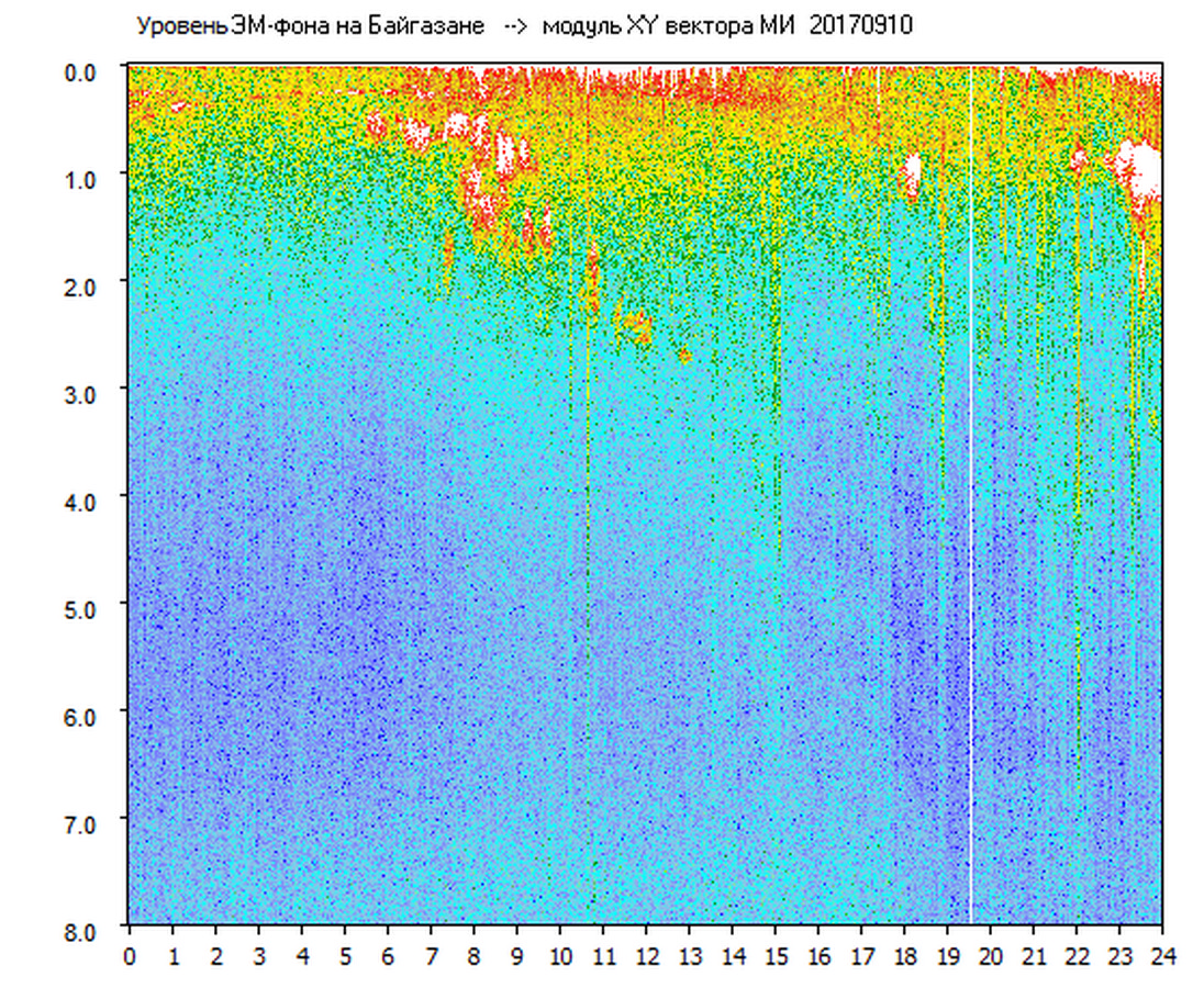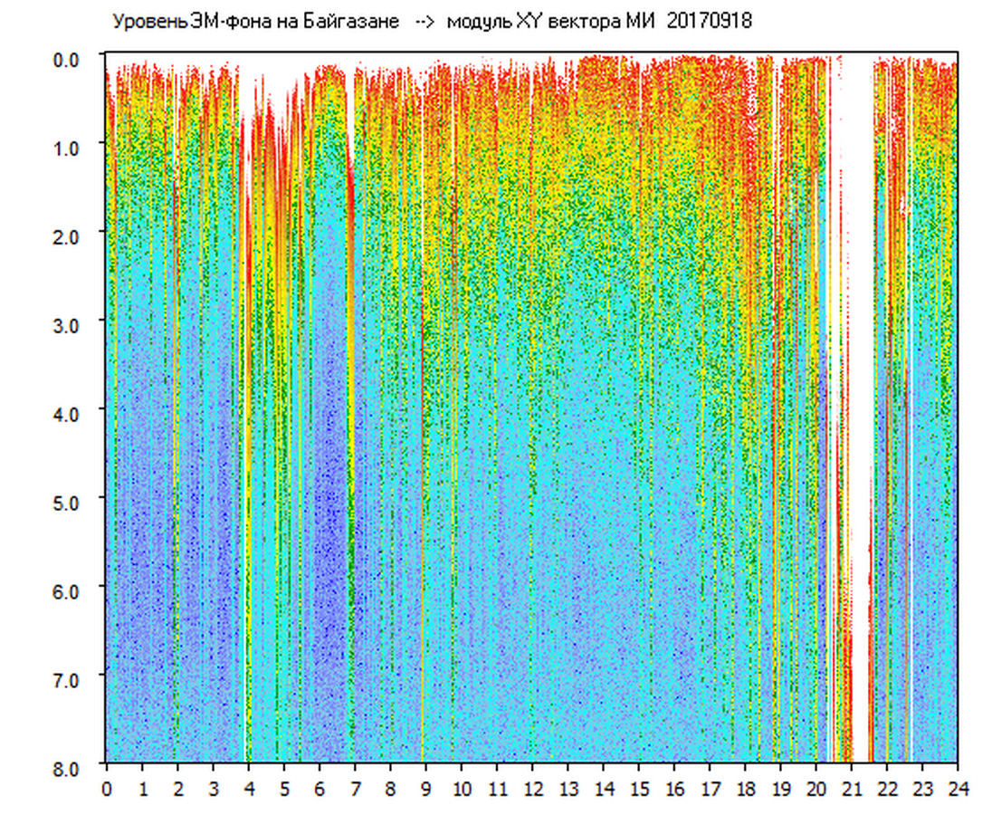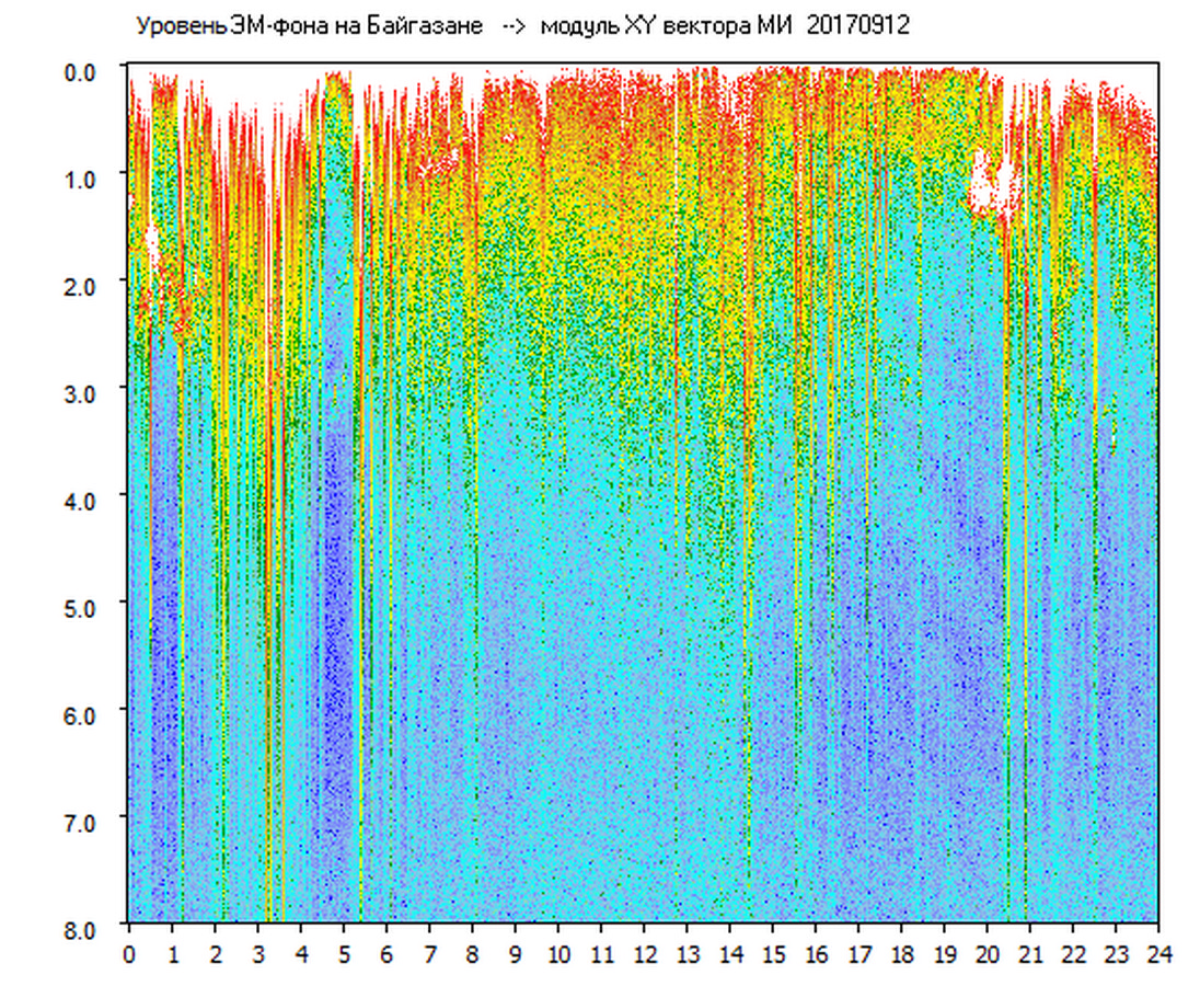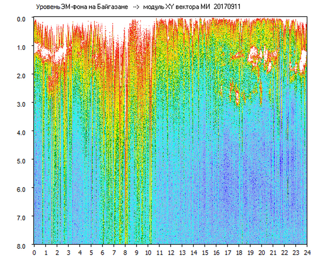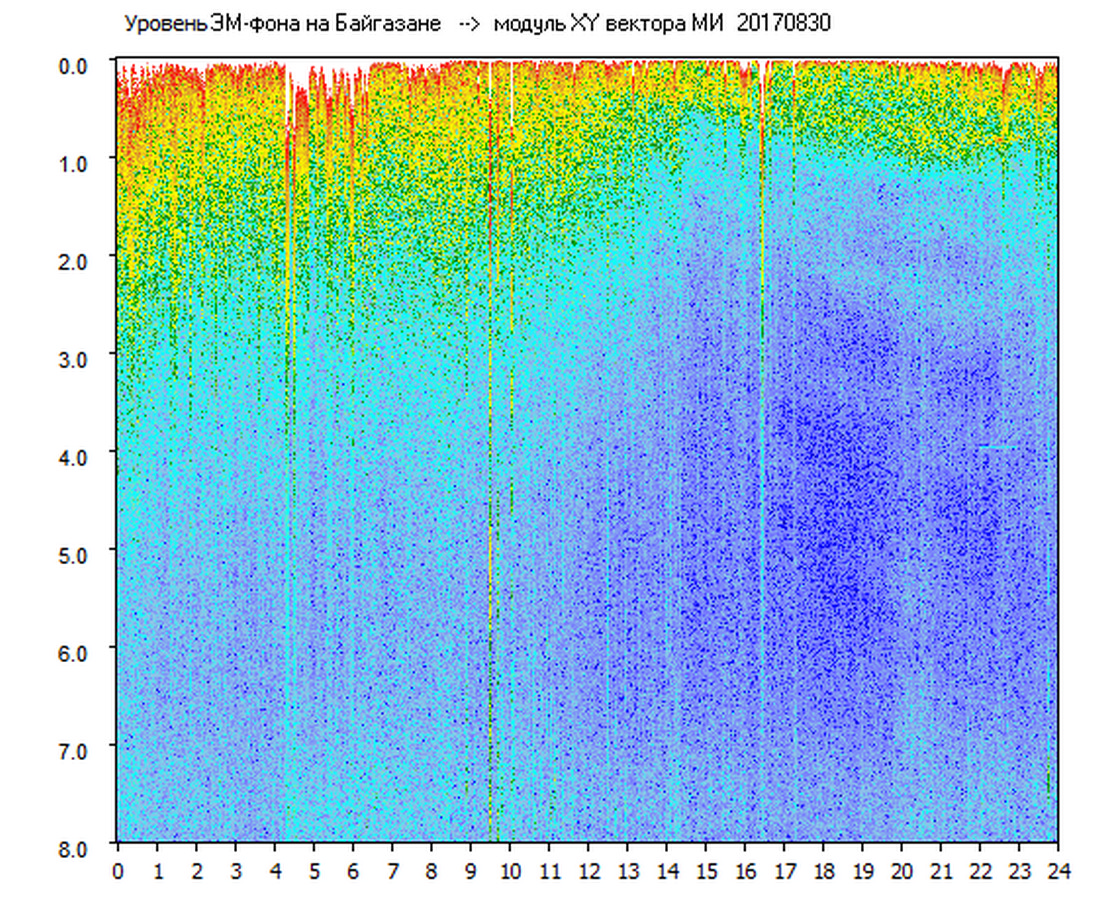 Динамические спектры электромагнитного фона в полосе частот 0 – 8 Гц (Альфвеновские резонансы)