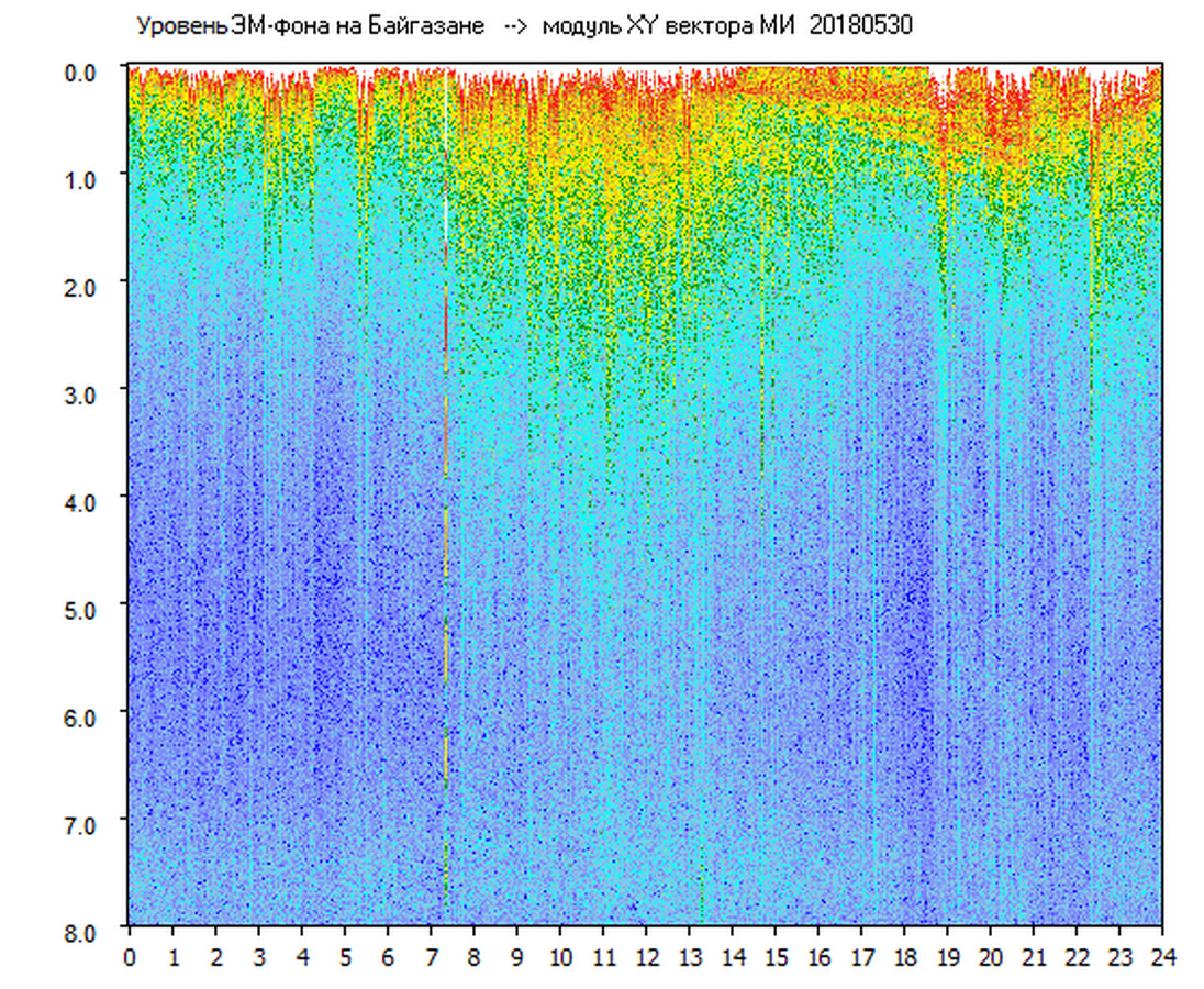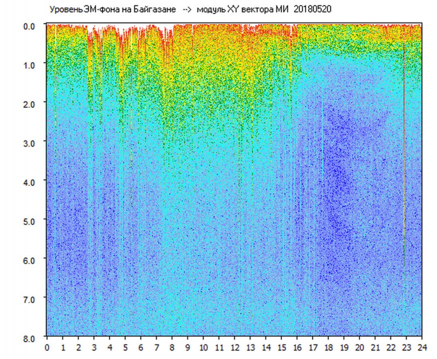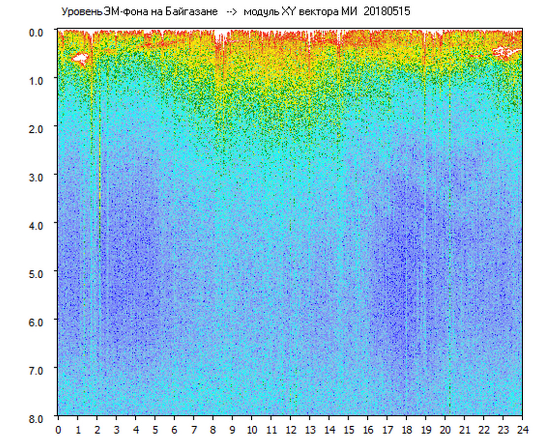 Динамические спектры электромагнитного фона в полосе частот 0 – 8 Гц (Альфвеновские резонансы)
