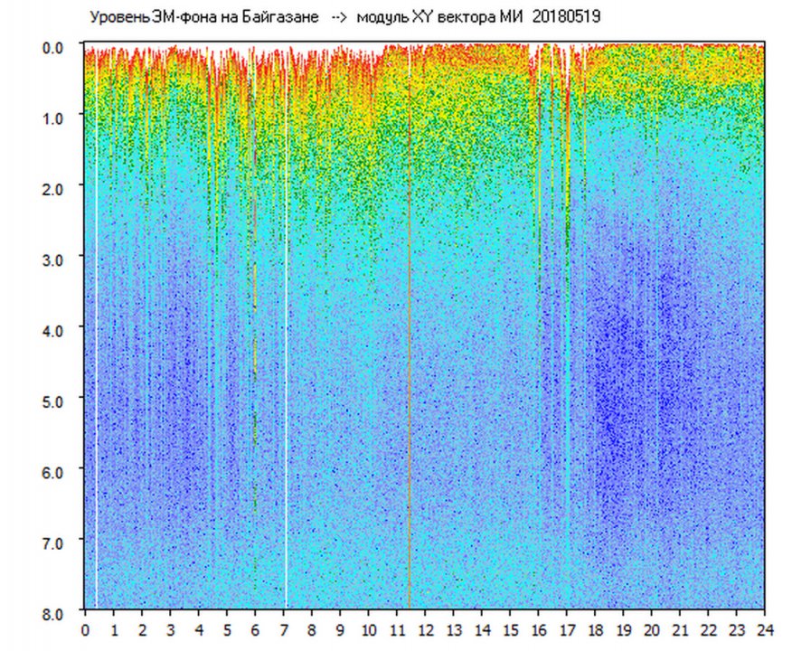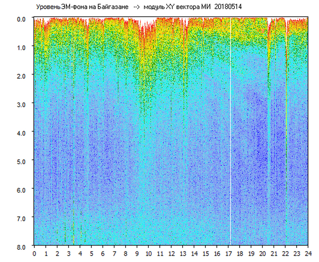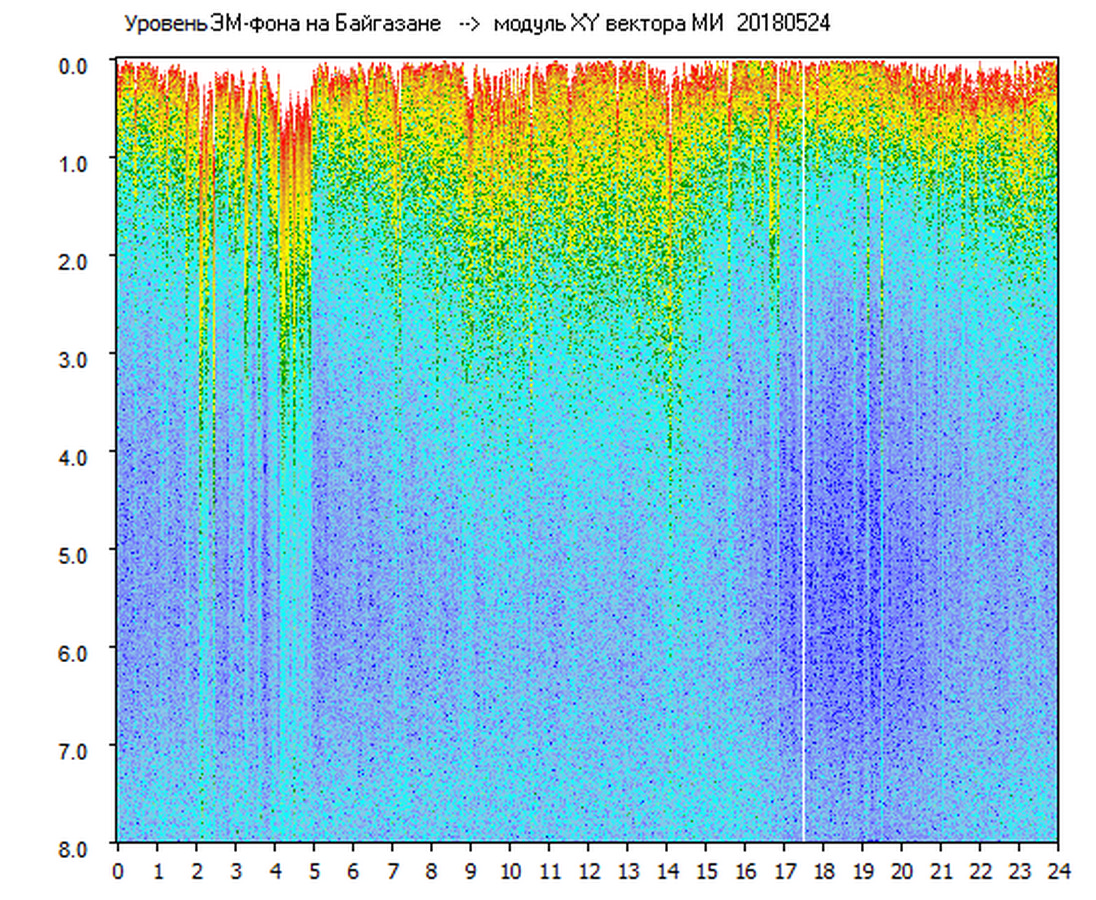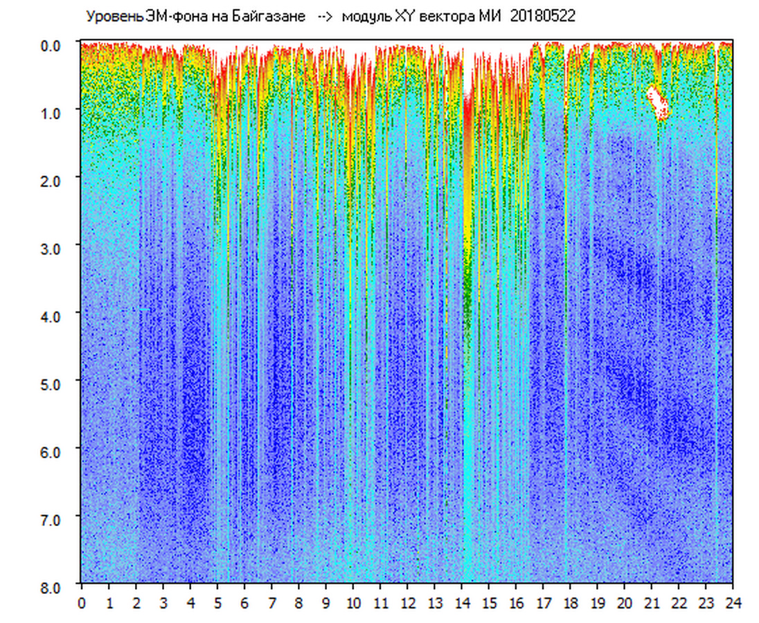 Динамические спектры электромагнитного фона в полосе частот 0 – 8 Гц (Альфвеновские резонансы)