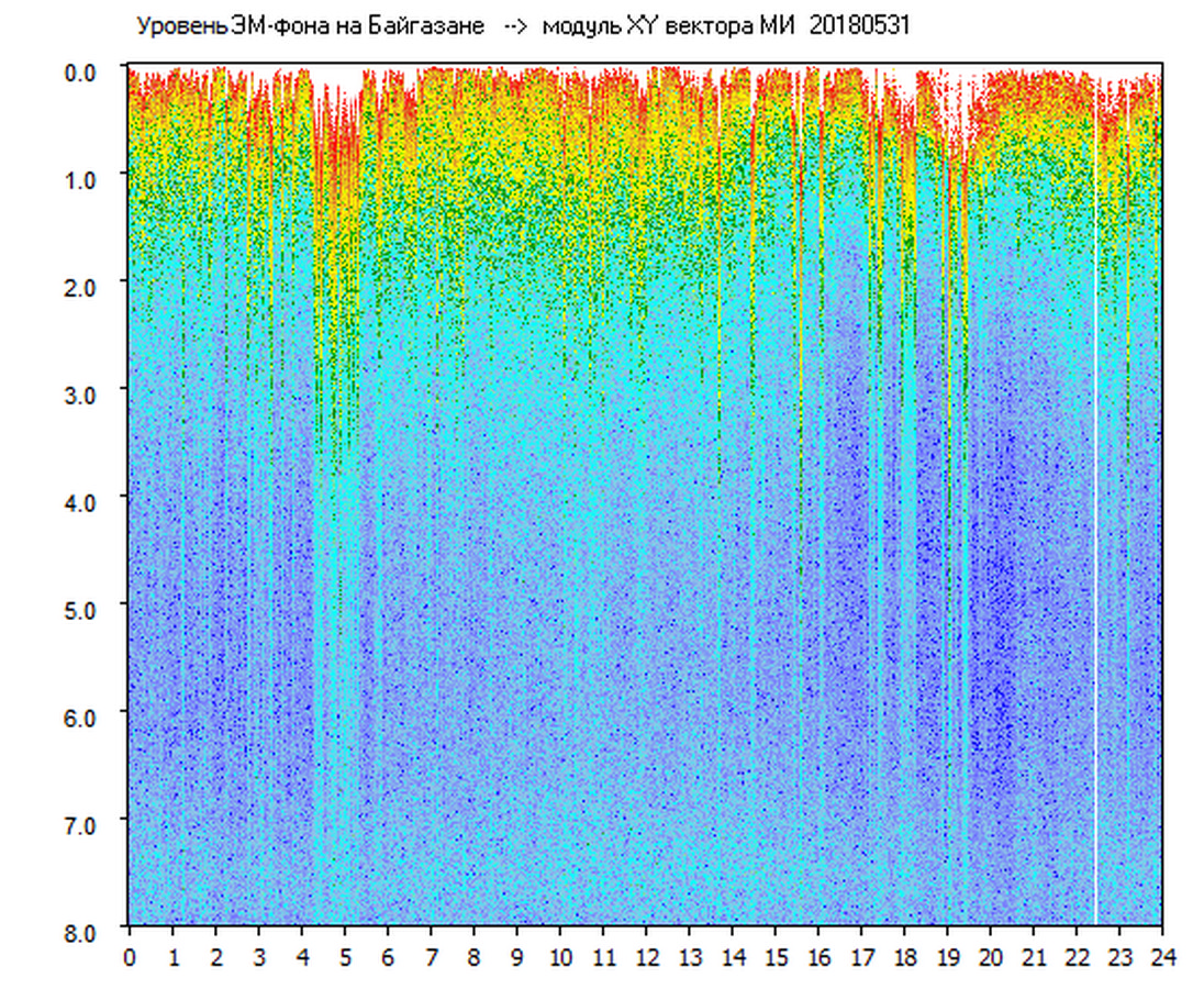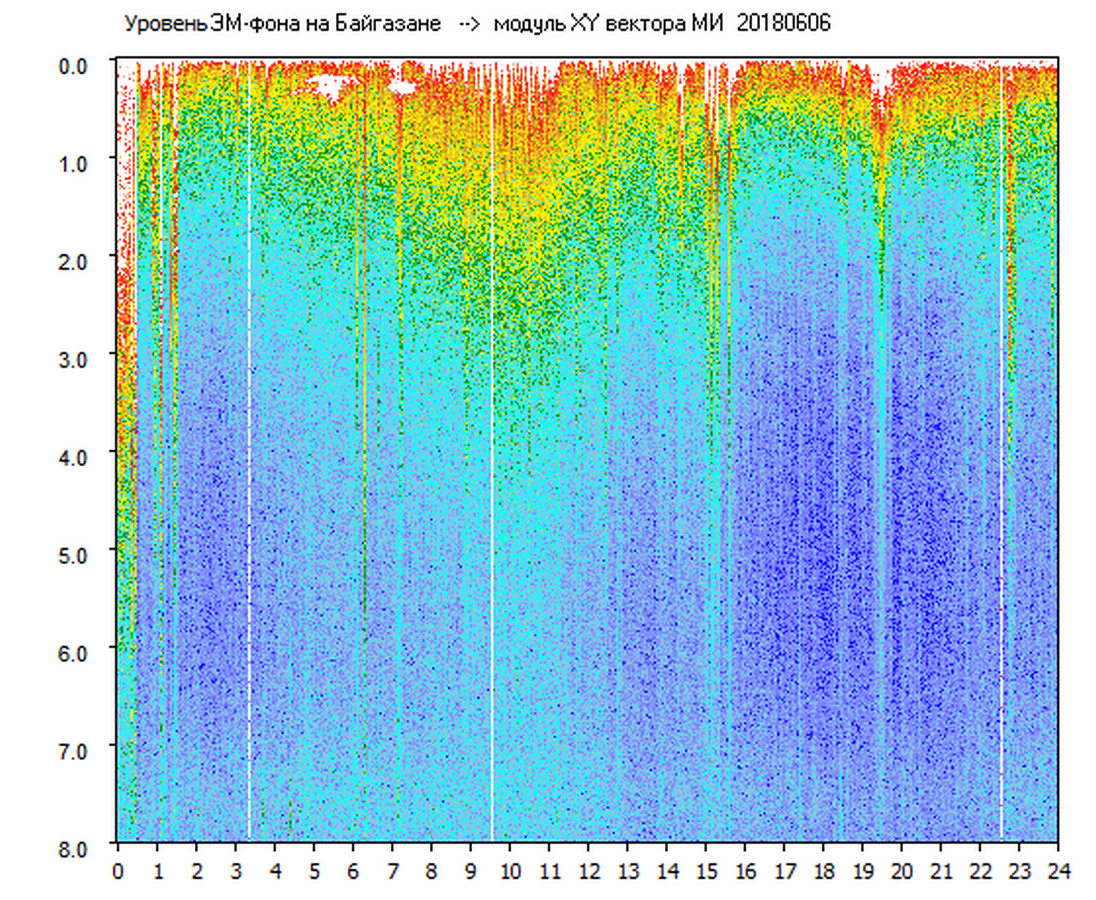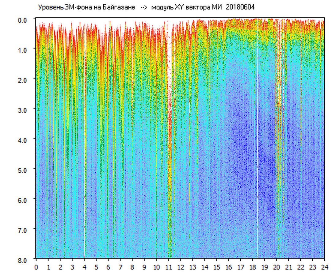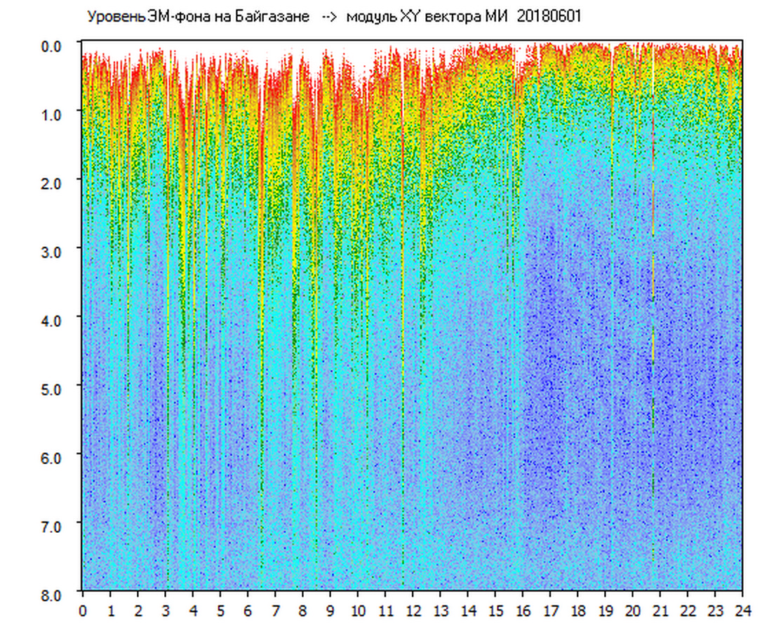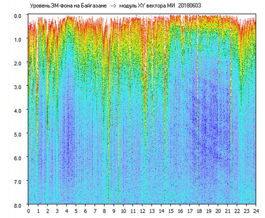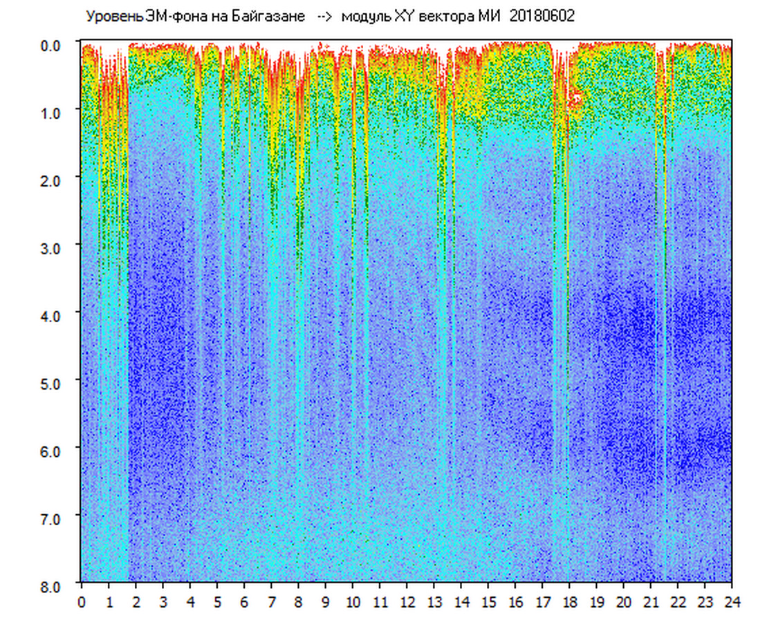 Динамические спектры электромагнитного фона в полосе частот 0 – 8 Гц (Альфвеновские резонансы)