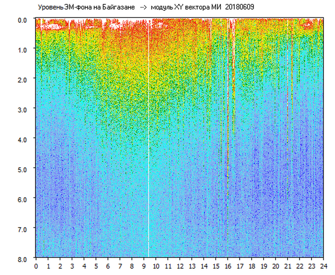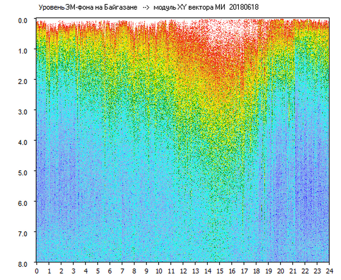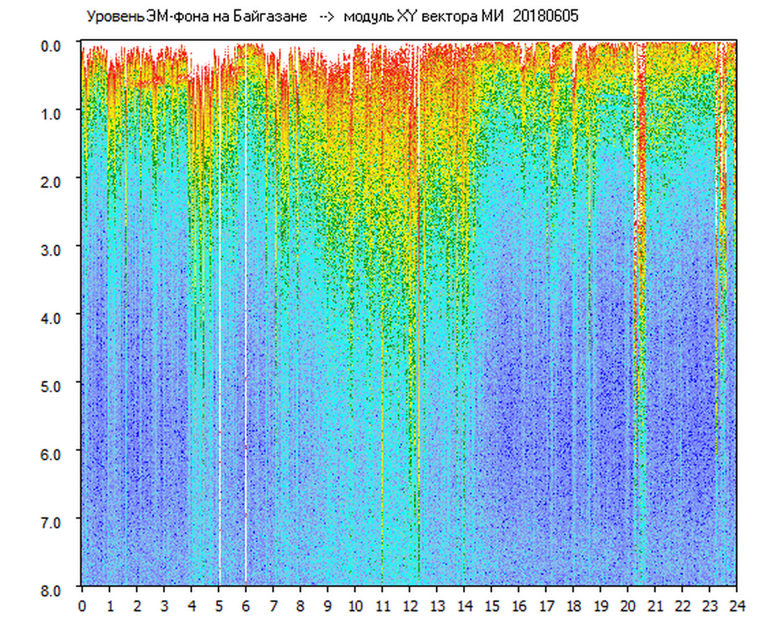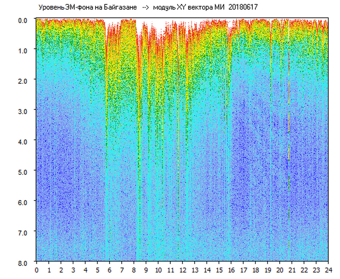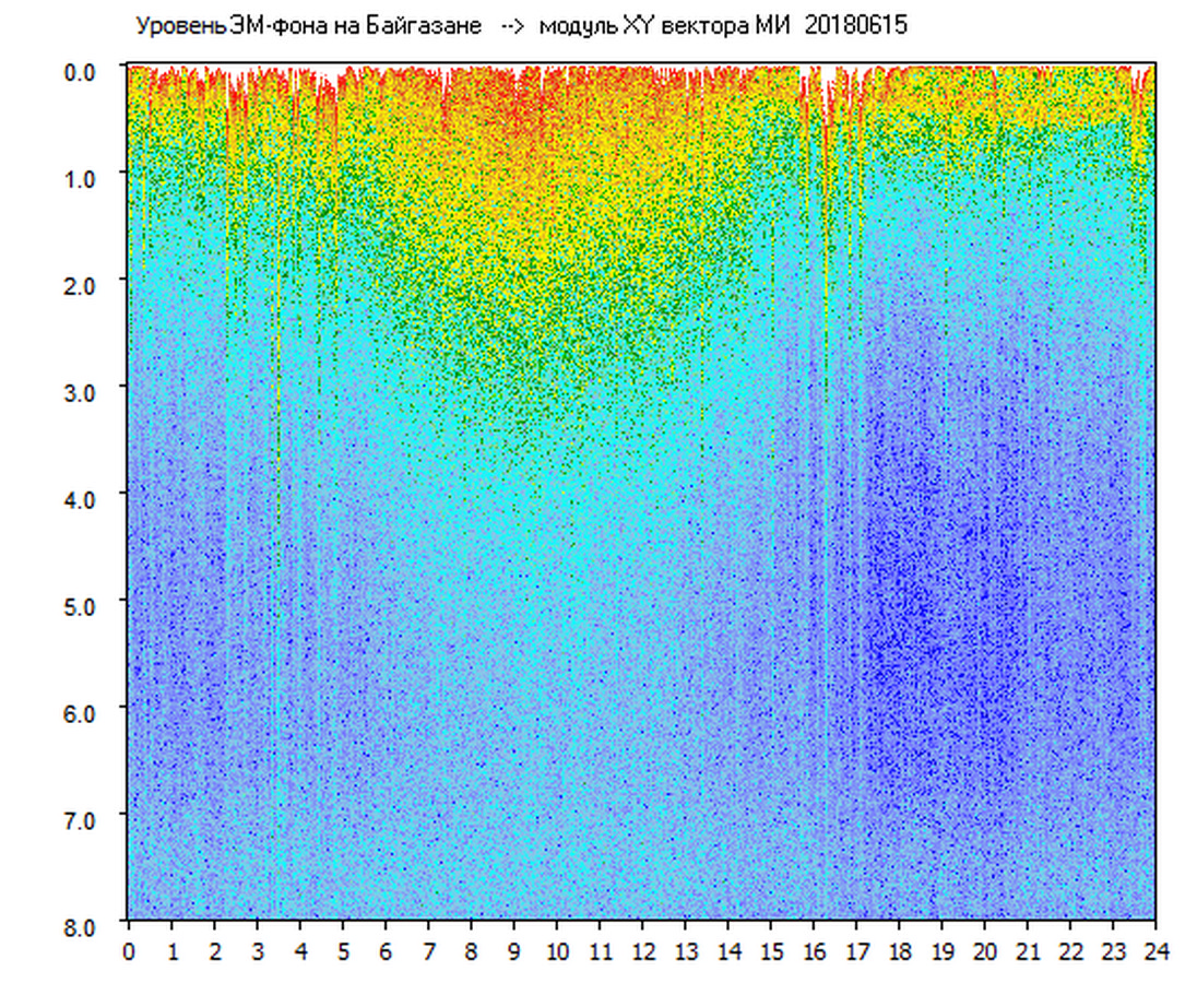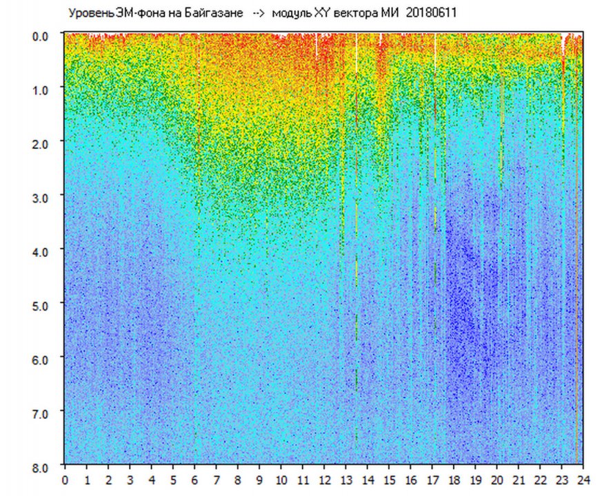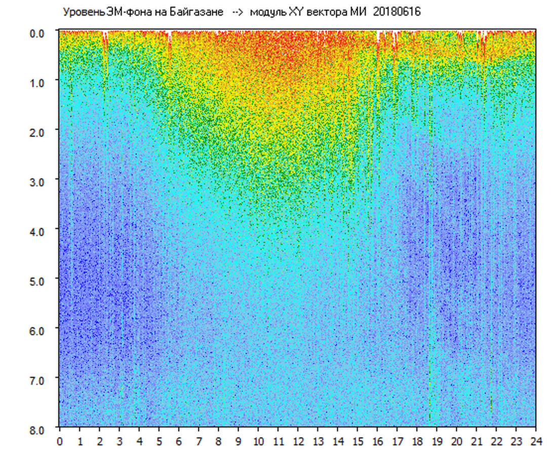 Динамические спектры электромагнитного фона в полосе частот 0 – 8 Гц (Альфвеновские резонансы)