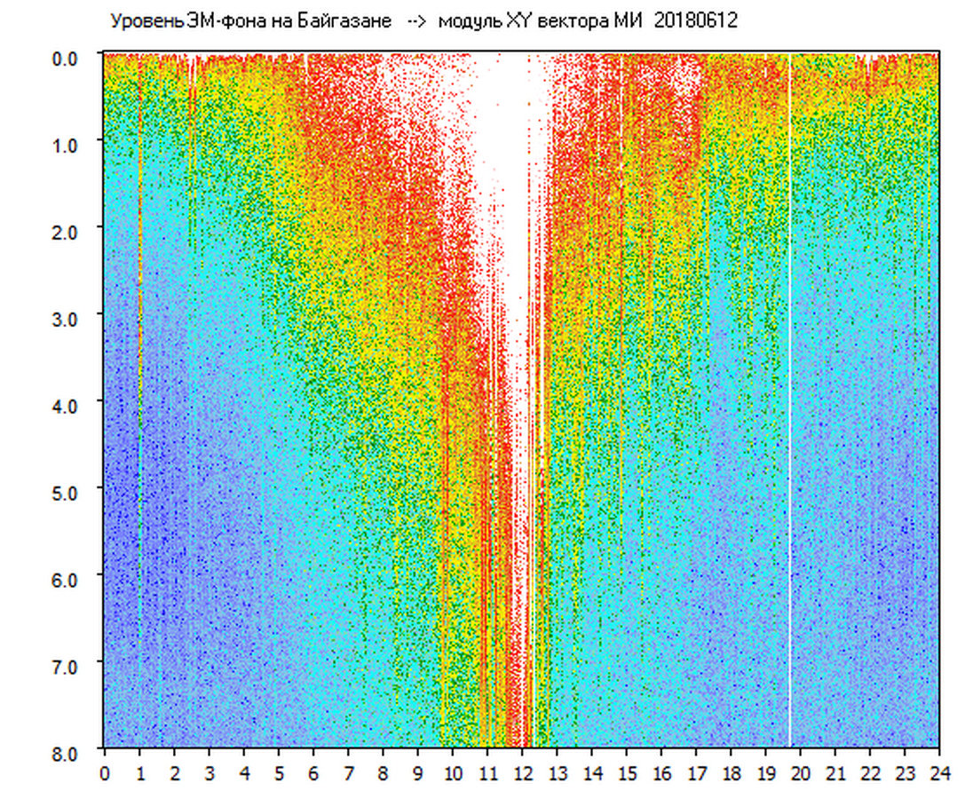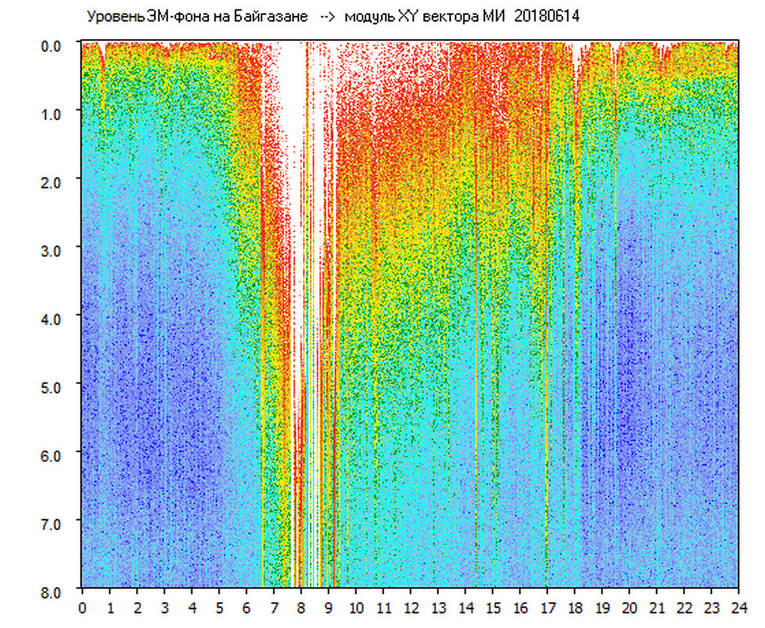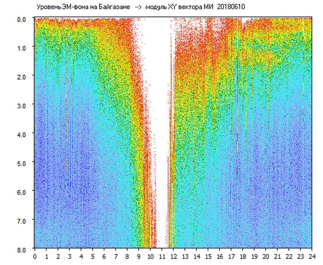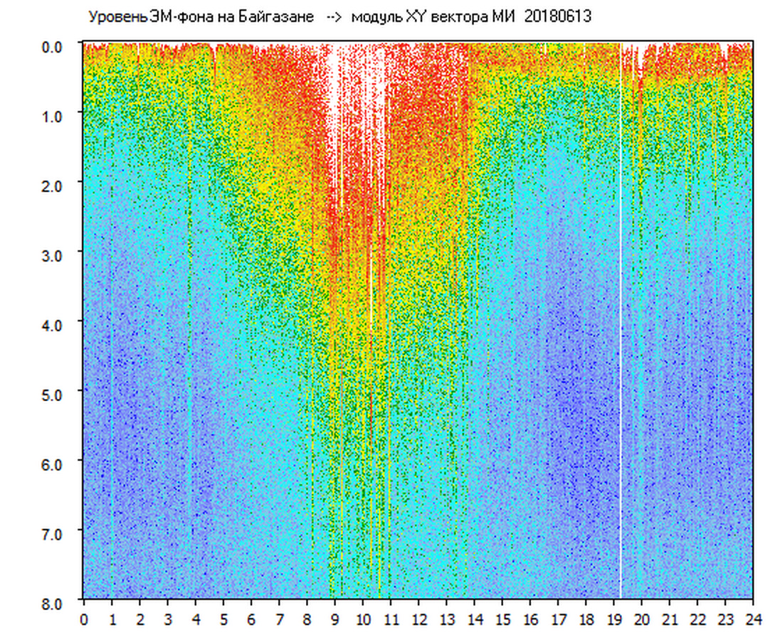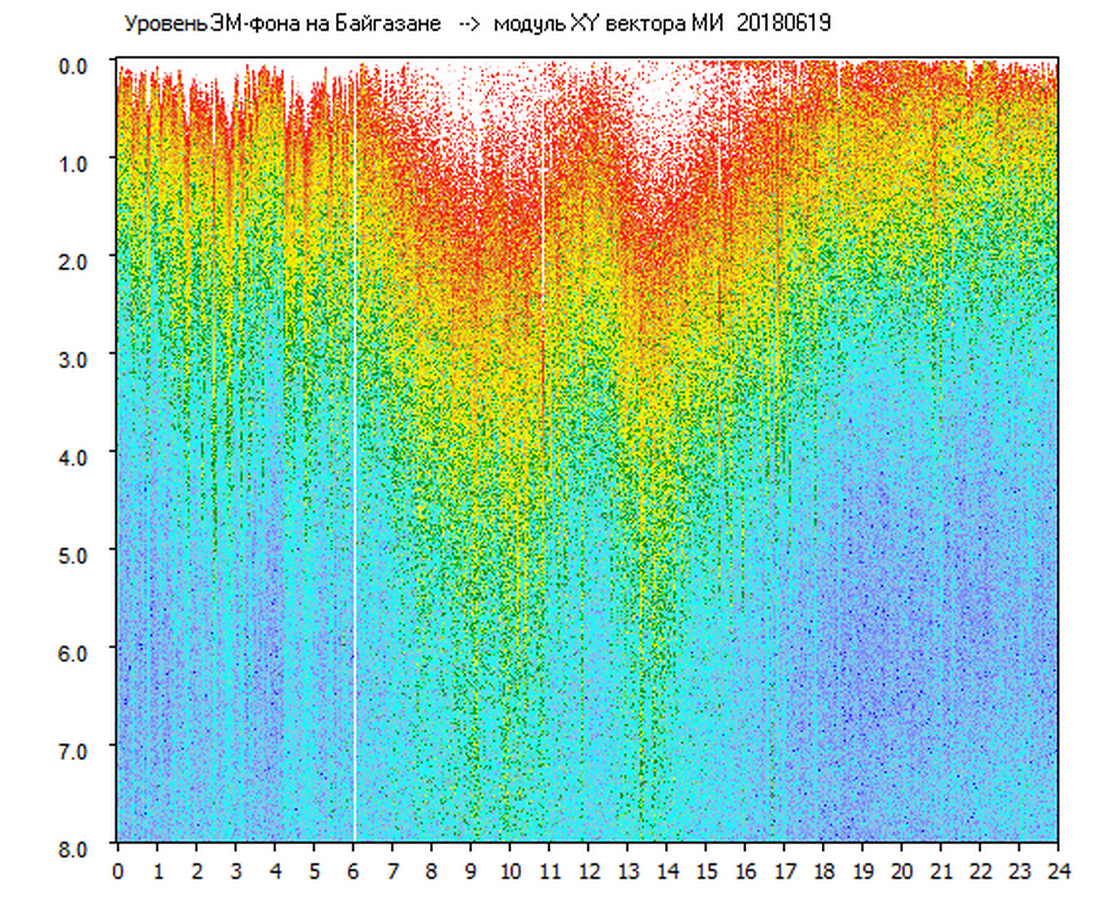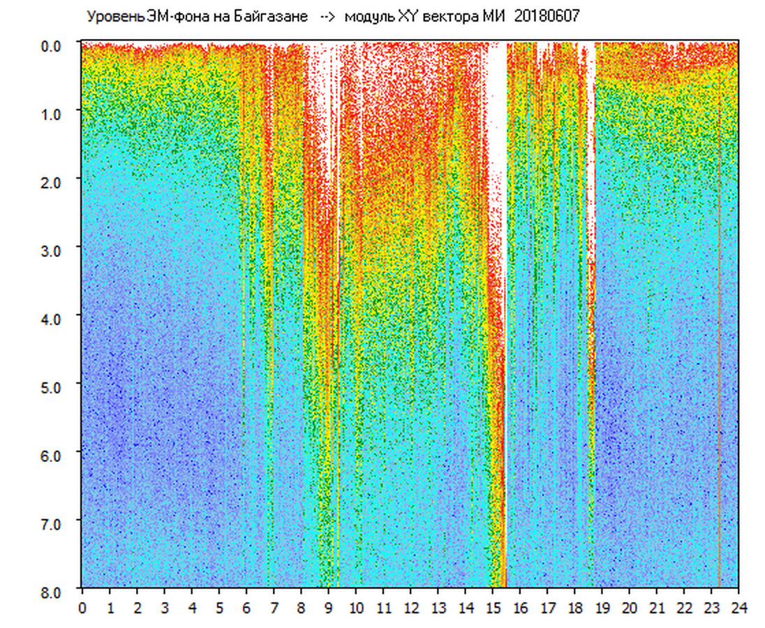 Динамические спектры электромагнитного фона в полосе частот 0 – 8 Гц (Альфвеновские резонансы)