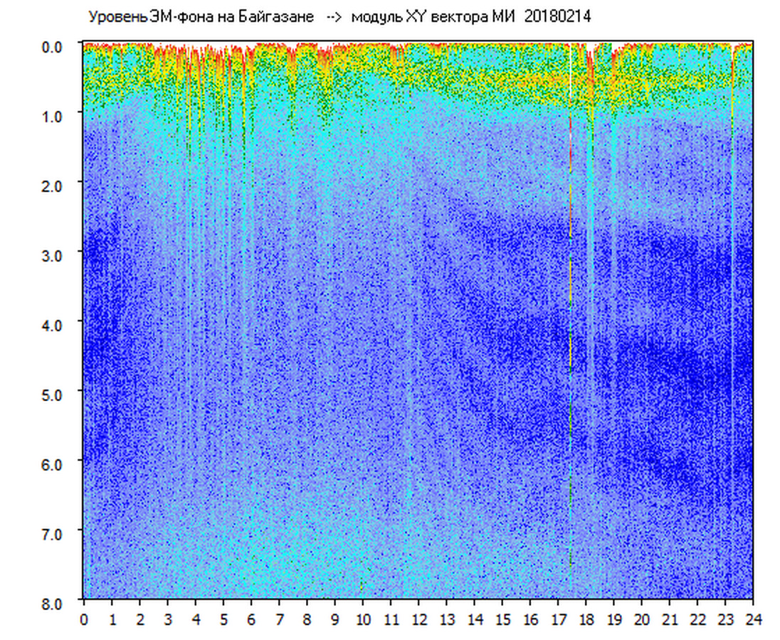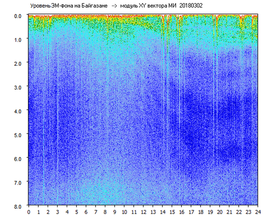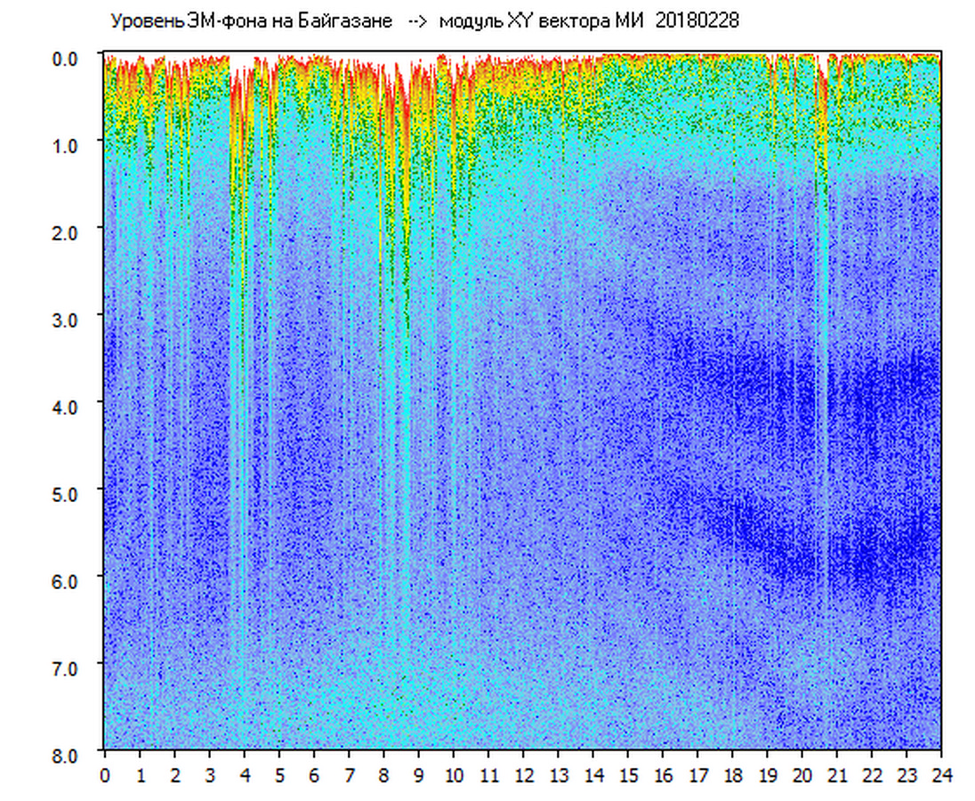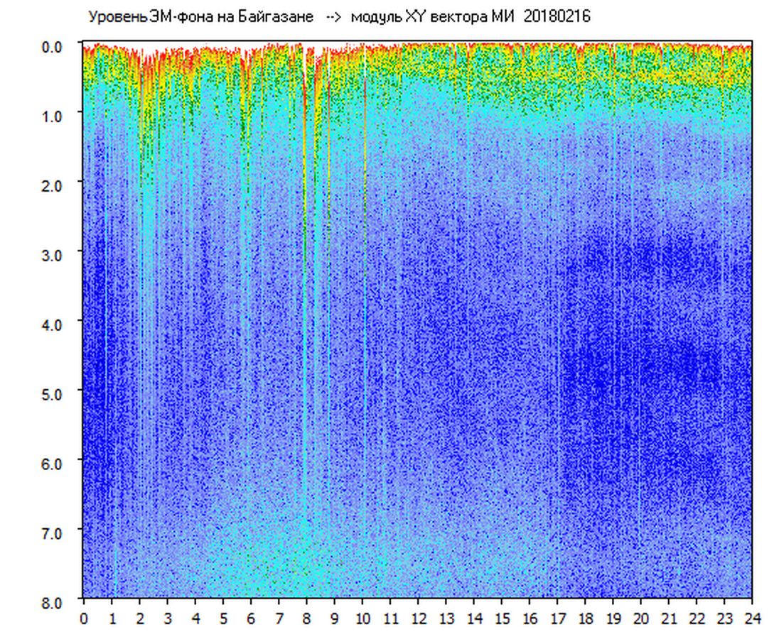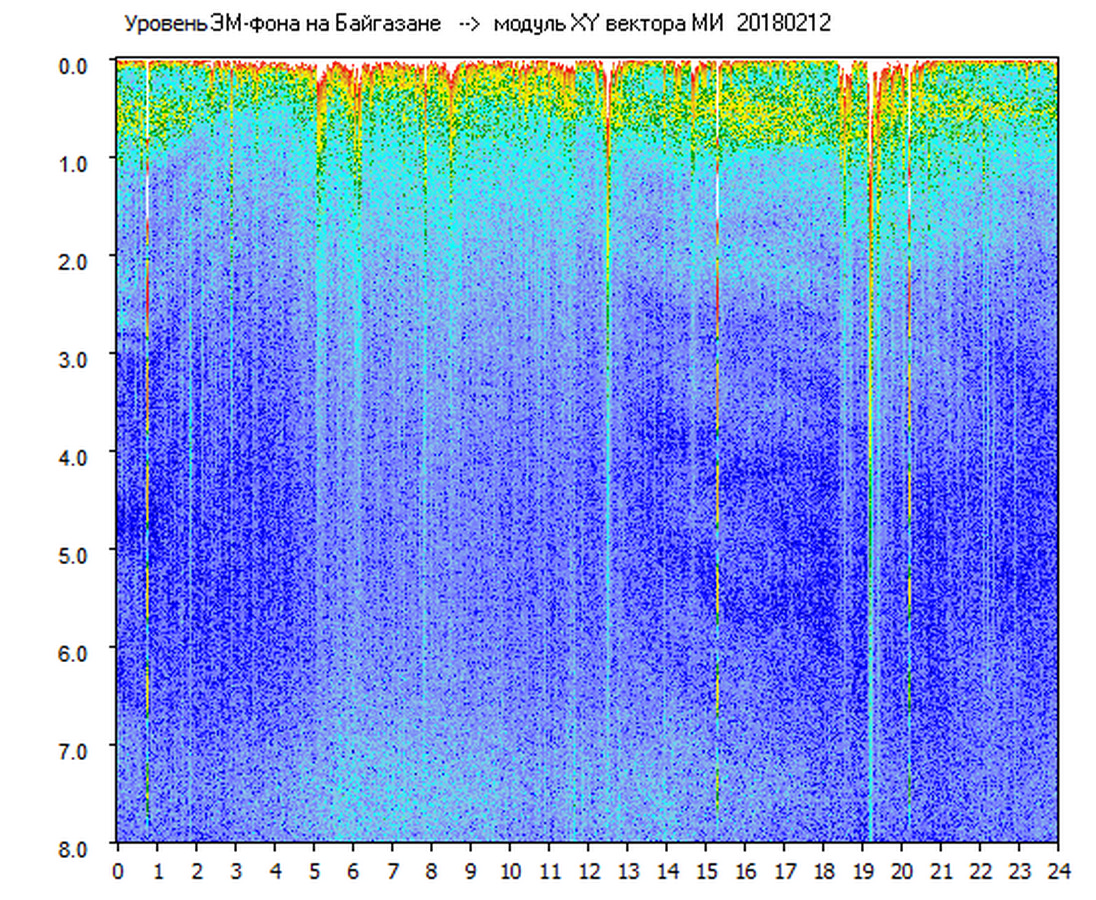 Динамические спектры электромагнитного фона в полосе частот 0 – 8 Гц (Альфвеновские резонансы)
