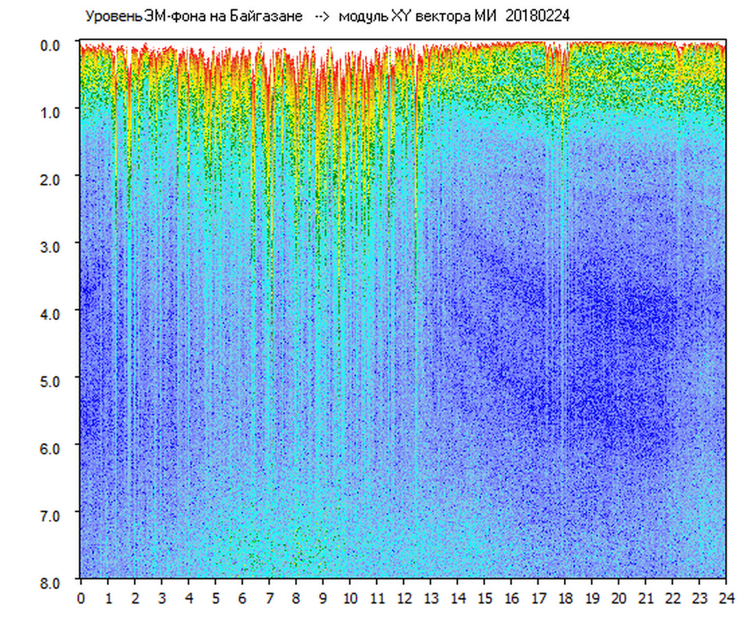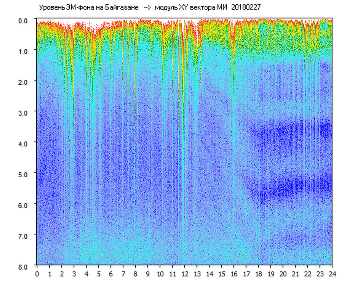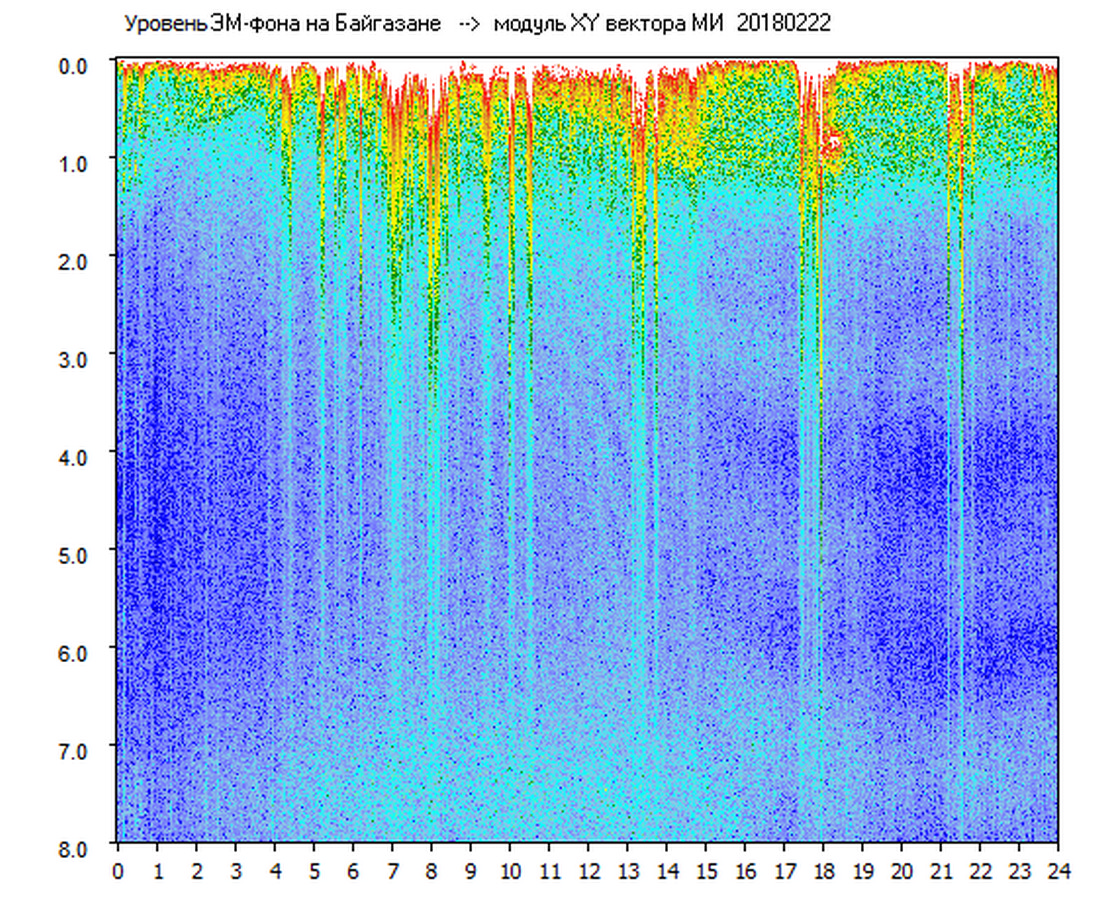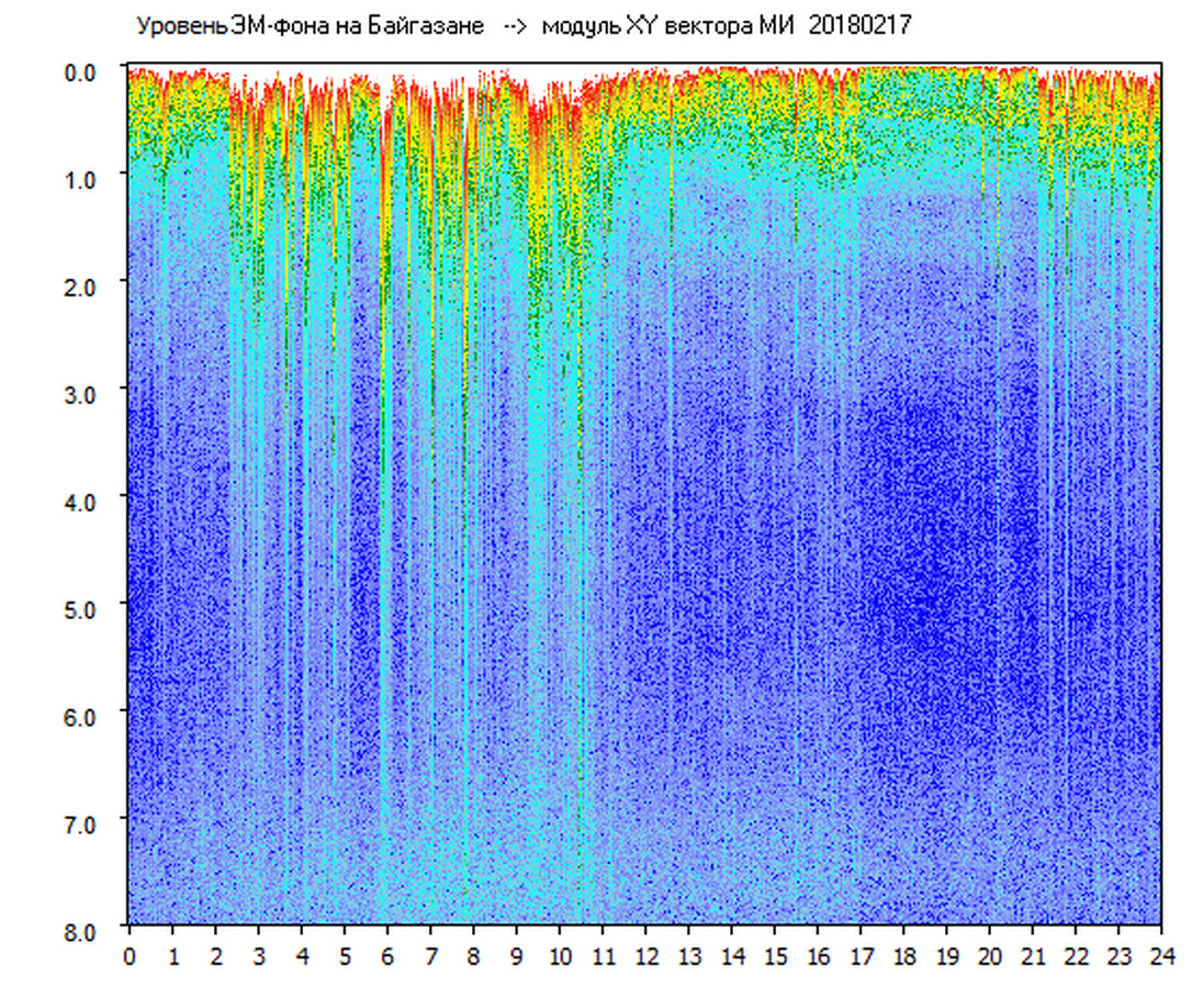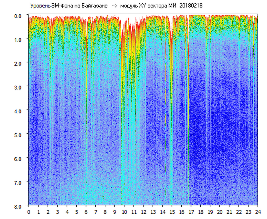 Динамические спектры электромагнитного фона в полосе частот 0 – 8 Гц (Альфвеновские резонансы)