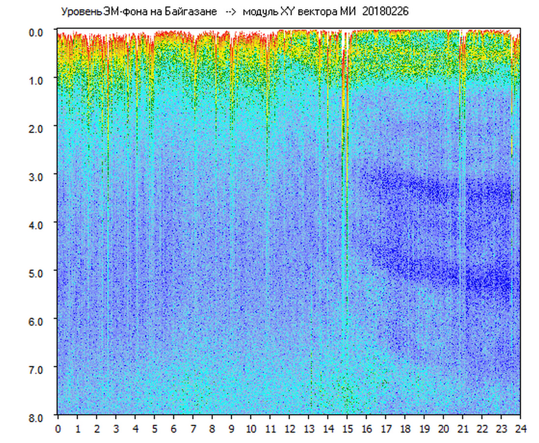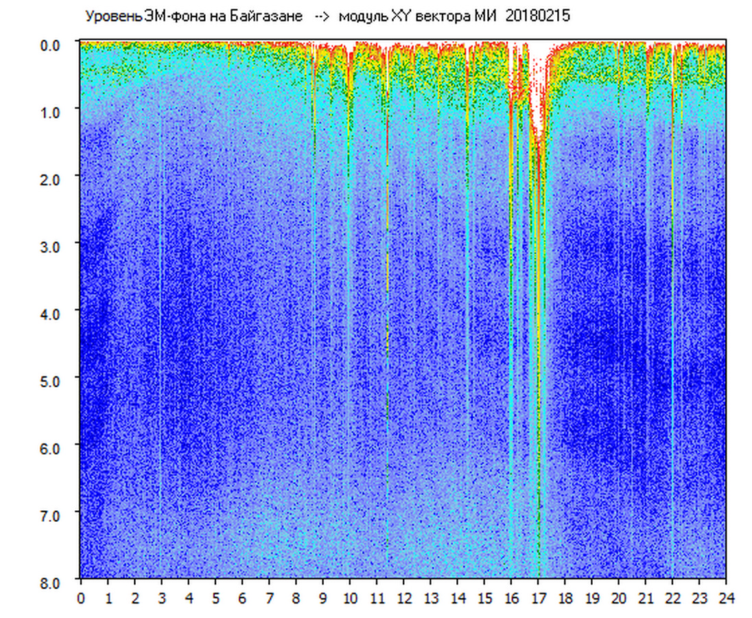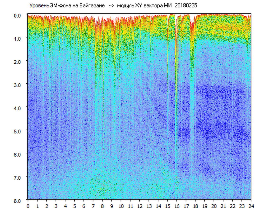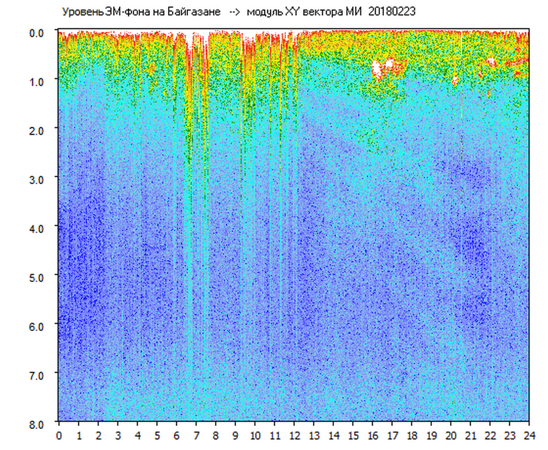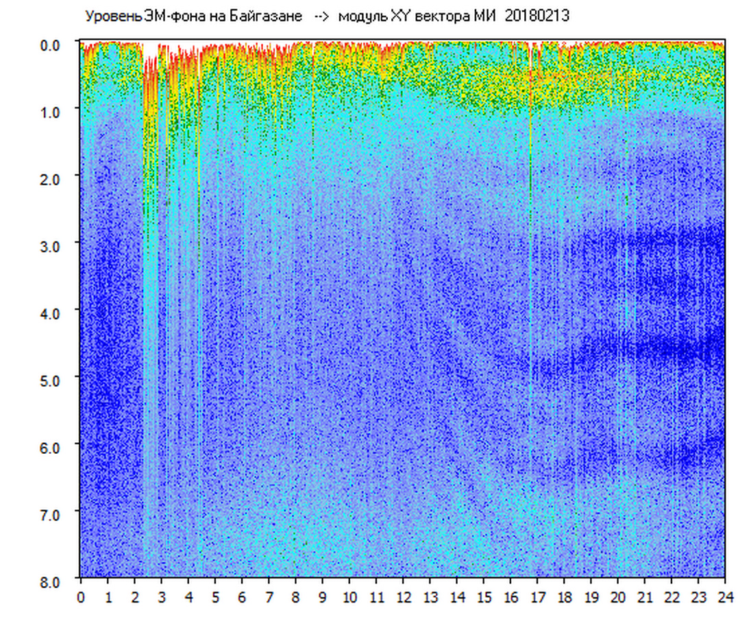 Динамические спектры электромагнитного фона в полосе частот 0 – 8 Гц (Альфвеновские резонансы)