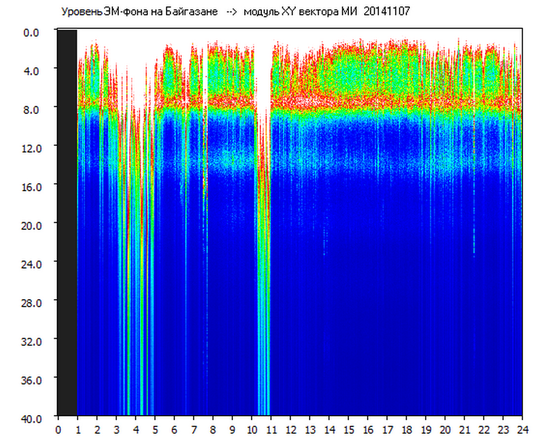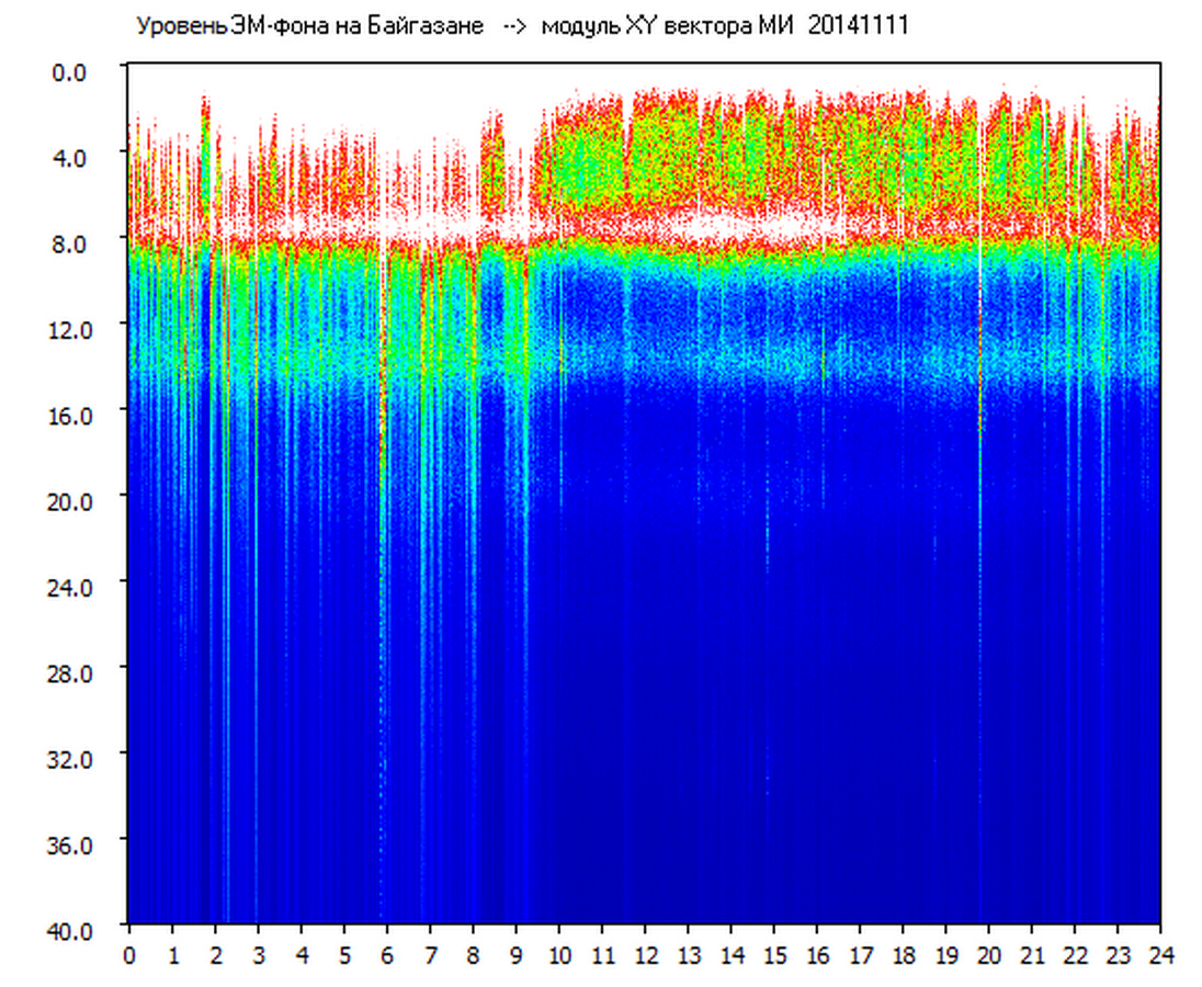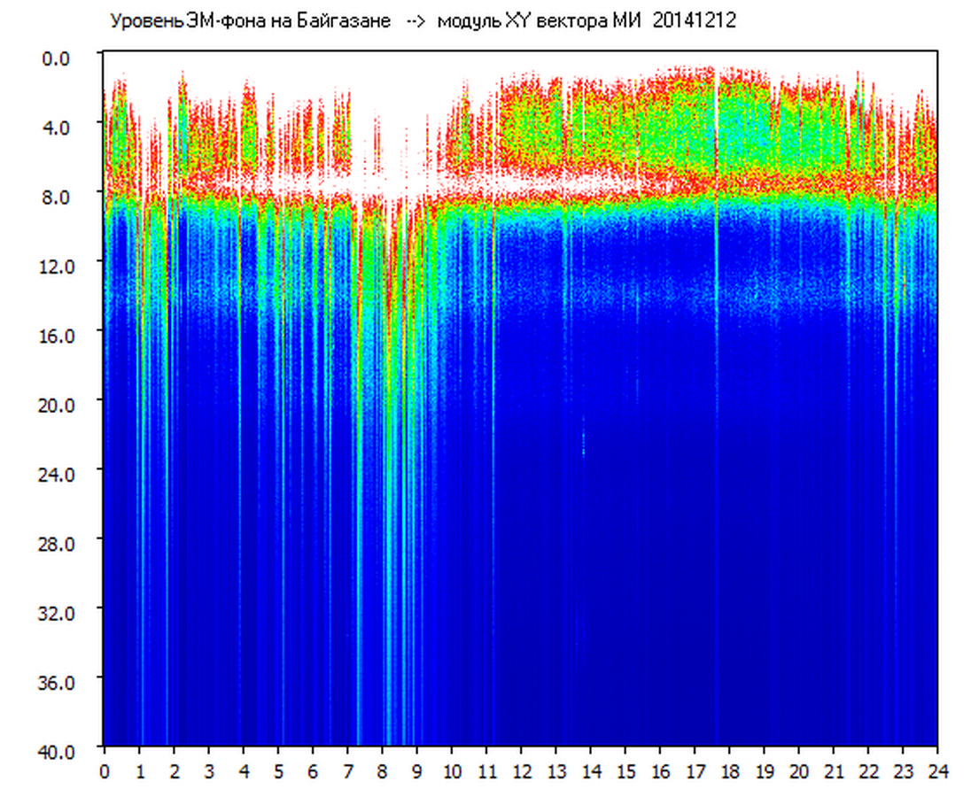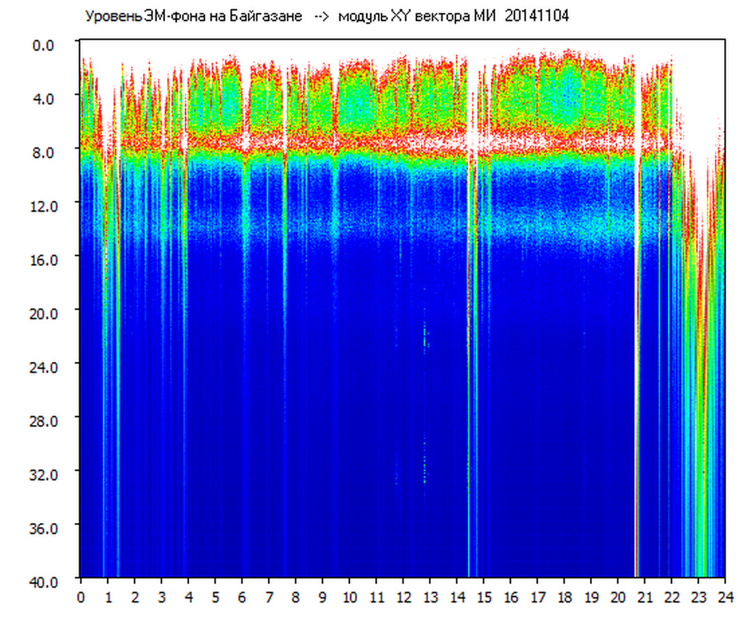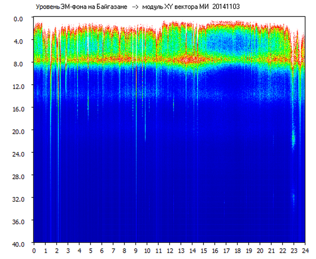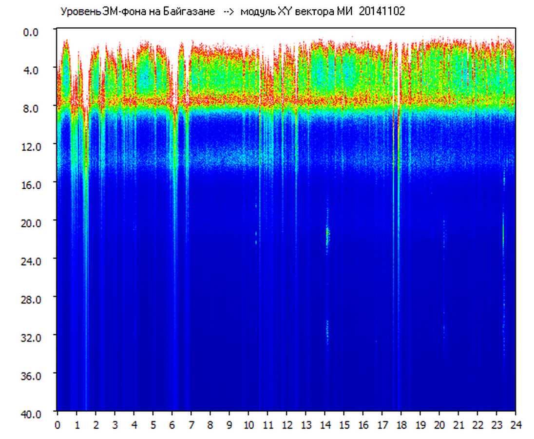 Динамические спектры электромагнитного фона в полосе частот 0 – 40 Гц (Шумановские резонансы)