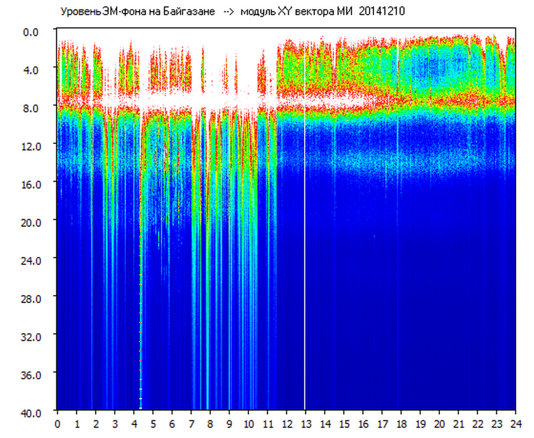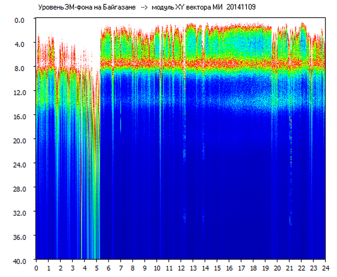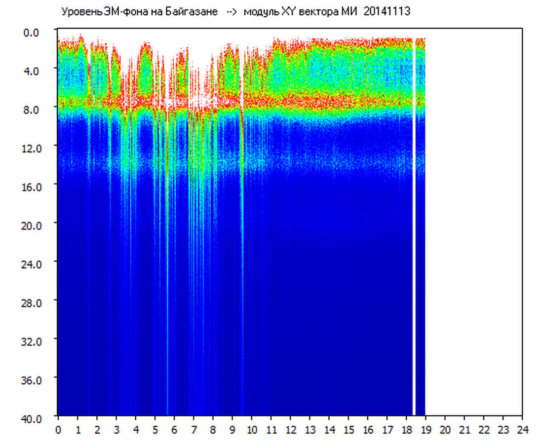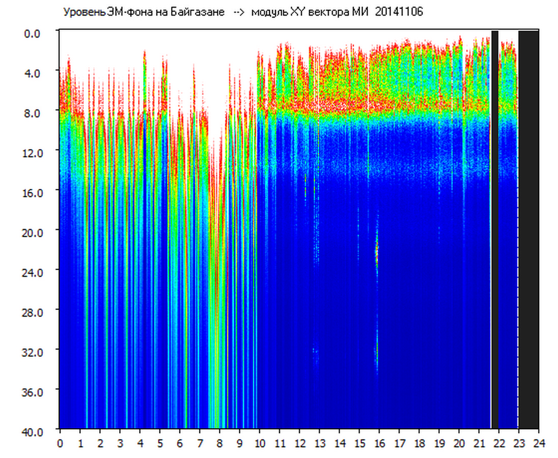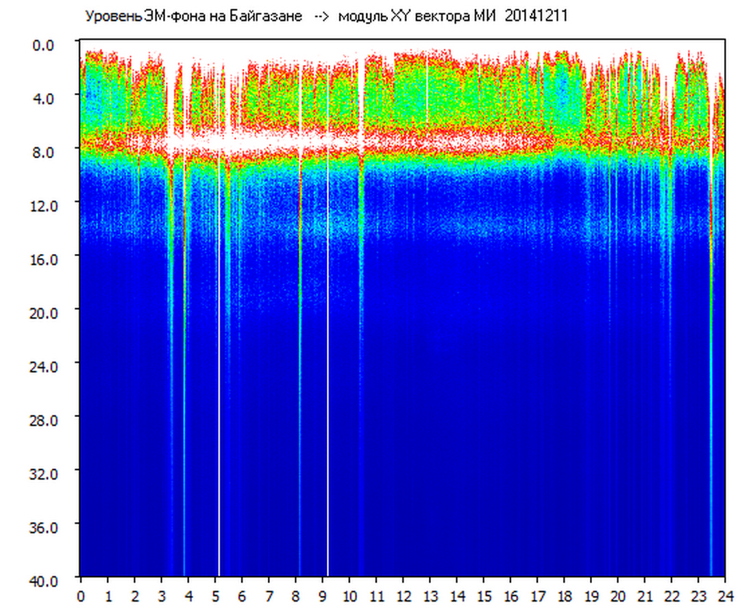 Динамические спектры электромагнитного фона в полосе частот 0 – 40 Гц (Шумановские резонансы)