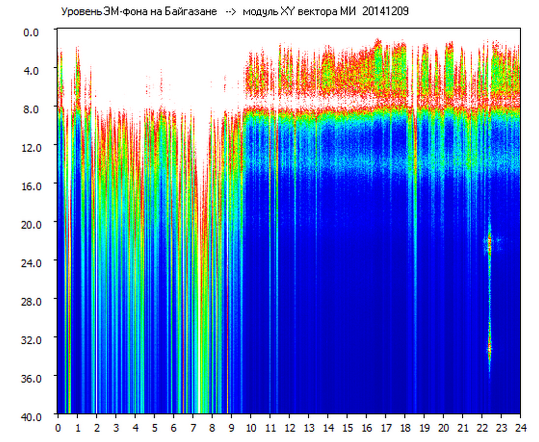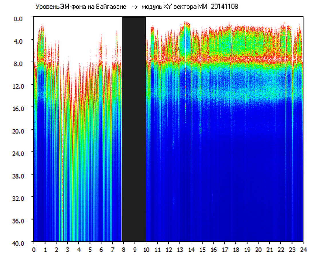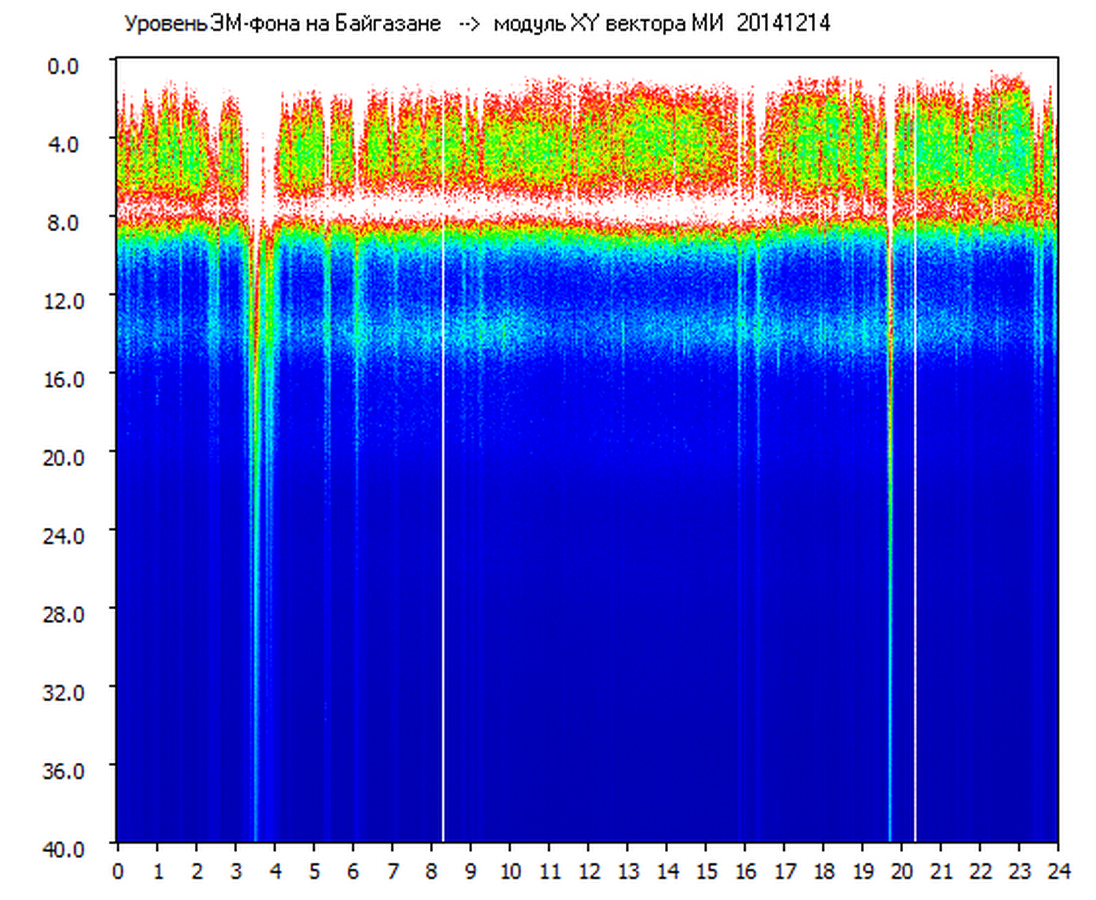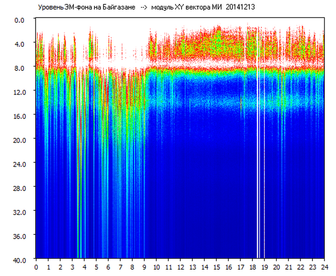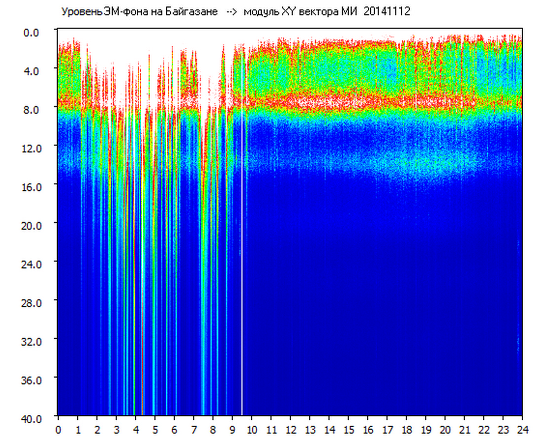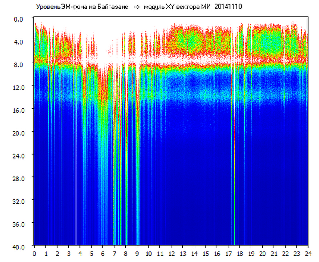 Динамические спектры электромагнитного фона в полосе частот 0 – 40 Гц (Шумановские резонансы)