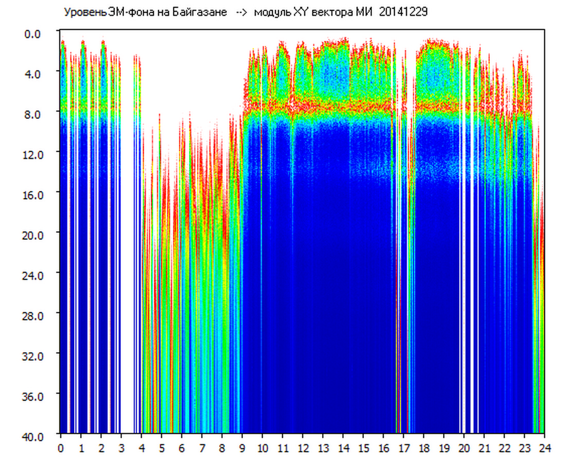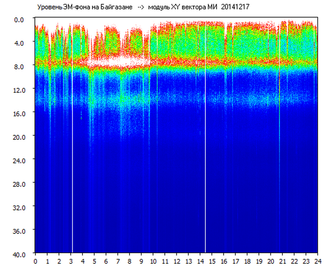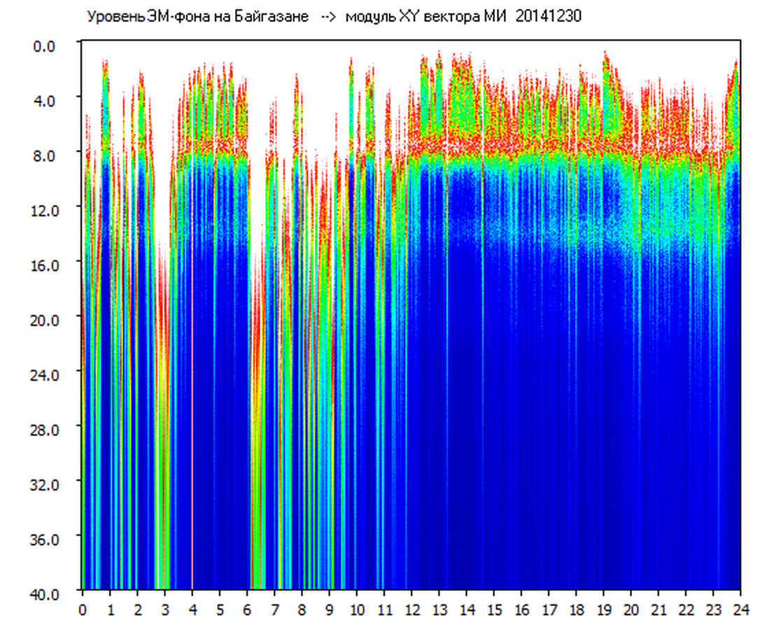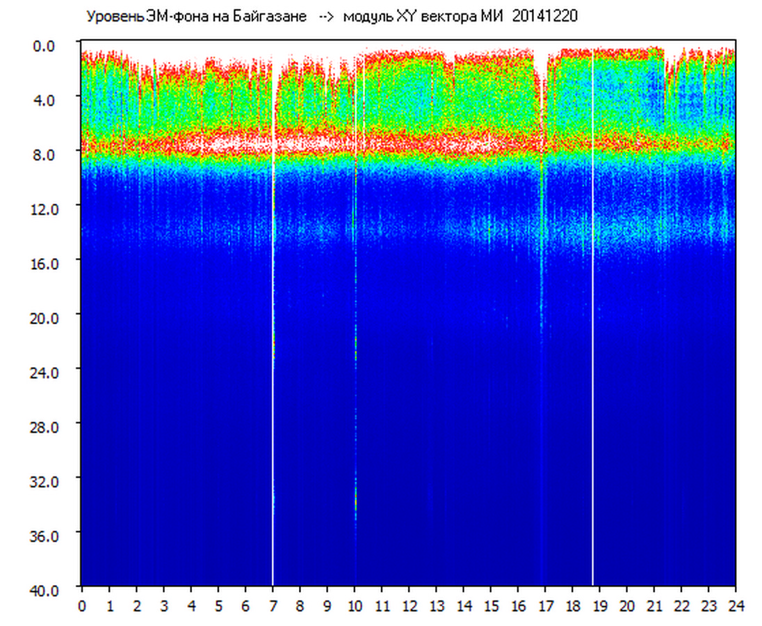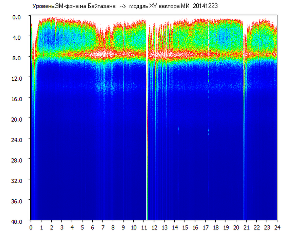 Динамические спектры электромагнитного фона в полосе частот 0 – 40 Гц (Шумановские резонансы)