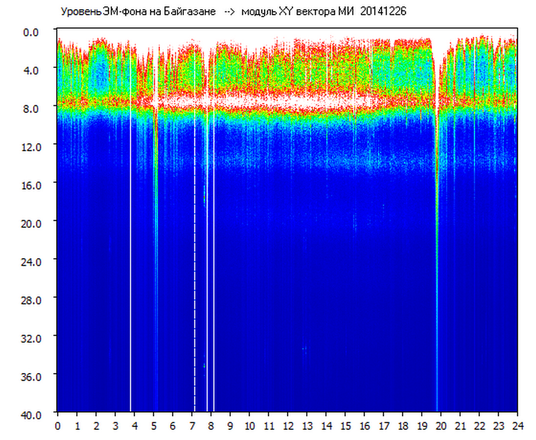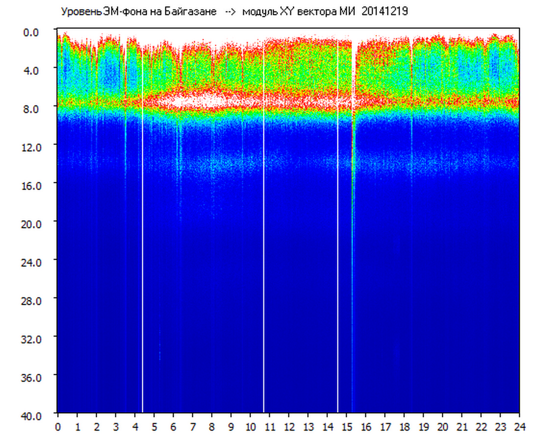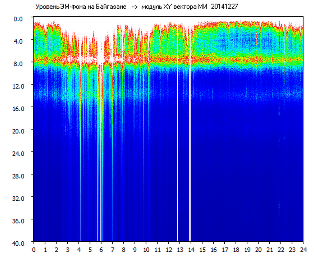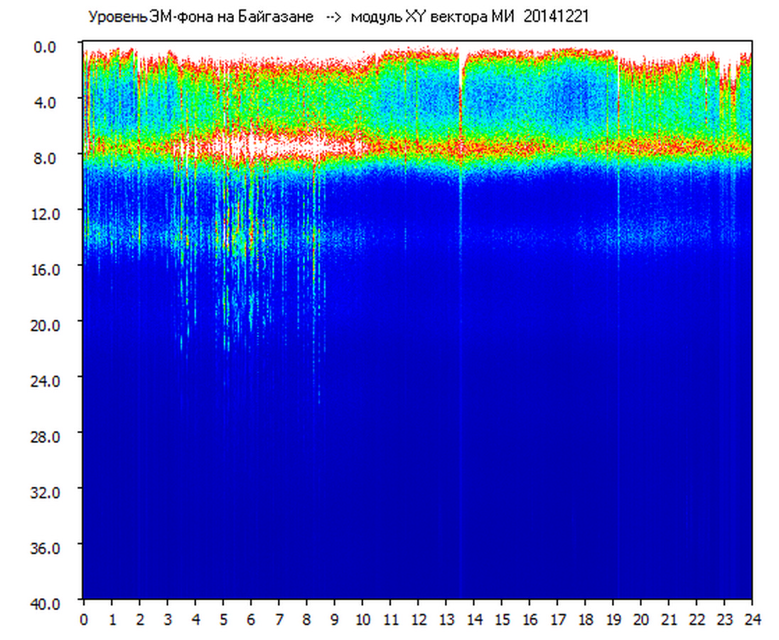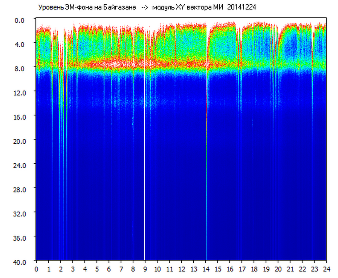 Динамические спектры электромагнитного фона в полосе частот 0 – 40 Гц (Шумановские резонансы)
