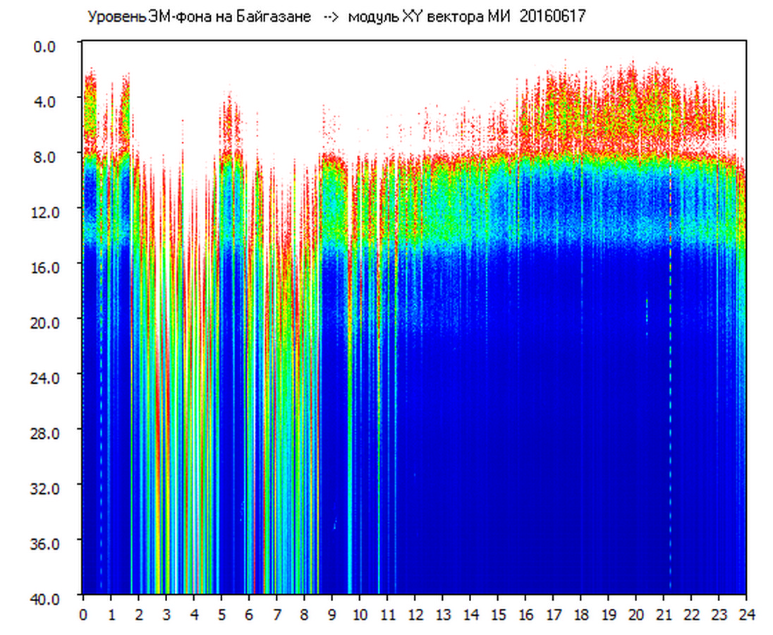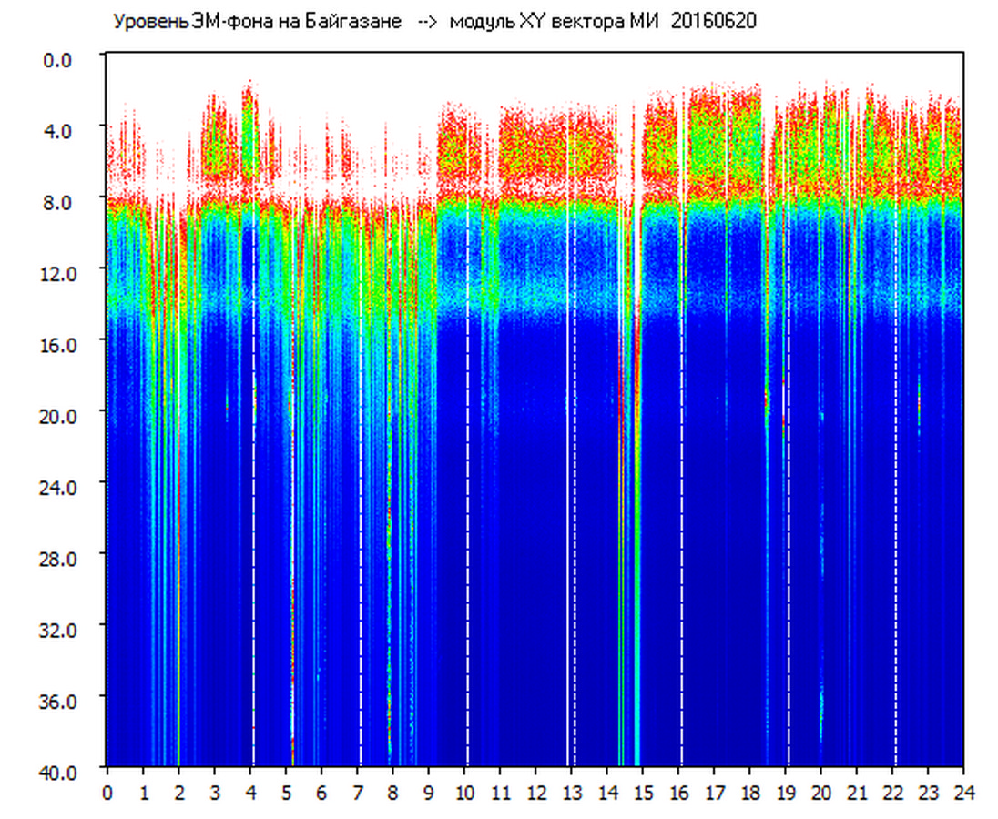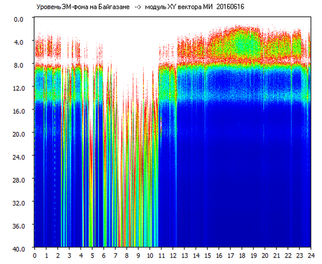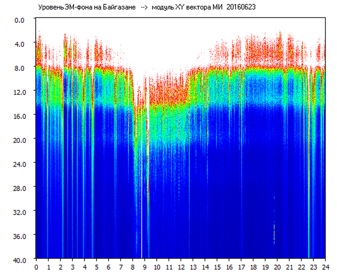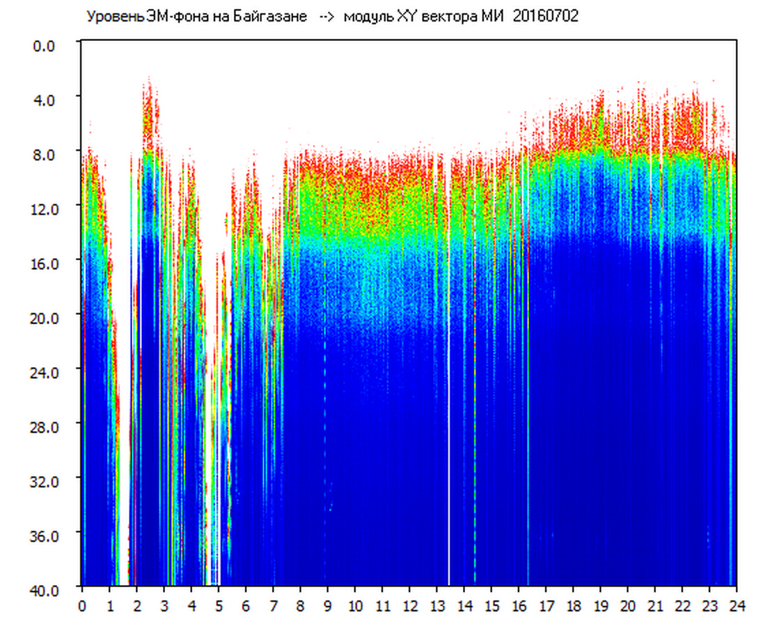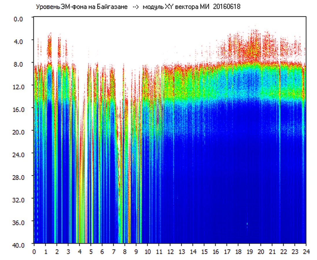 Динамические спектры электромагнитного фона в полосе частот 0 – 40 Гц (Шумановские резонансы)