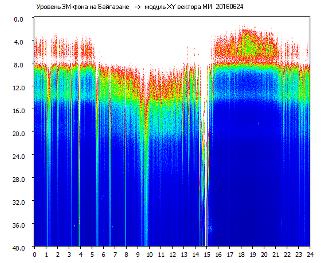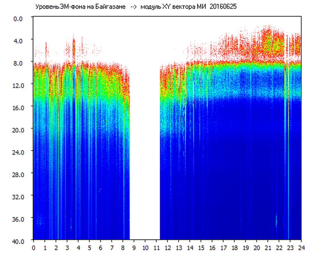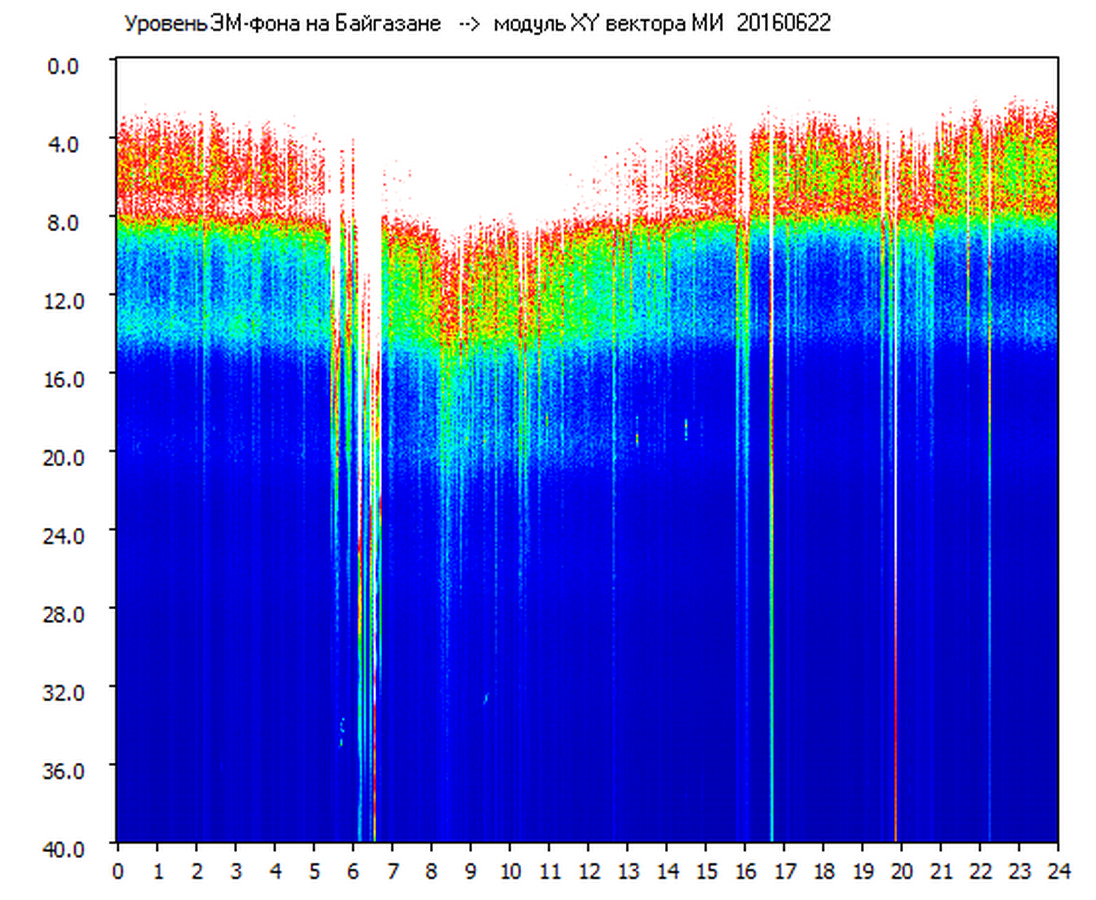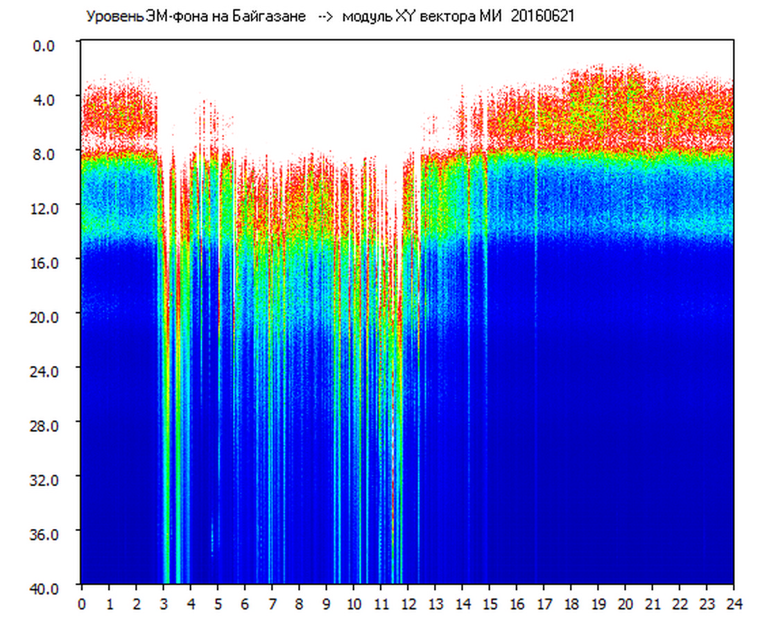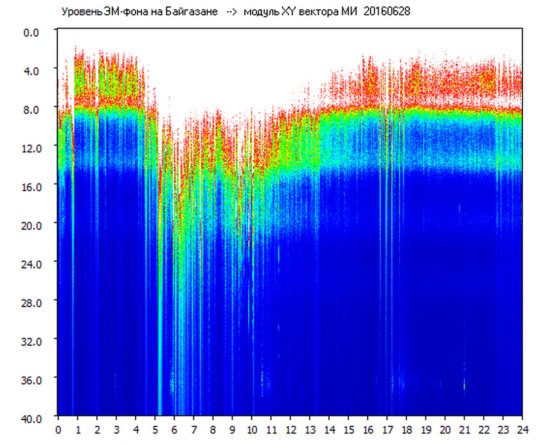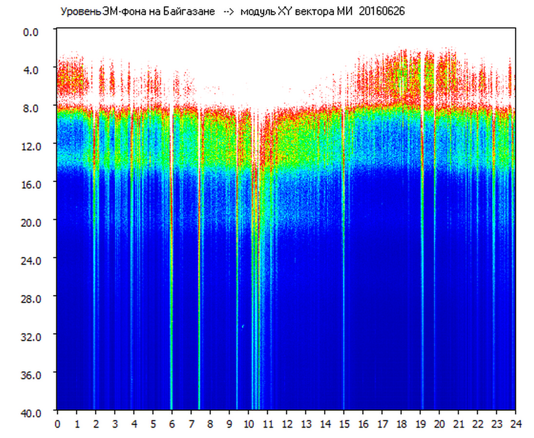 Динамические спектры электромагнитного фона в полосе частот 0 – 40 Гц (Шумановские резонансы)