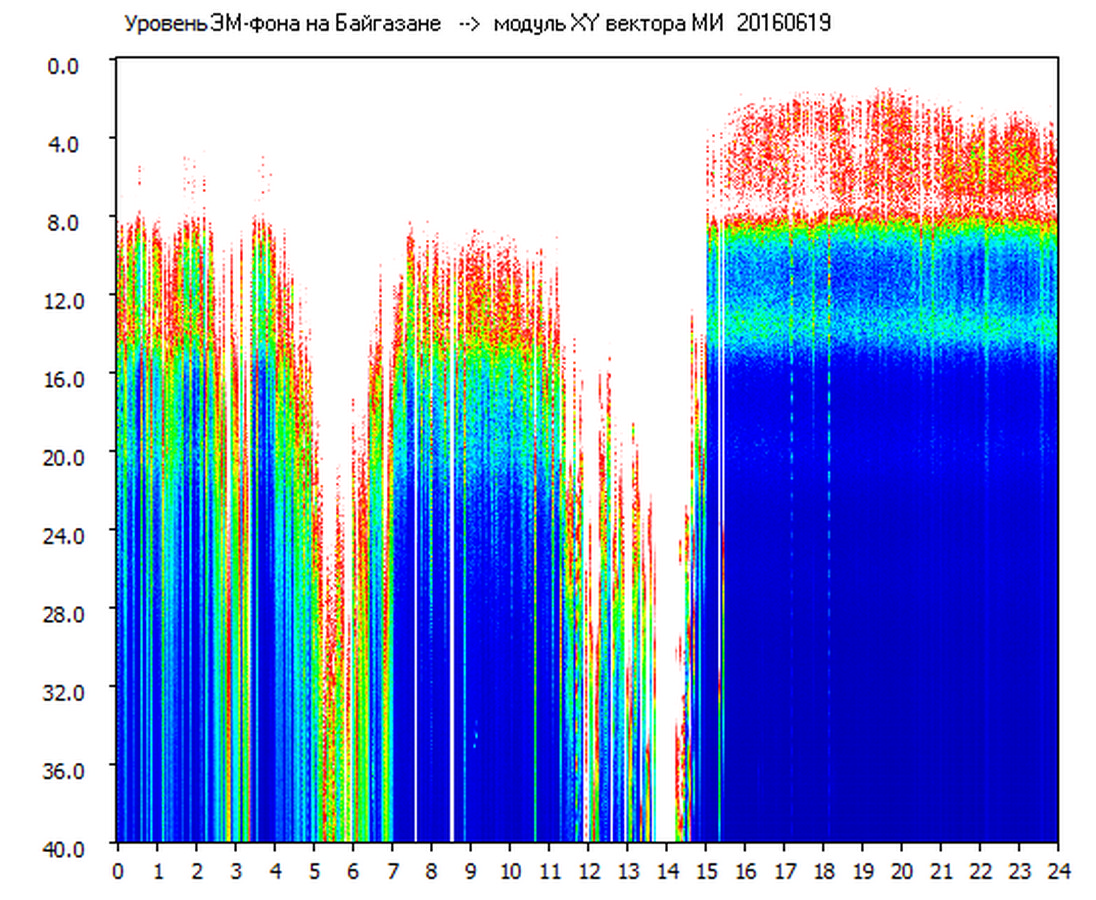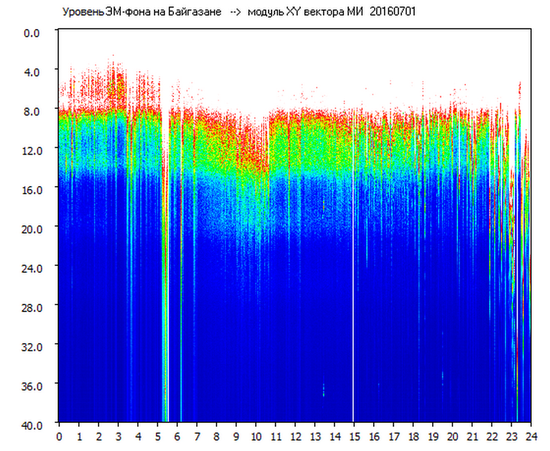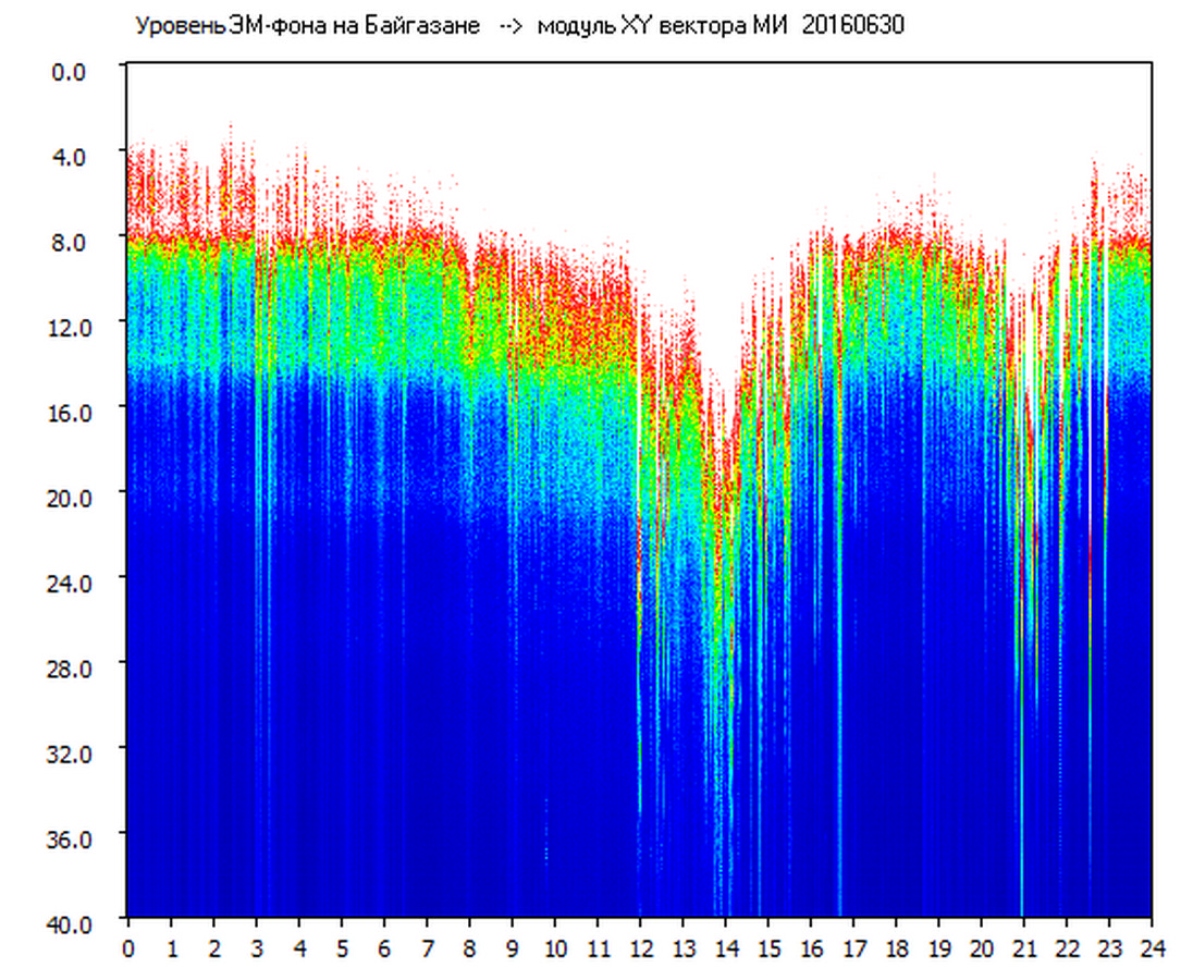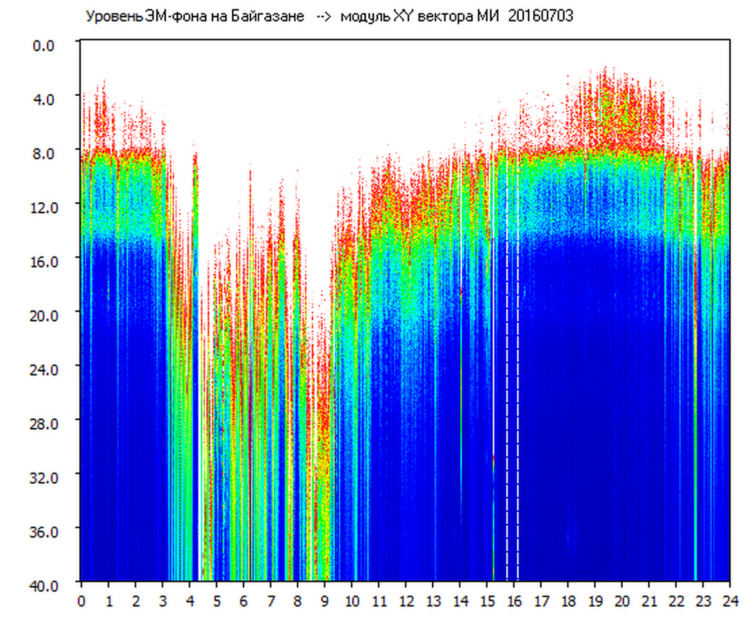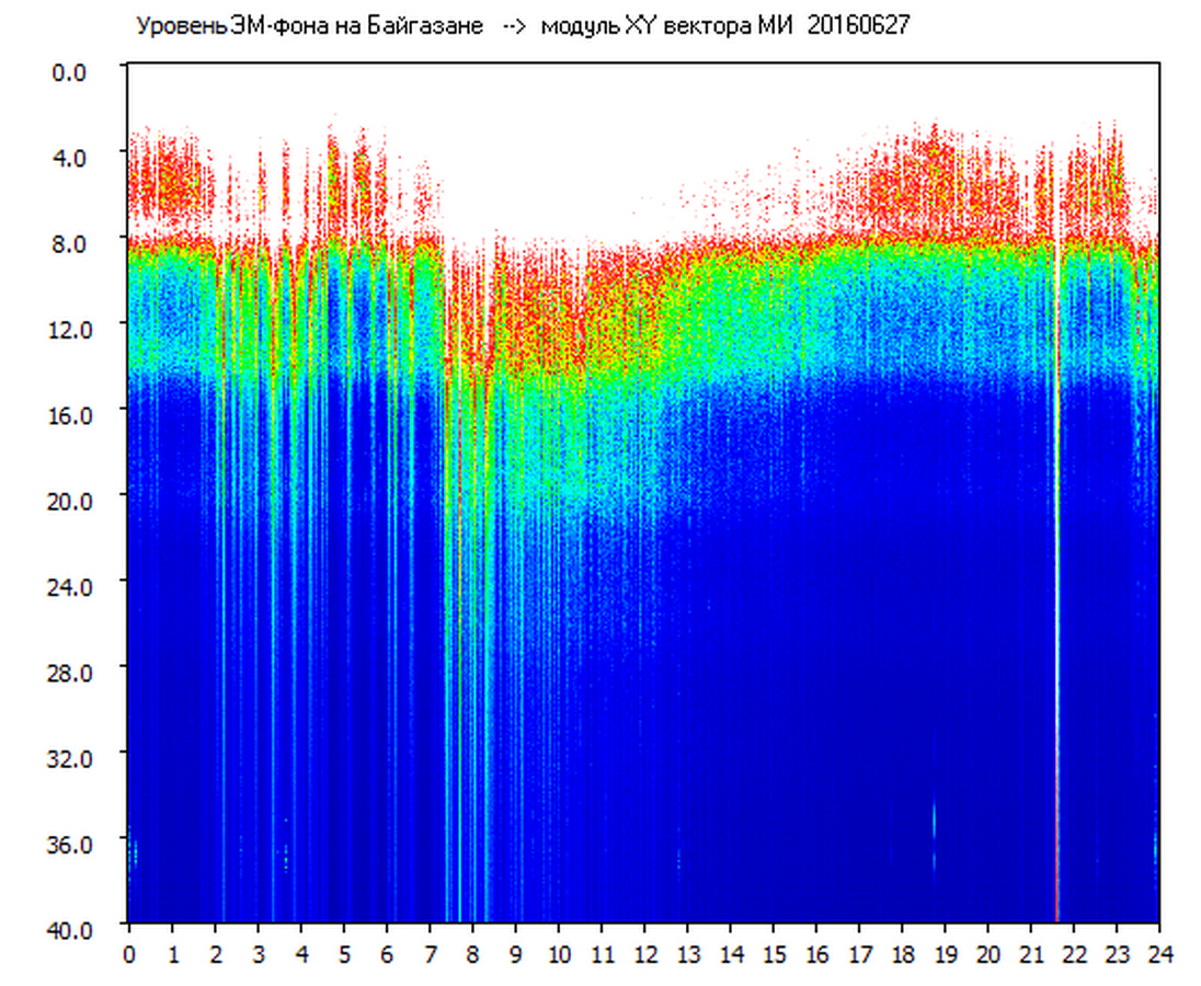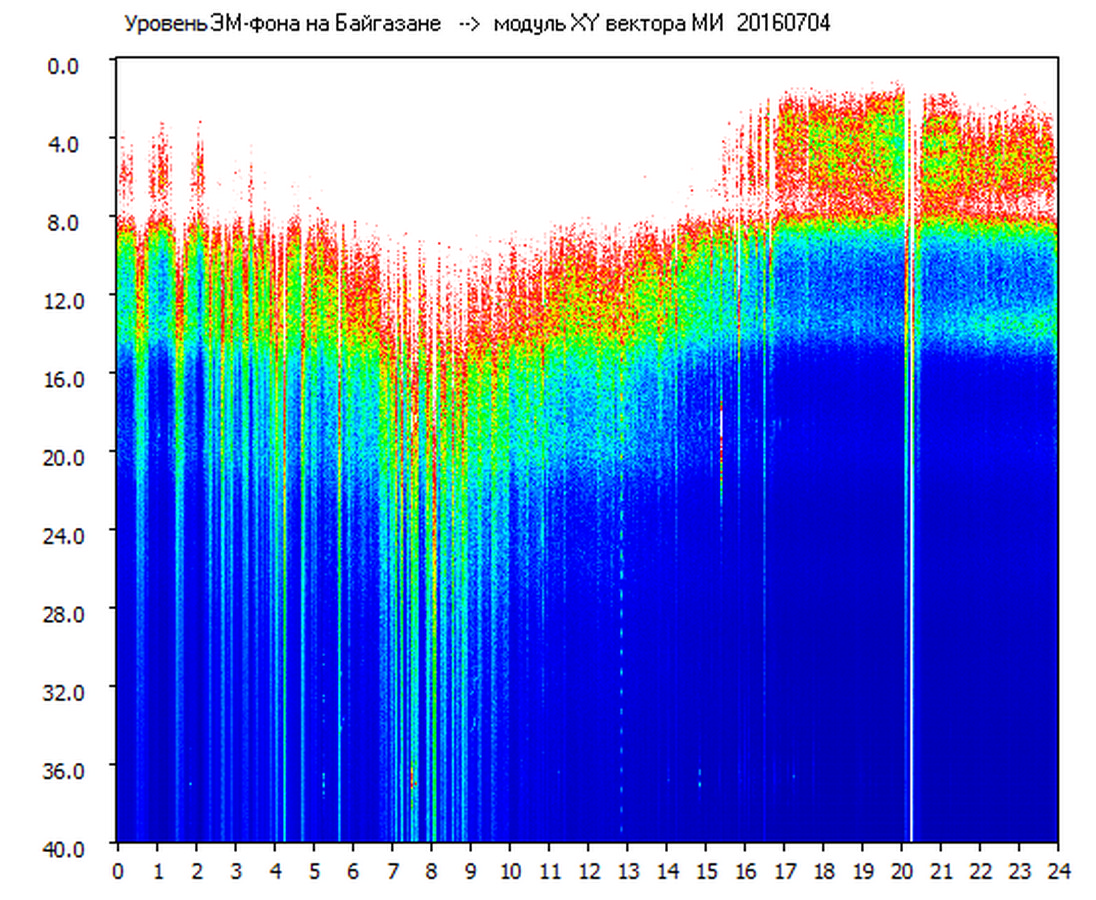 Динамические спектры электромагнитного фона в полосе частот 0 – 40 Гц (Шумановские резонансы)