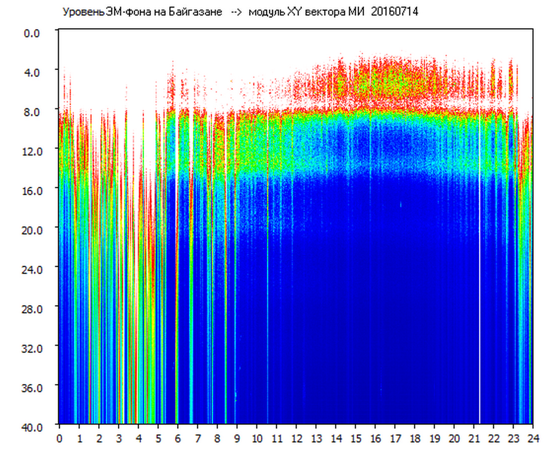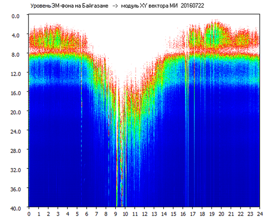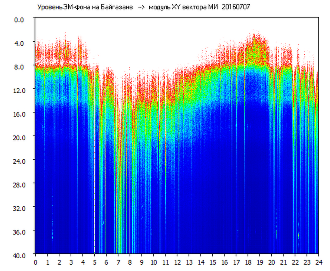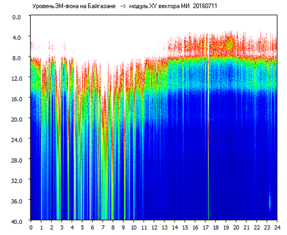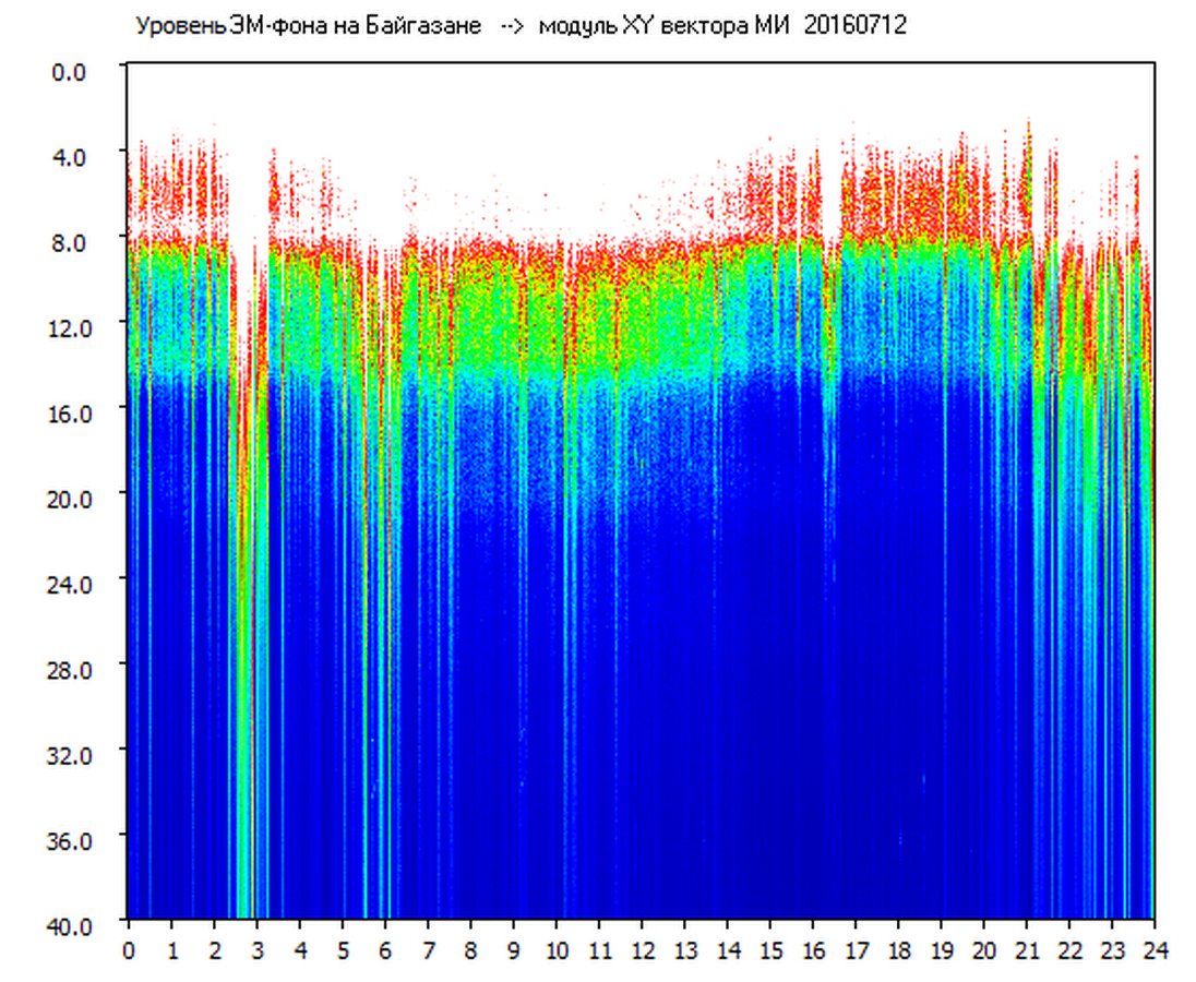 Динамические спектры электромагнитного фона в полосе частот 0 – 40 Гц (Шумановские резонансы)
