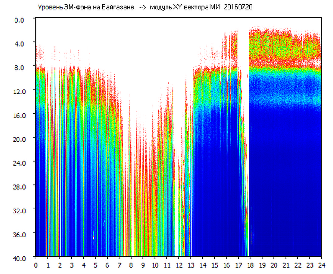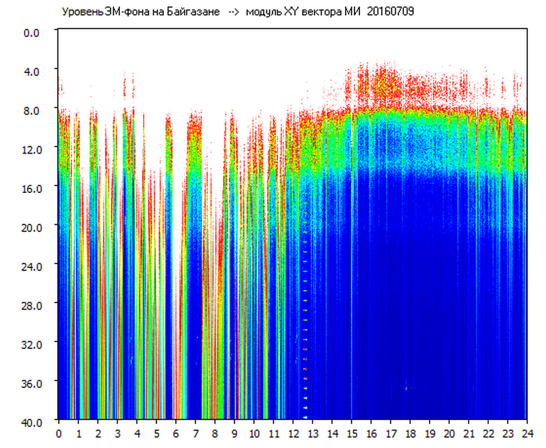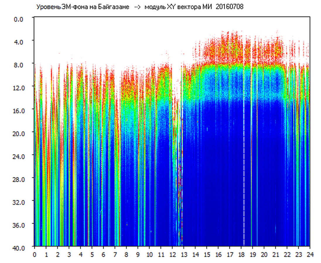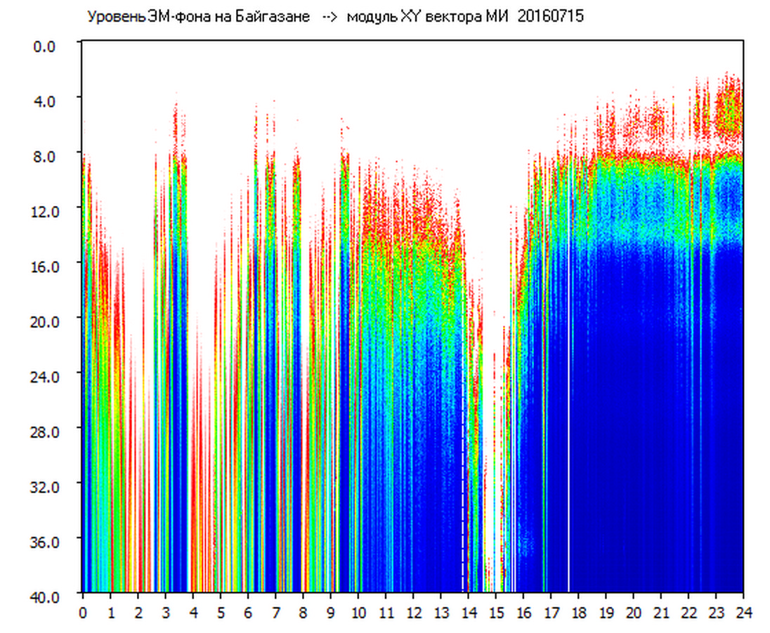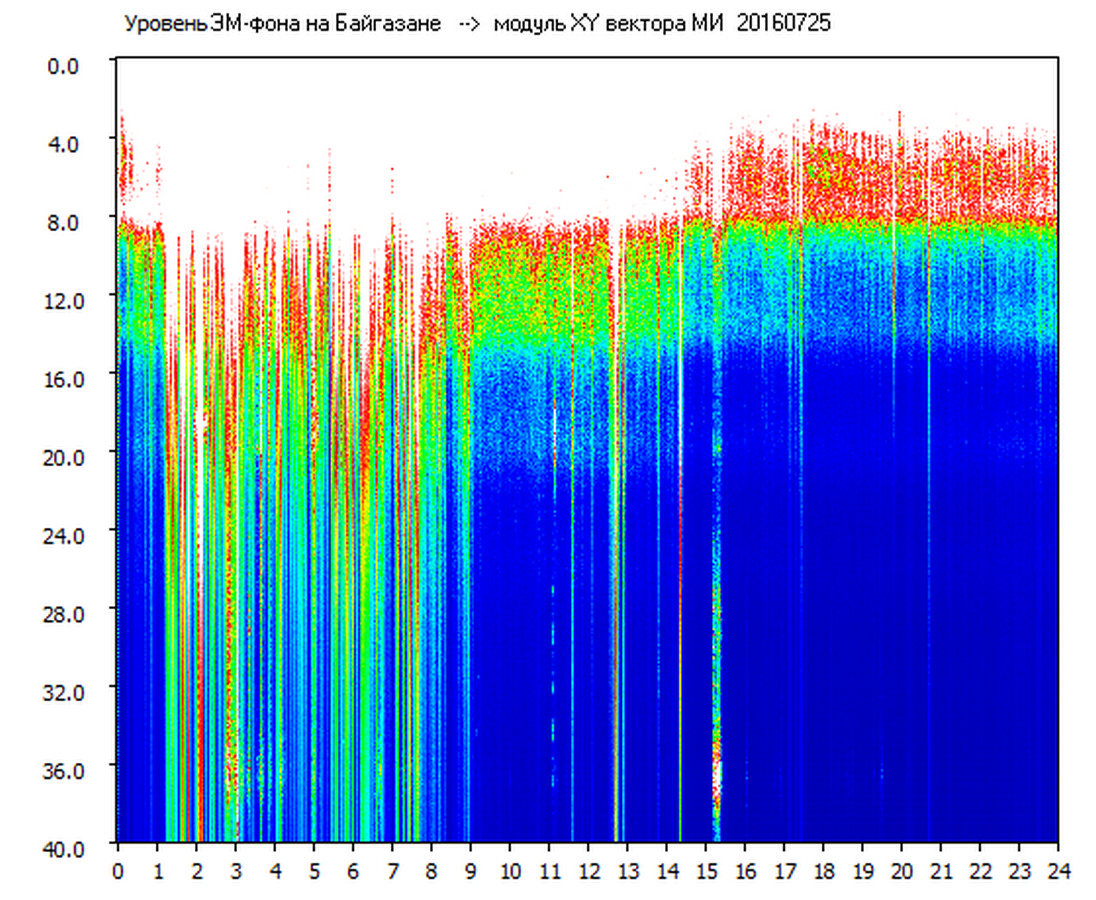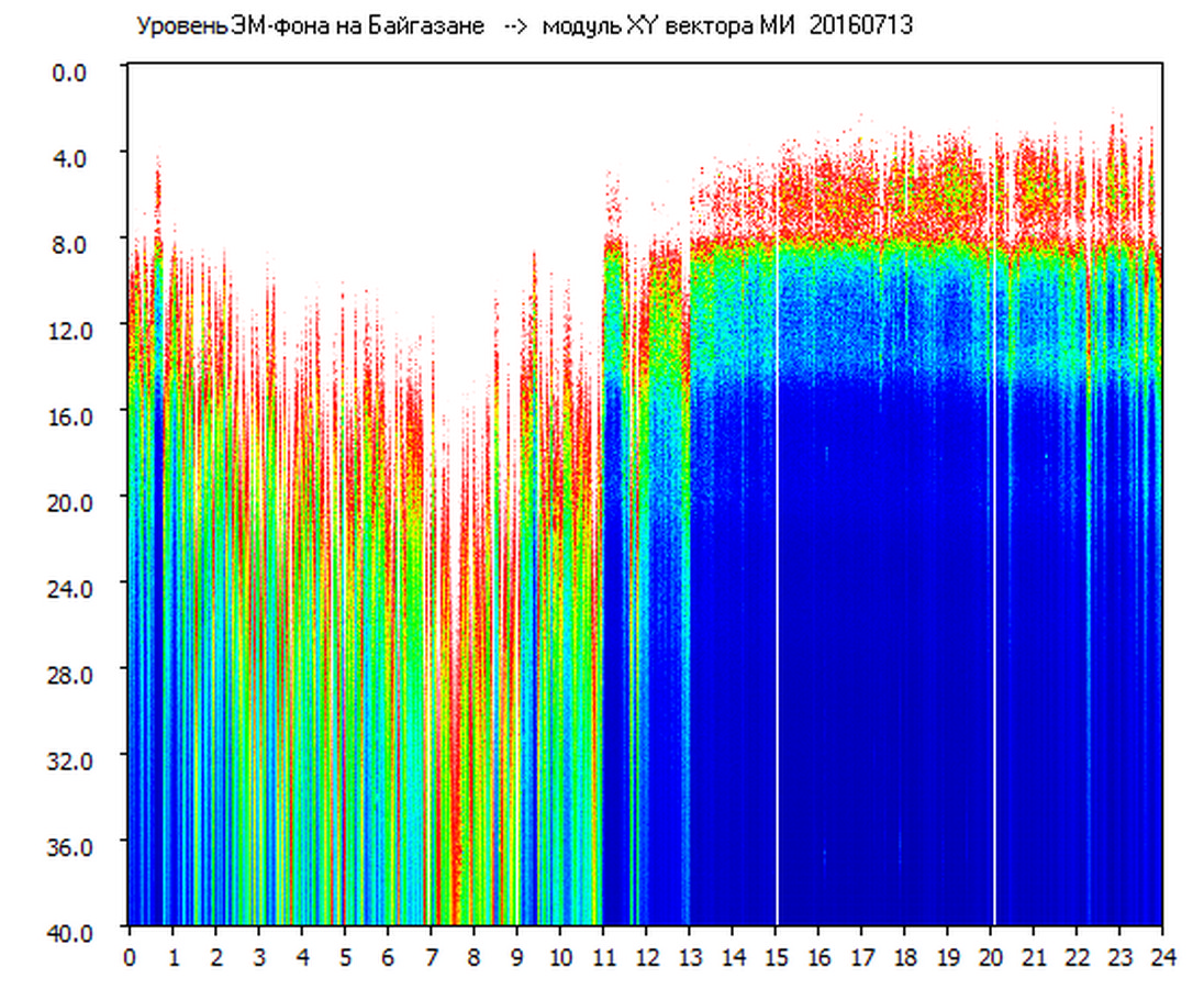Динамические спектры электромагнитного фона в полосе частот 0 – 40 Гц (Шумановские резонансы)