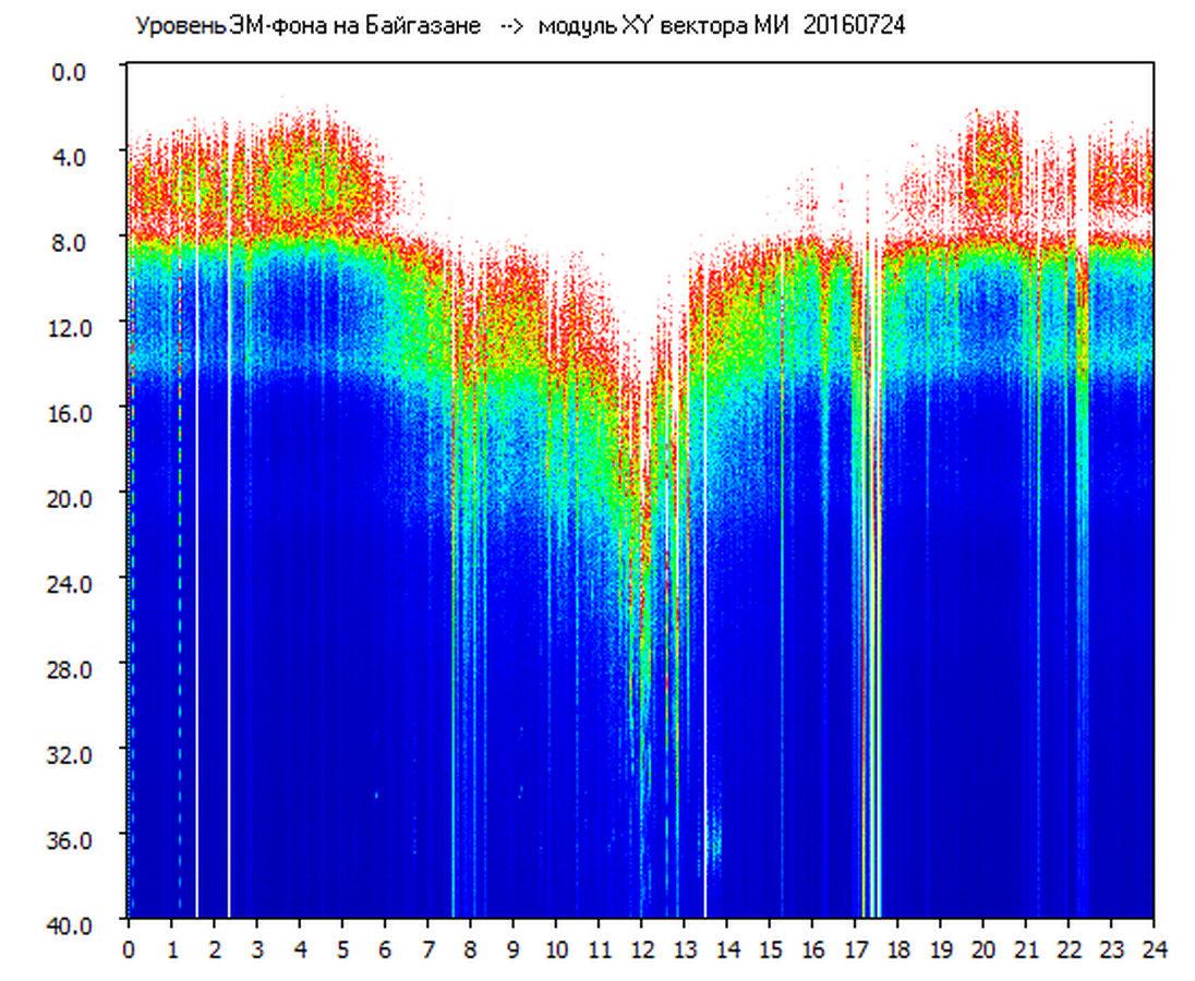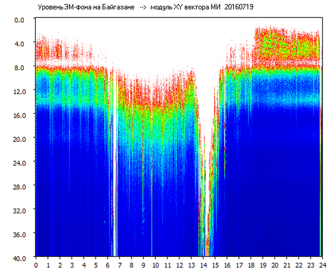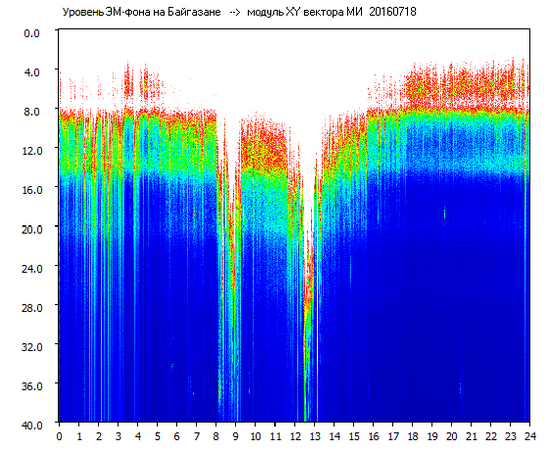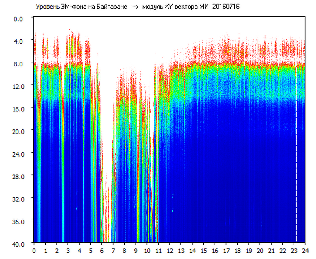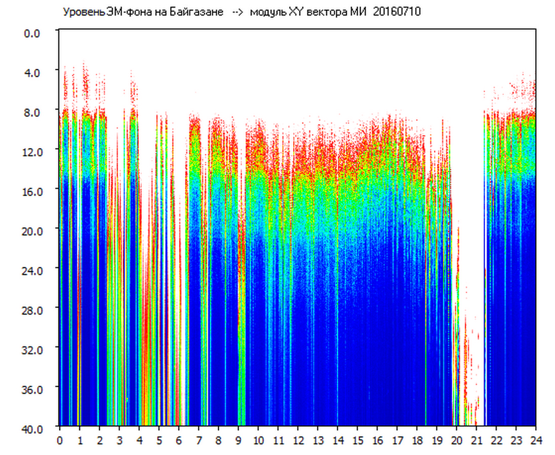 Динамические спектры электромагнитного фона в полосе частот 0 – 40 Гц (Шумановские резонансы)