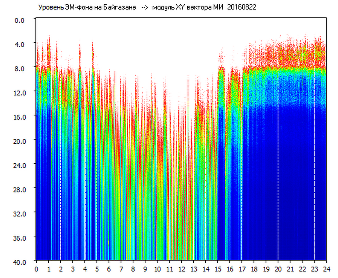 Динамические спектры электромагнитного фона в полосе частот 0 – 40 Гц (Шумановские резонансы)