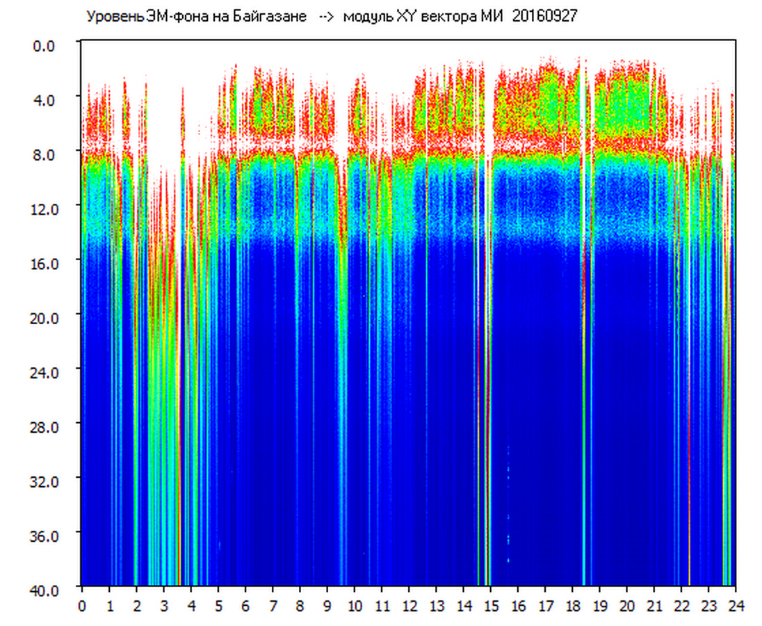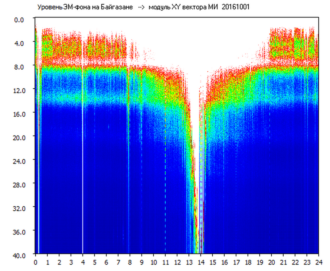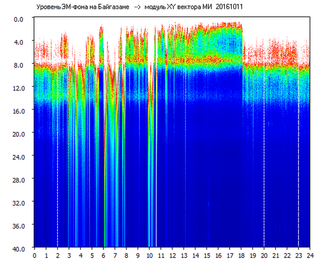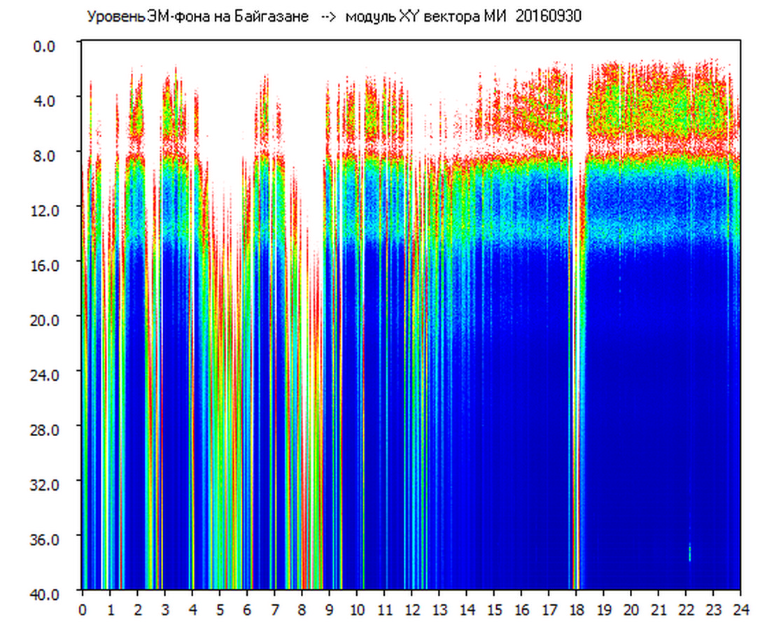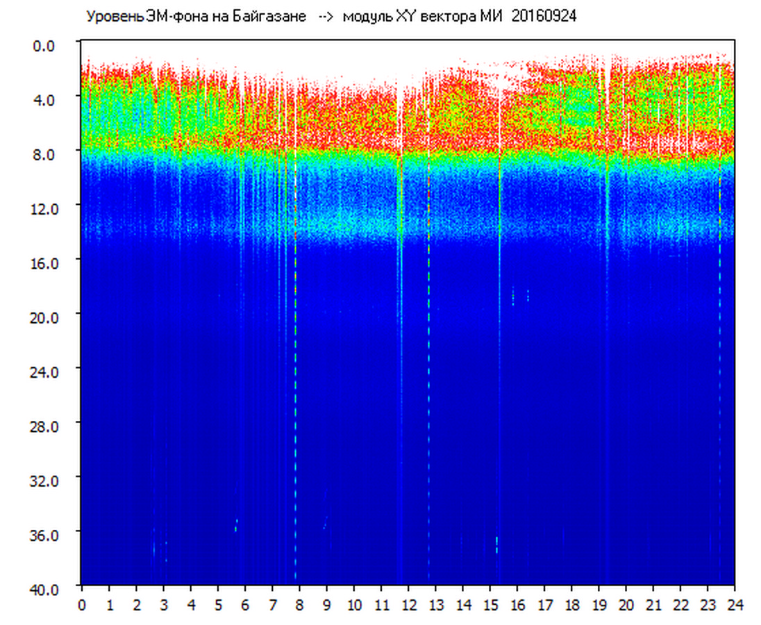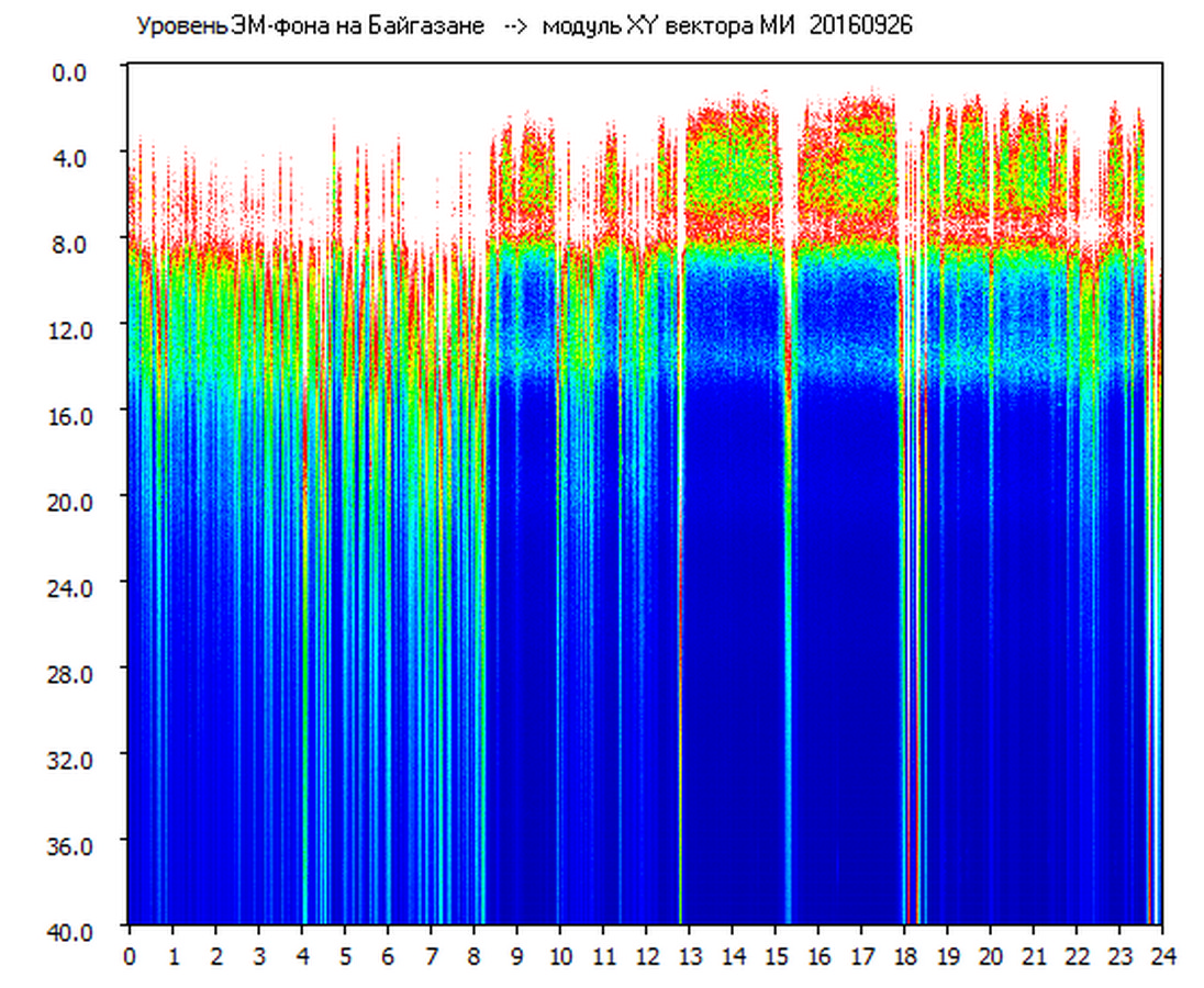 Динамические спектры электромагнитного фона в полосе частот 0 – 40 Гц (Шумановские резонансы)