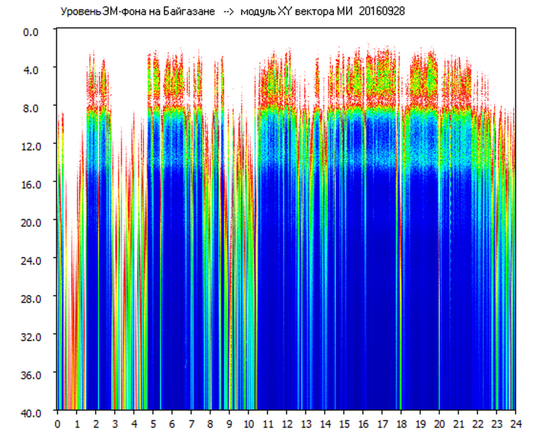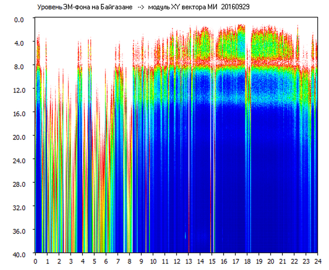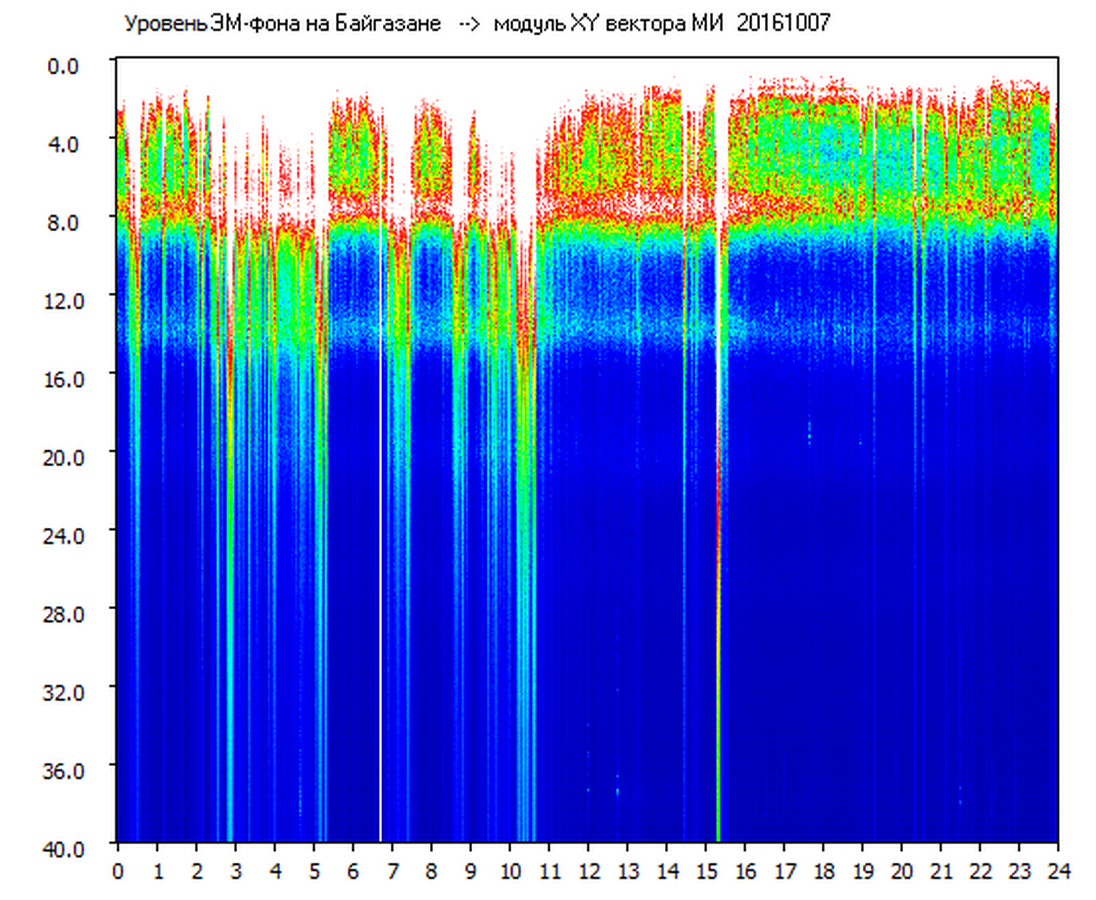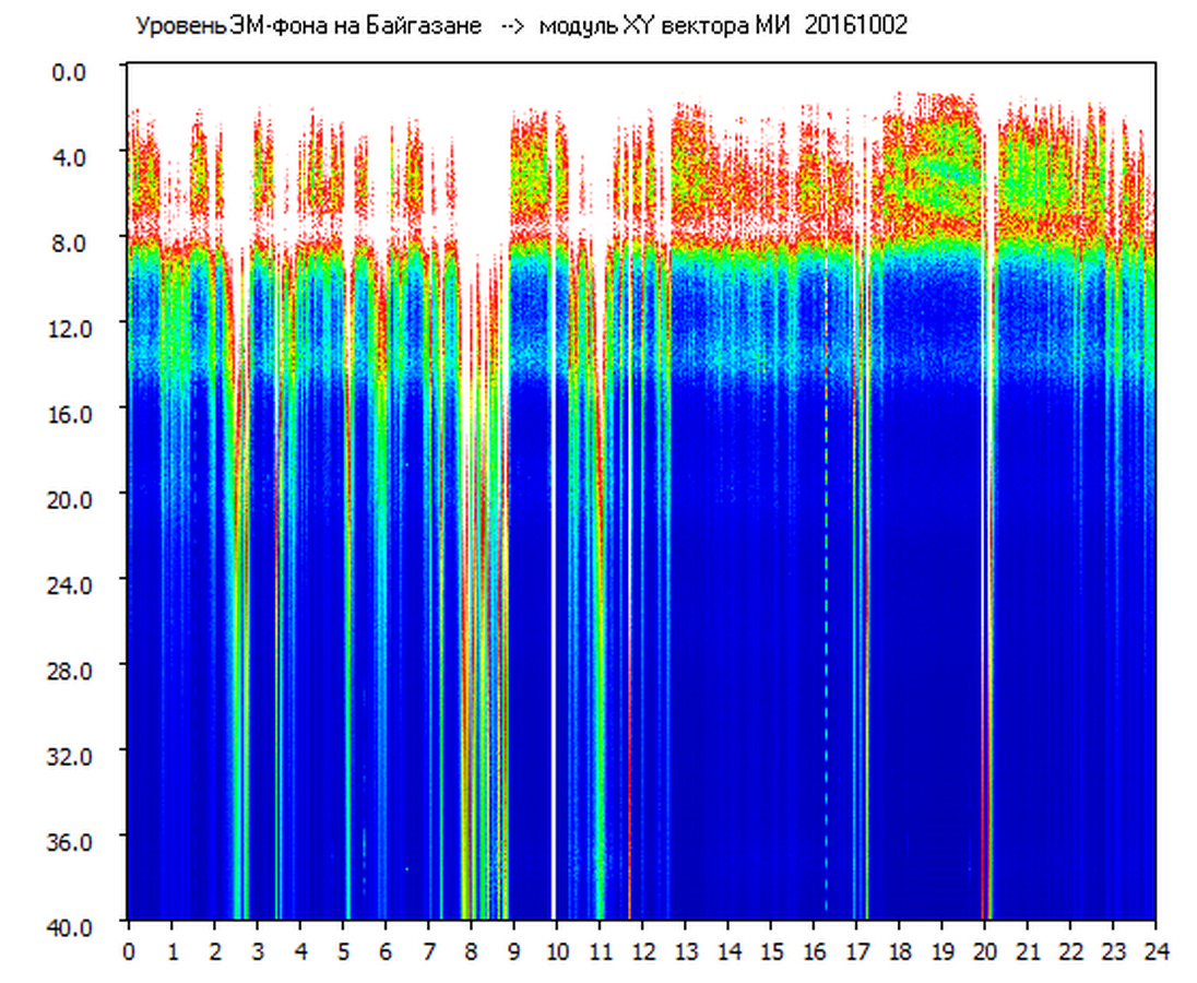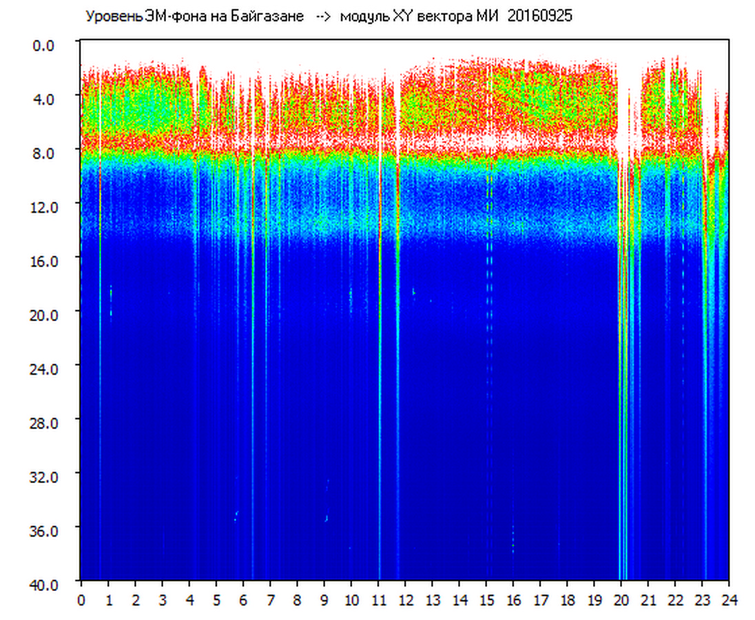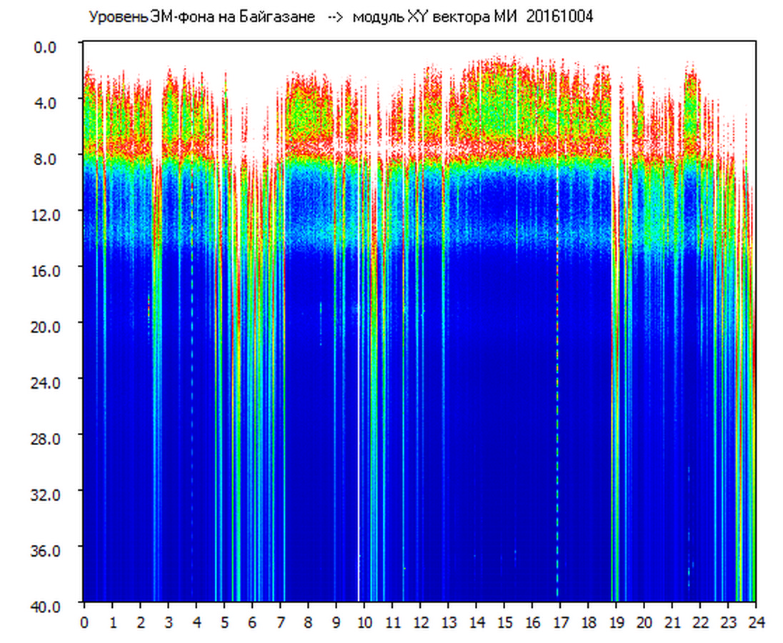 Динамические спектры электромагнитного фона в полосе частот 0 – 40 Гц (Шумановские резонансы)