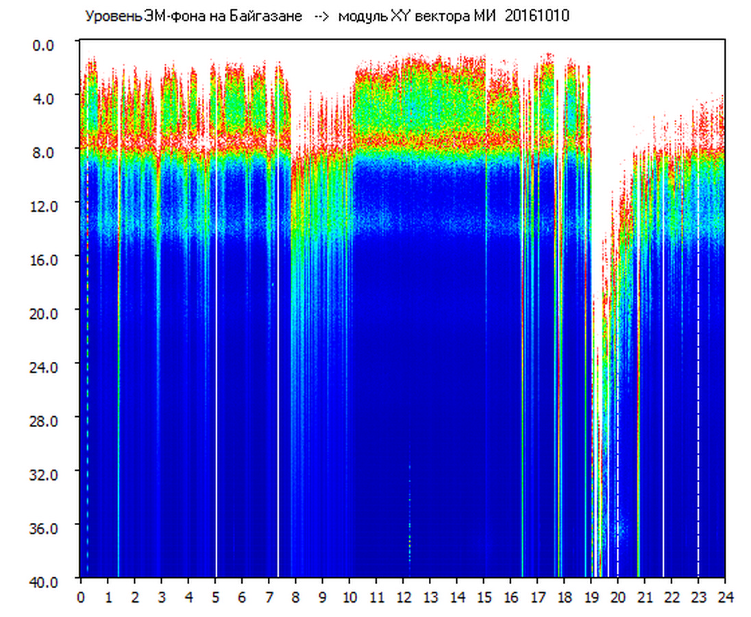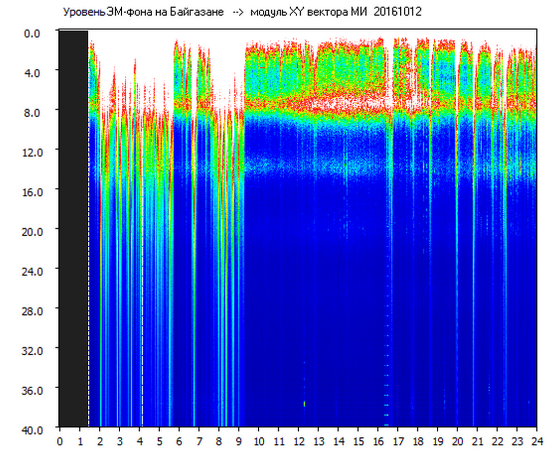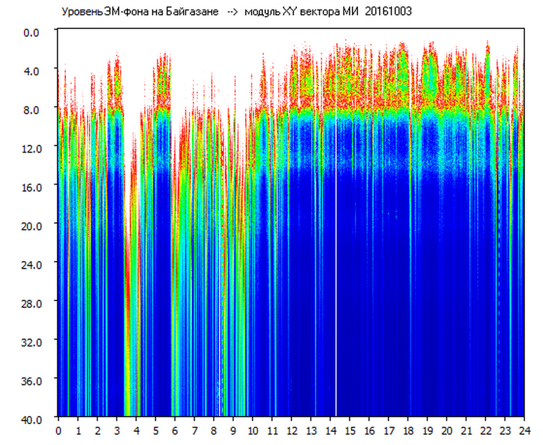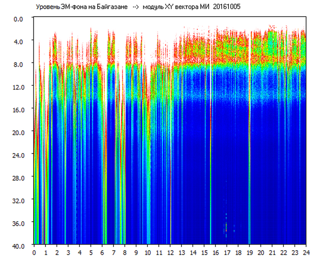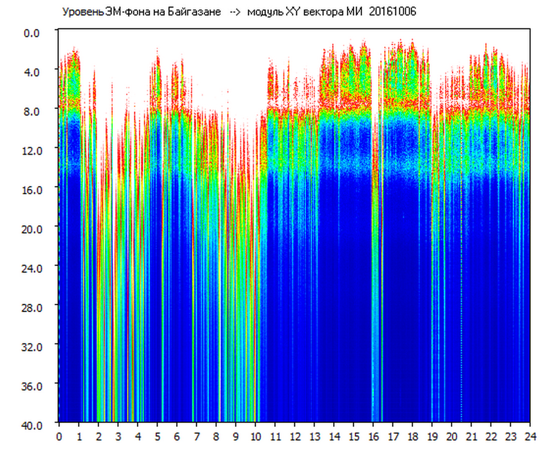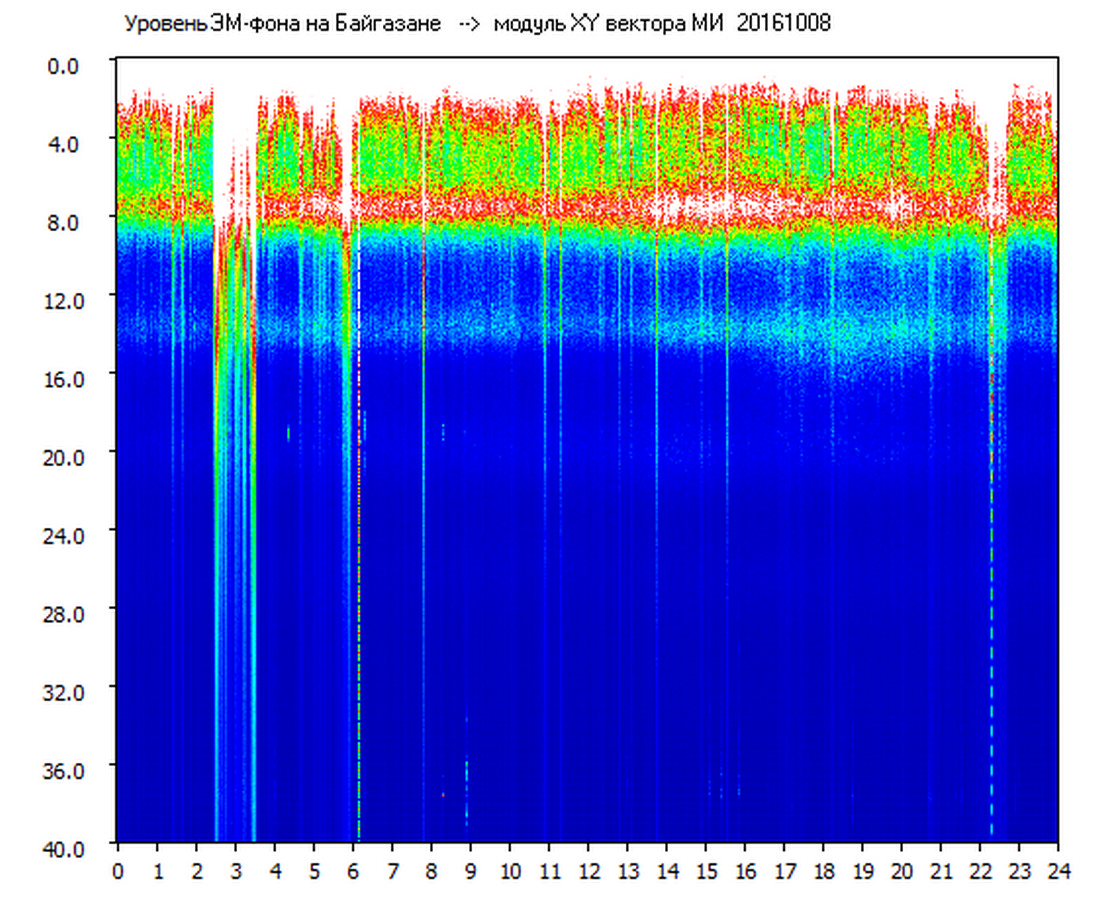 Динамические спектры электромагнитного фона в полосе частот 0 – 40 Гц (Шумановские резонансы)