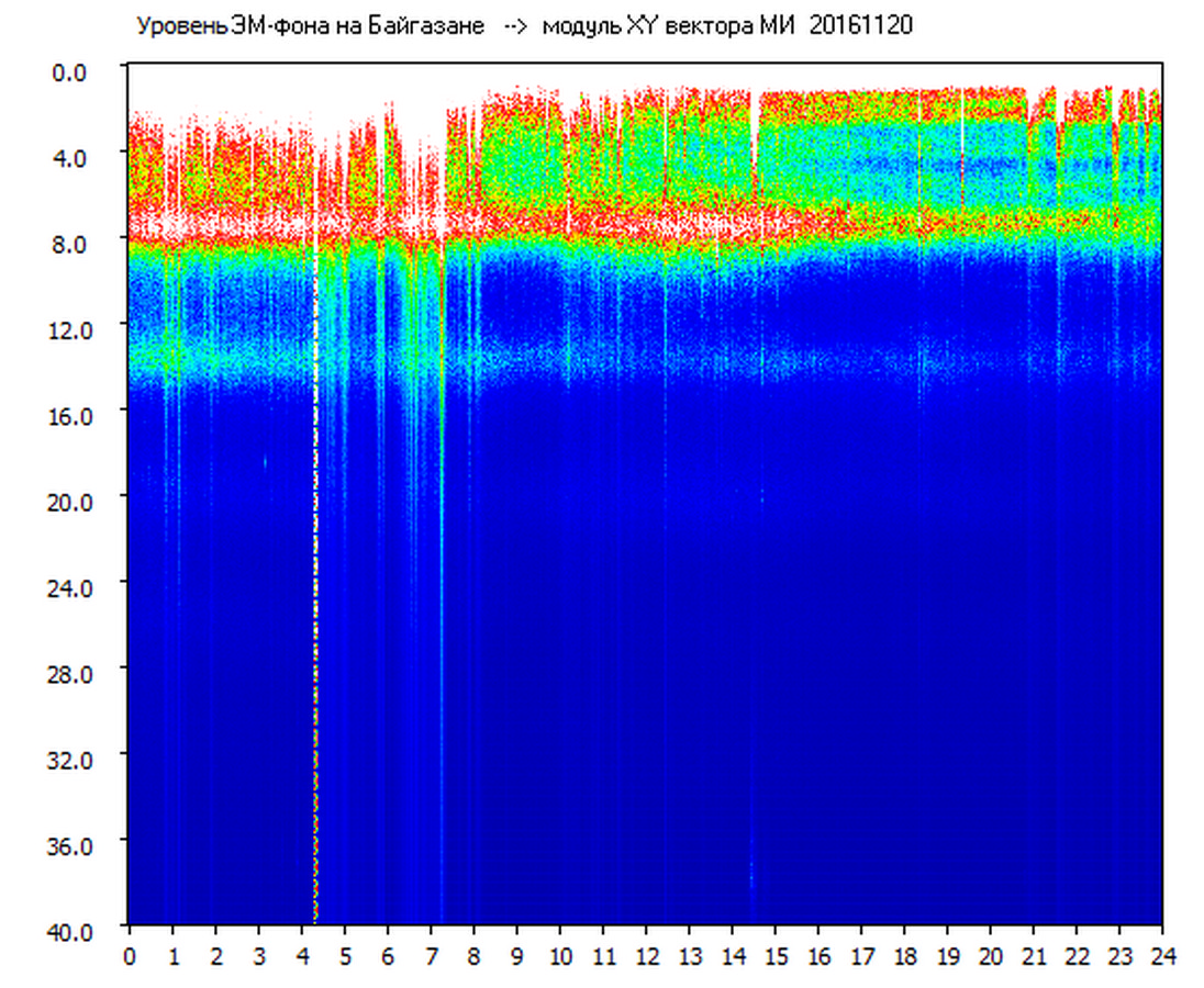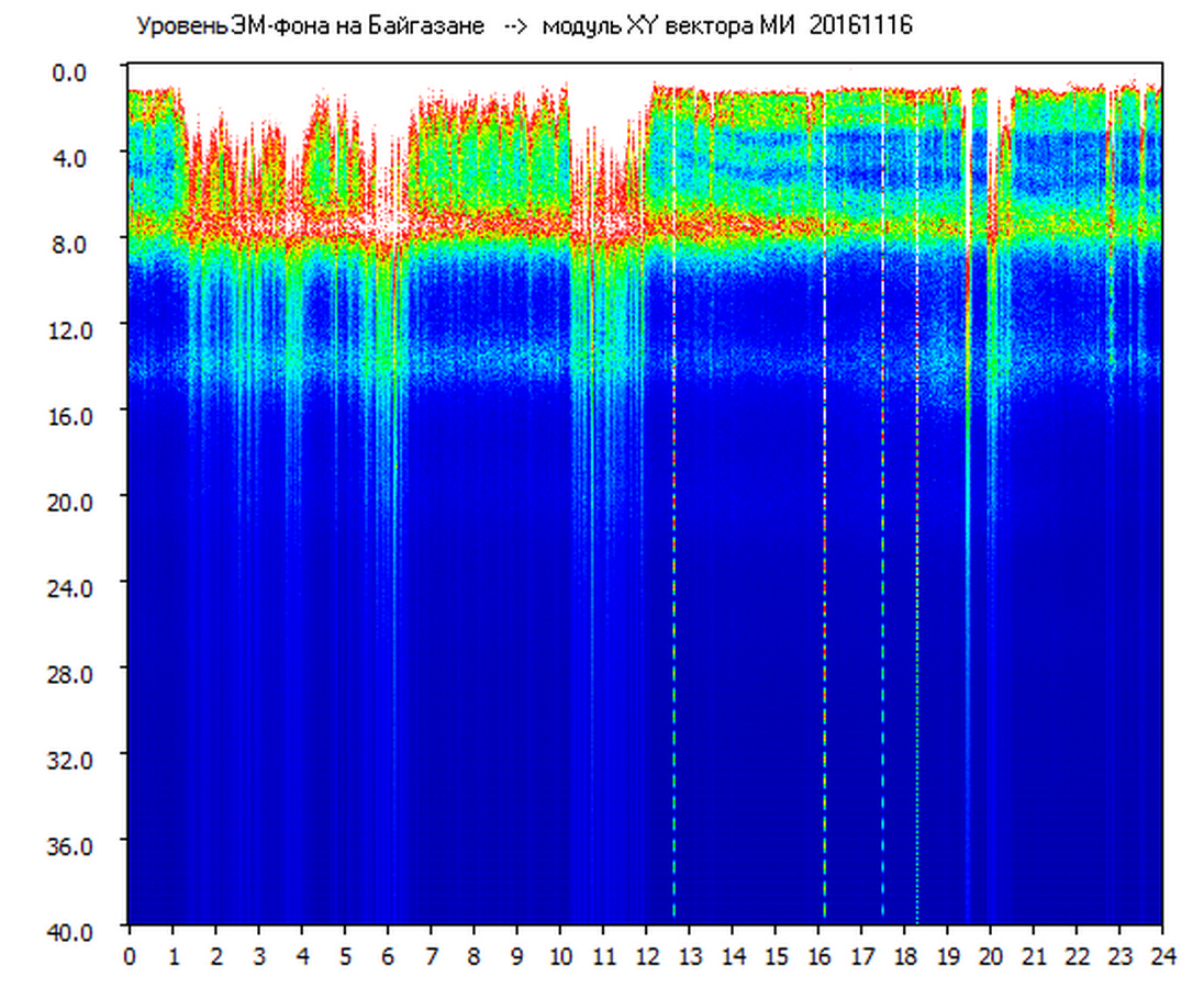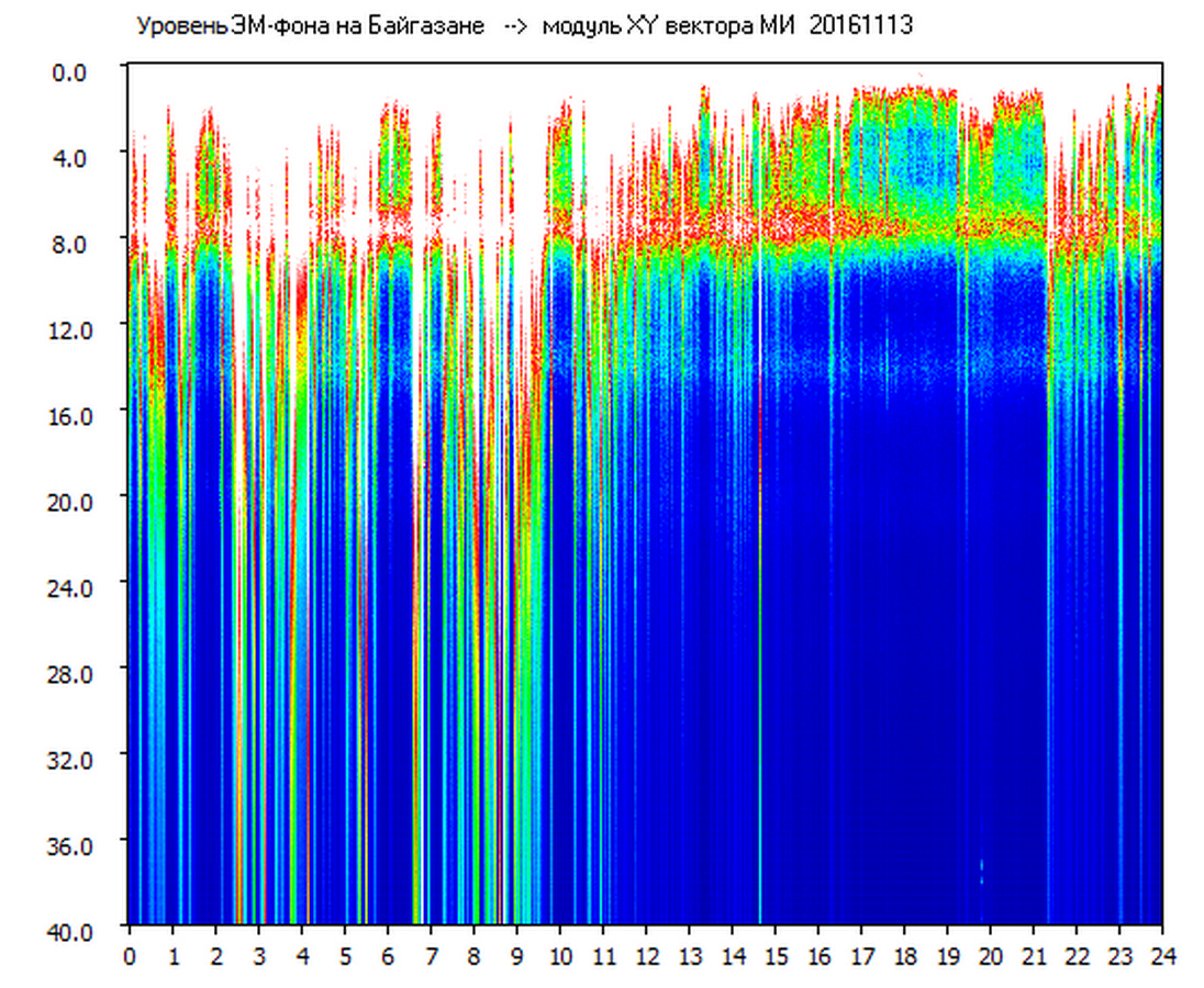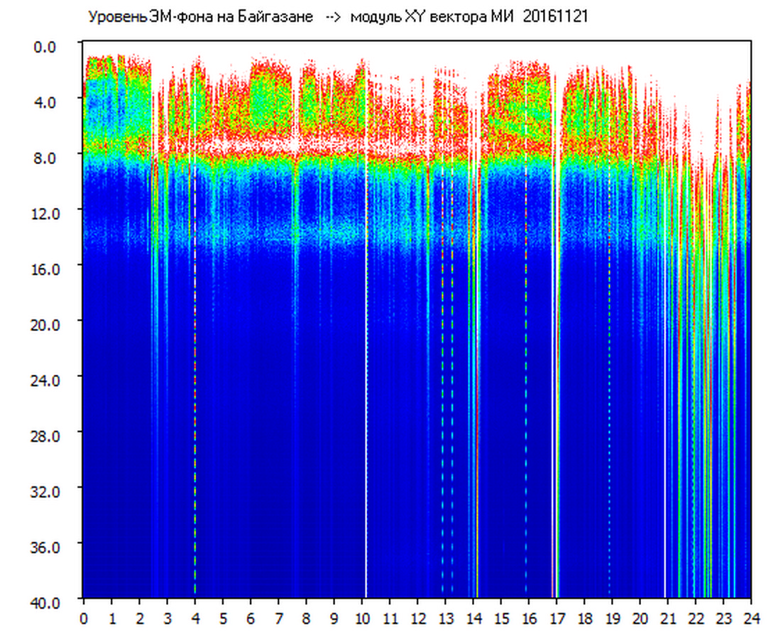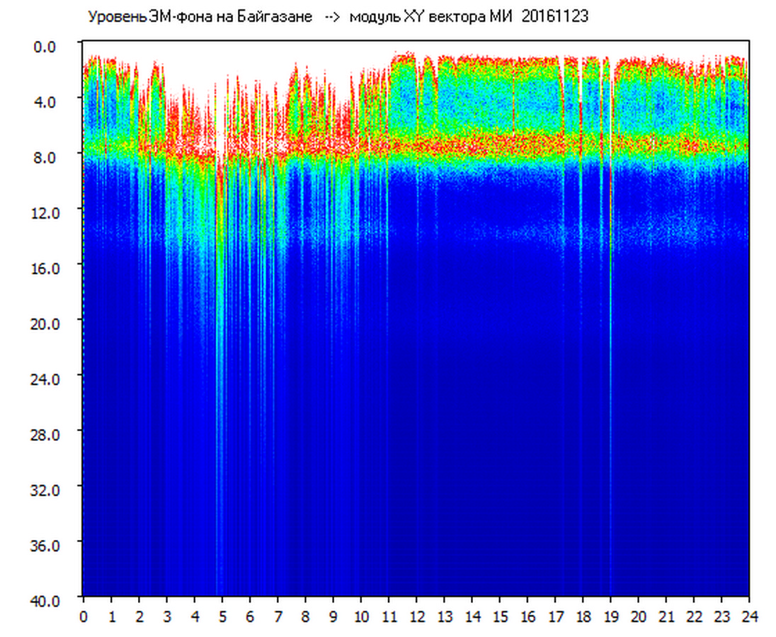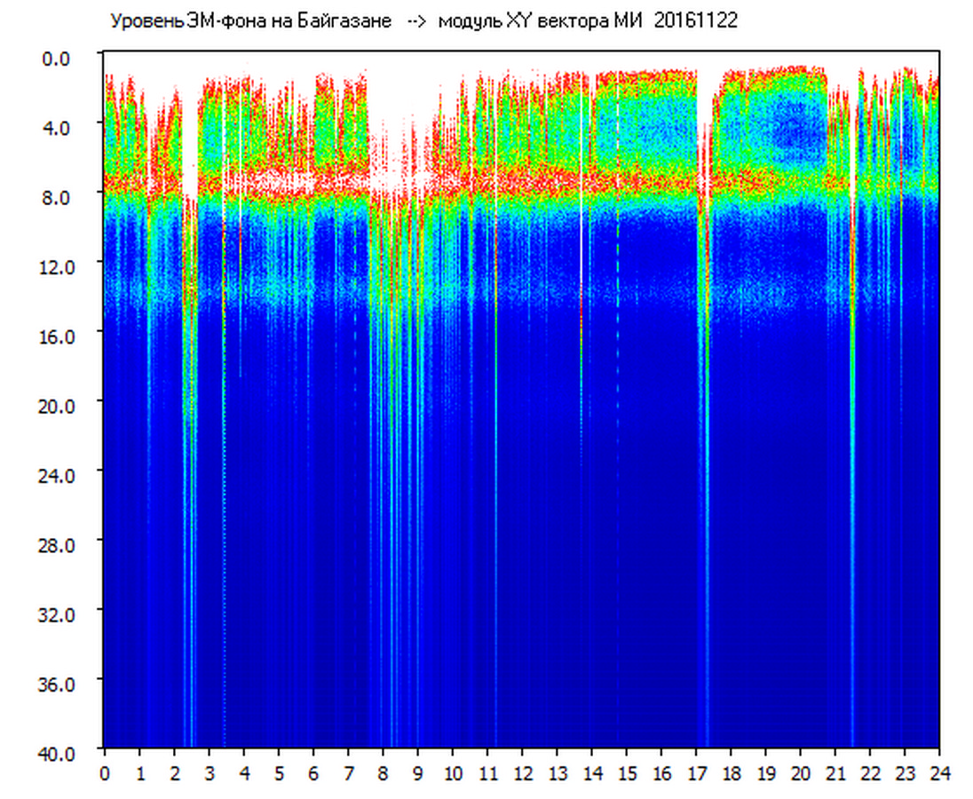 Динамические спектры электромагнитного фона в полосе частот 0 – 40 Гц (Шумановские резонансы)