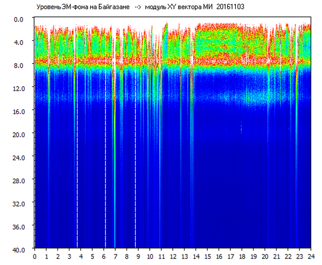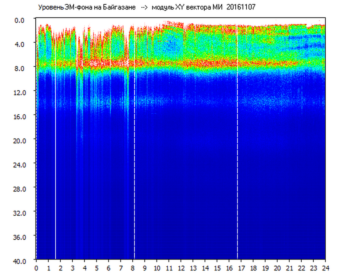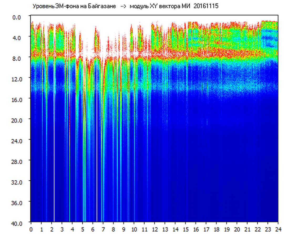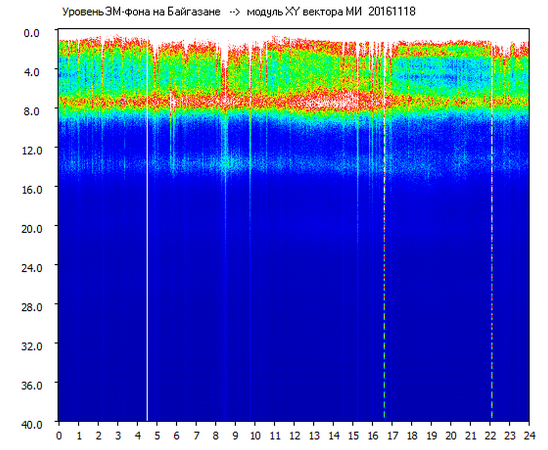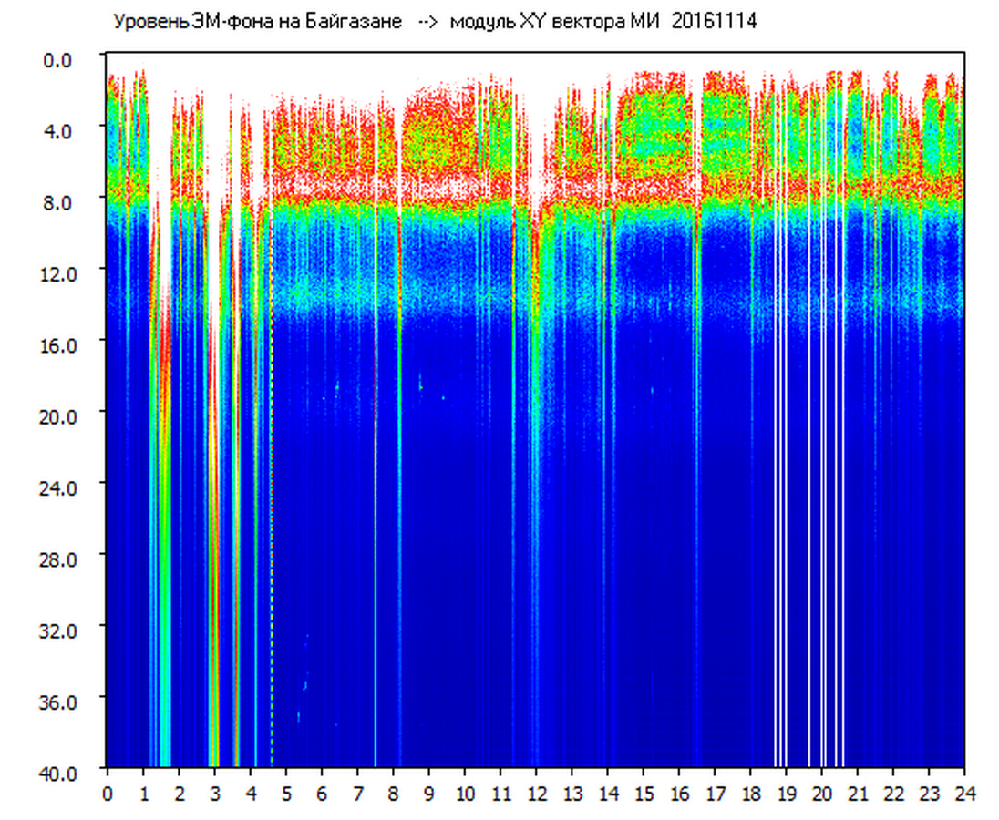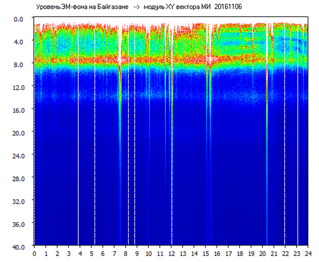 Динамические спектры электромагнитного фона в полосе частот 0 – 40 Гц (Шумановские резонансы)