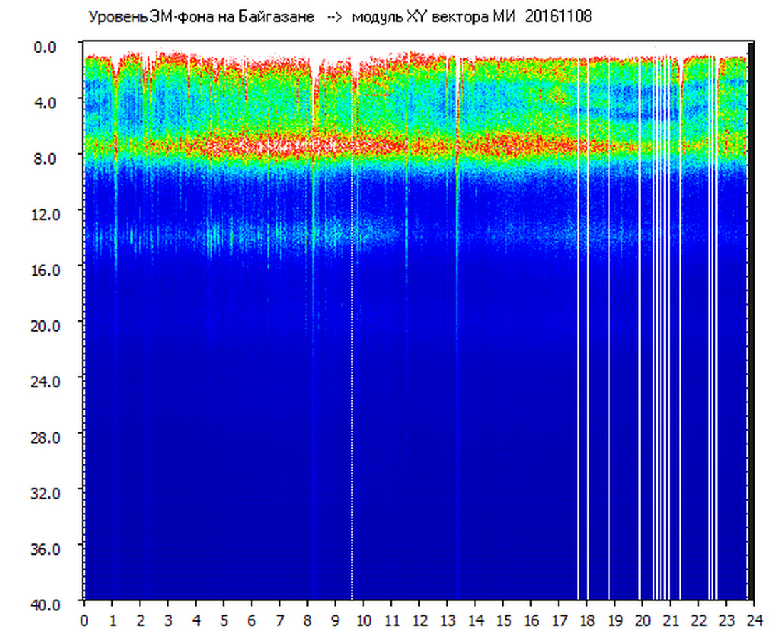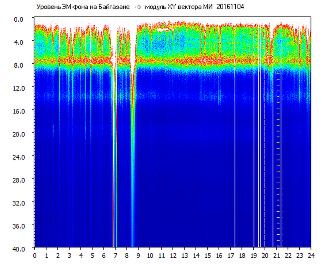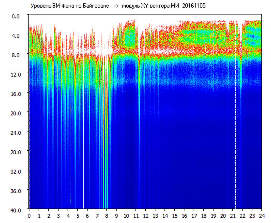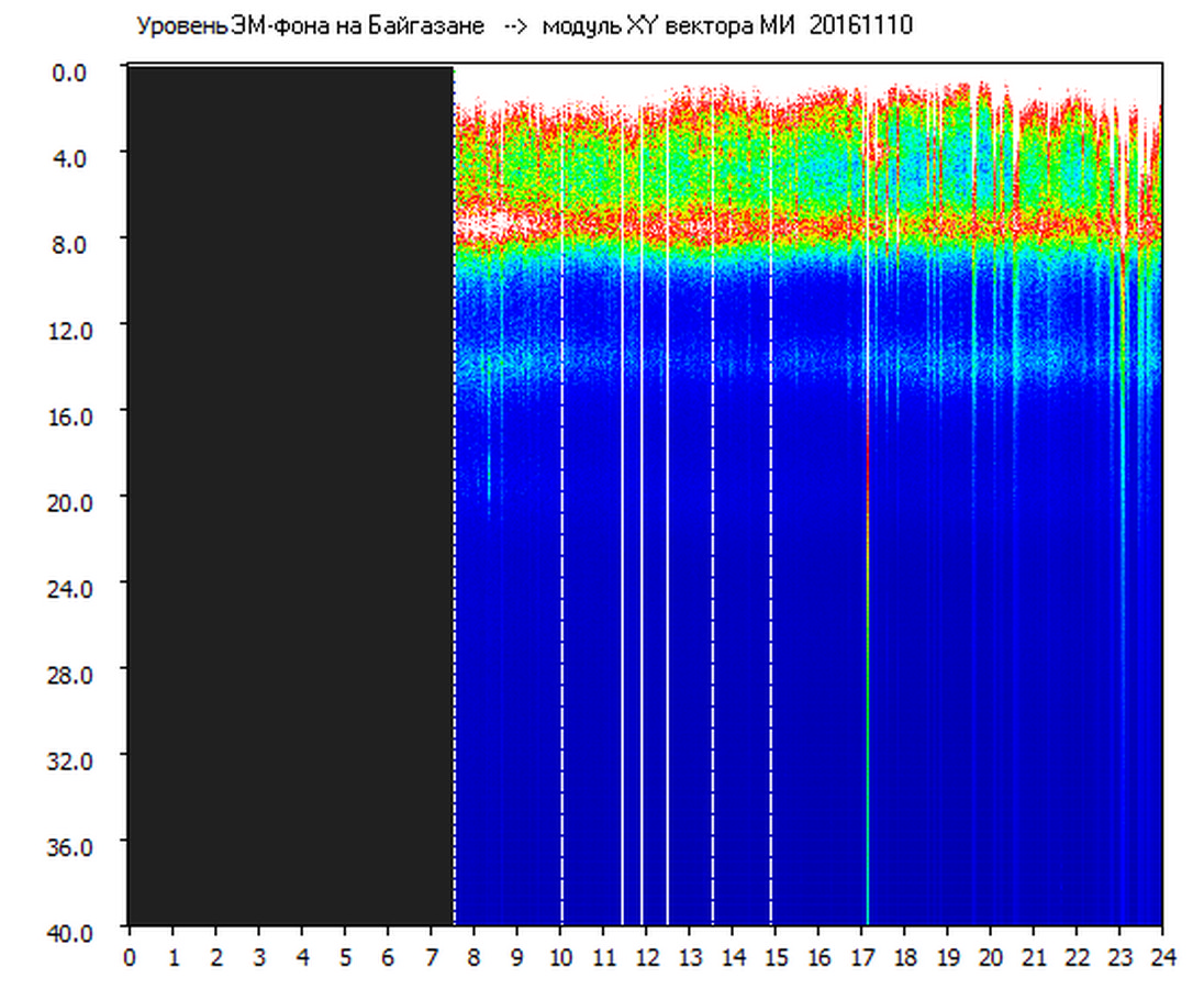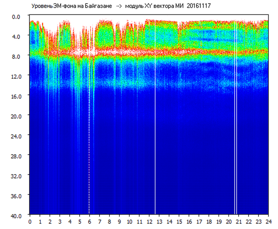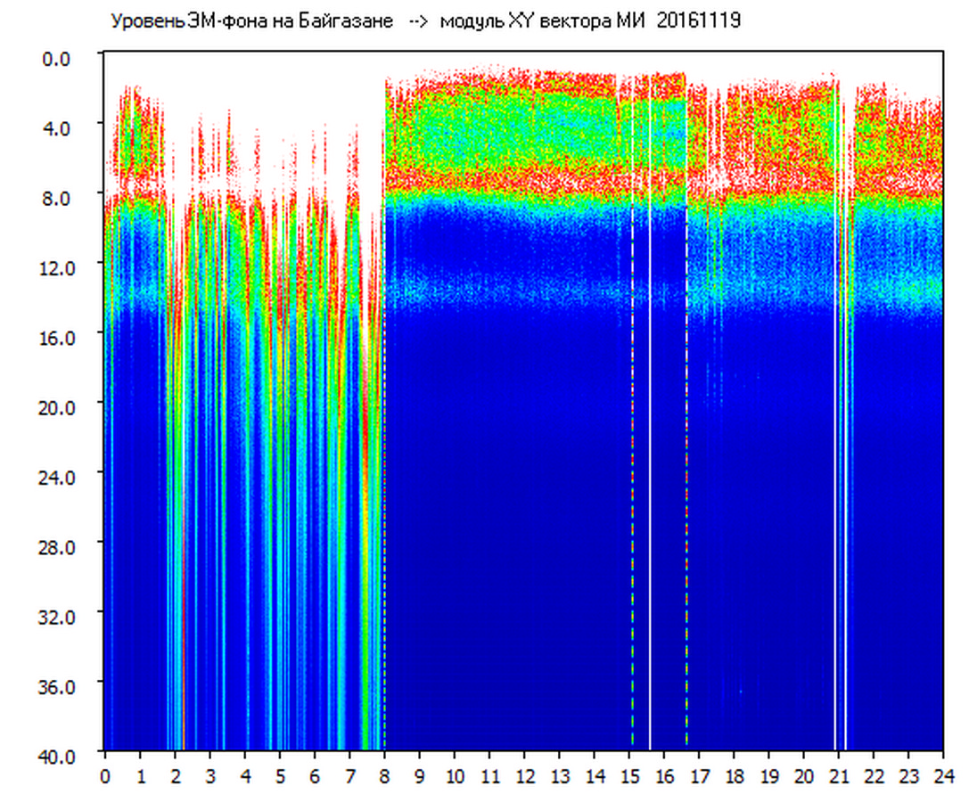 Динамические спектры электромагнитного фона в полосе частот 0 – 40 Гц (Шумановские резонансы)